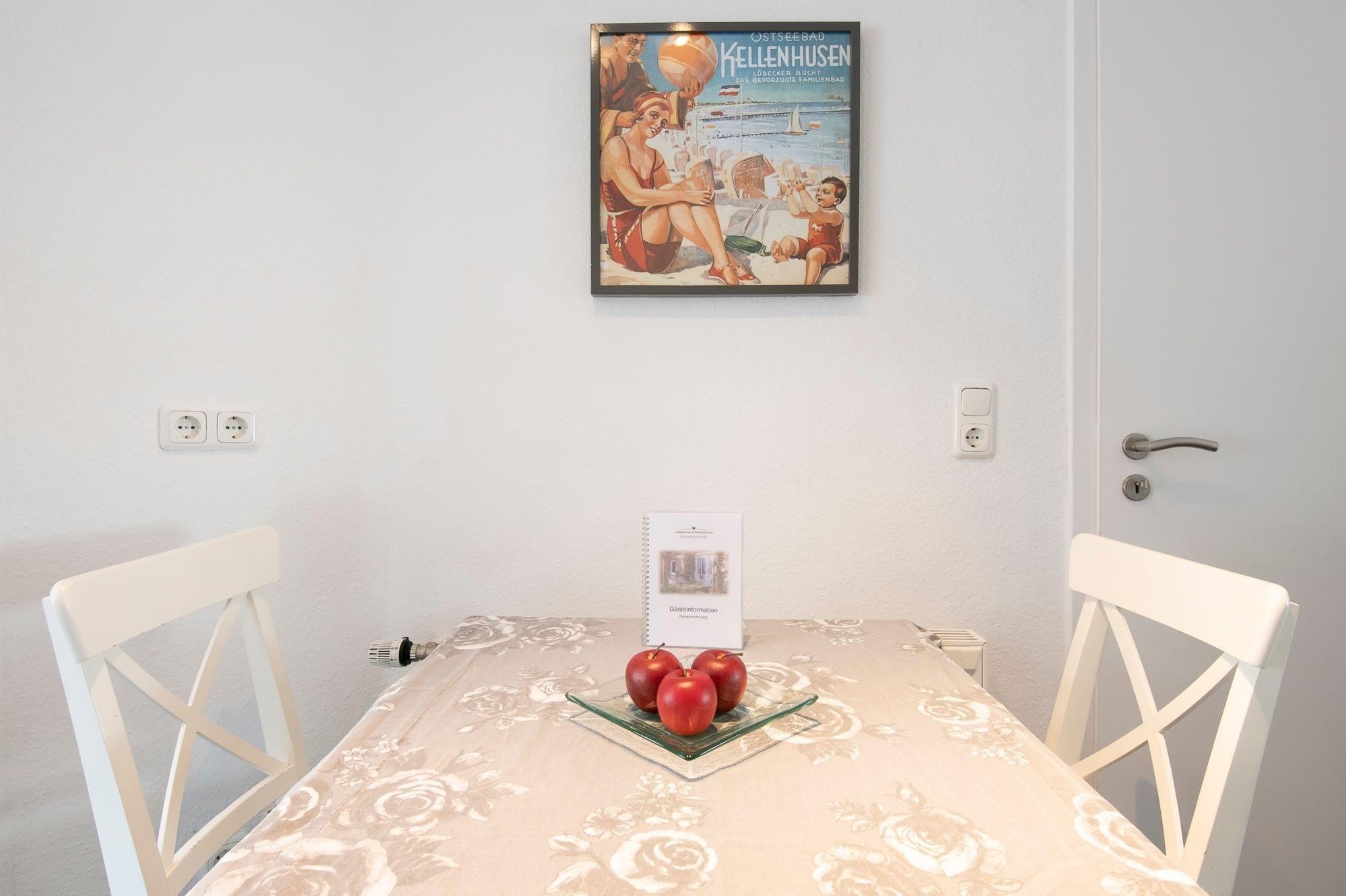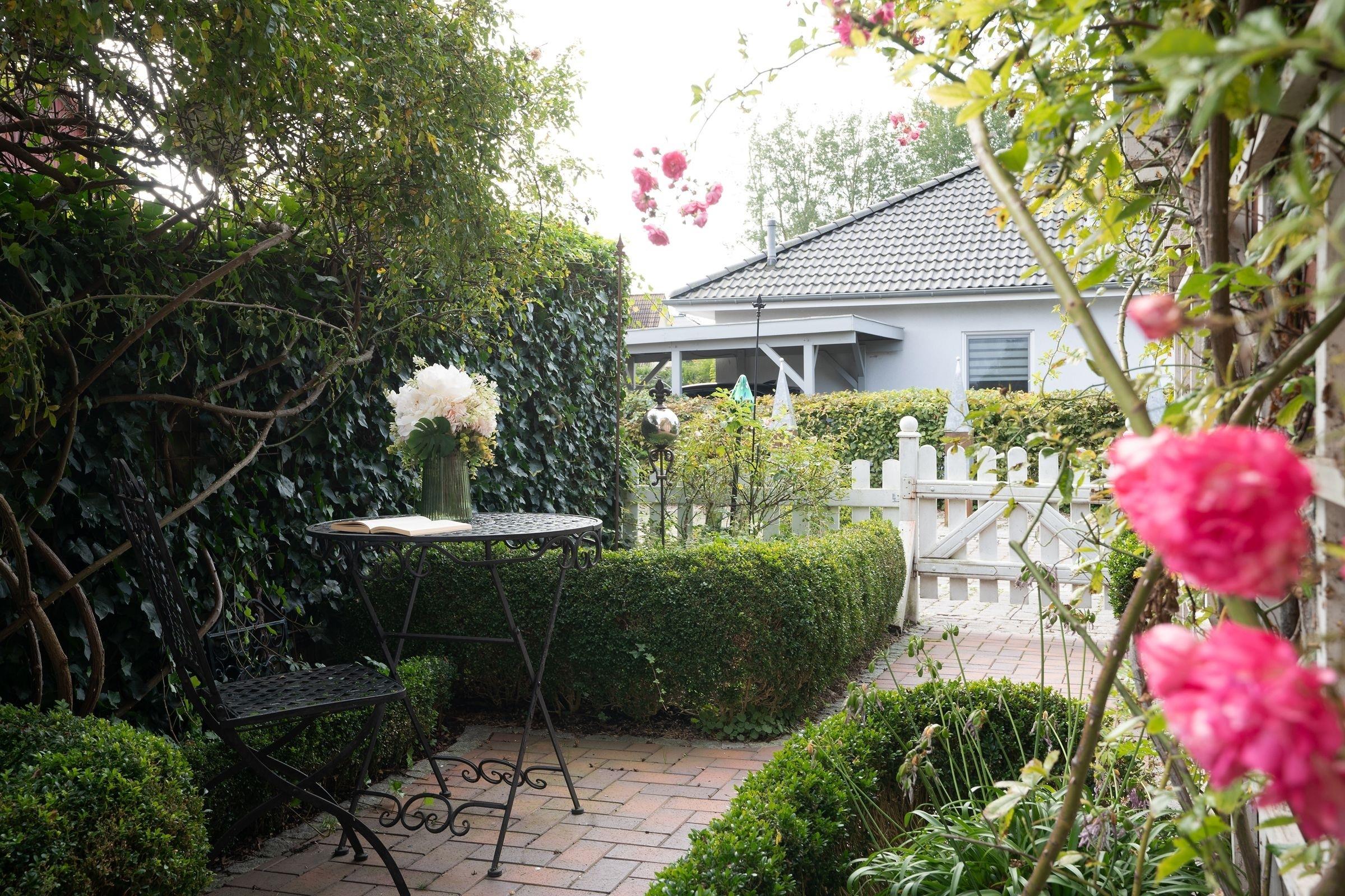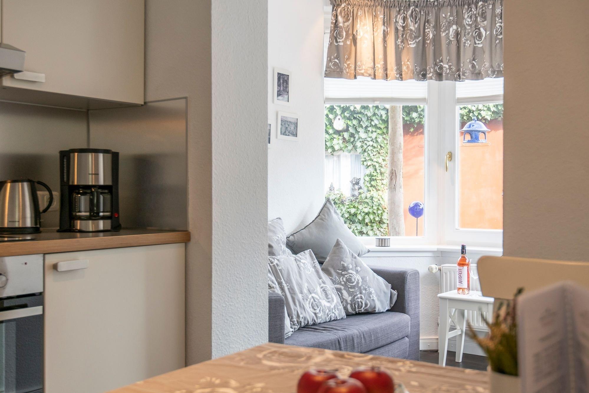 Wer die Abwechslung liebt, ist in der kleinen, sehr feinen Wohnung Rosengarten genau richtig: Zum Wald sind es nur rund 100 Meter – und die Ostsee ist natürlich auch nicht weit. Kommen Sie herein und nehmen Sie Platz in dem zauberhaften Erker mit schönem Gartenblick. Die bequeme Couch und das TV-Gerät laden zu gemütlichen Abendstunden ein. Wie wäre es hier mit einem Glas Wein? Die offene Küche ist mit allen notwendigen Küchenutensilien ausgestattet. Bereiten Sie hier Ihre Lieblingsspeisen zu, die Sie anschließen in der Sitzecke gleich davor genießen können. Auch draußen, im stimmungsvoll angelegten Außenbereich, wartet eine schöne Sitzecke auf Sie. Hier können Sie wunderbar entspannen. Für die Nachtruhe steht im Schlafzimmer ein Doppelbett (2x 90x200 cm) für Sie bereit. Träumen Sie hier von der schönen Ostseeküste und freuen Sie sich auf einen neuen Urlaubstag, der im hell gefliesten Duschbad mit Fenster und Handtuchwärmer komfortabel beginnt.