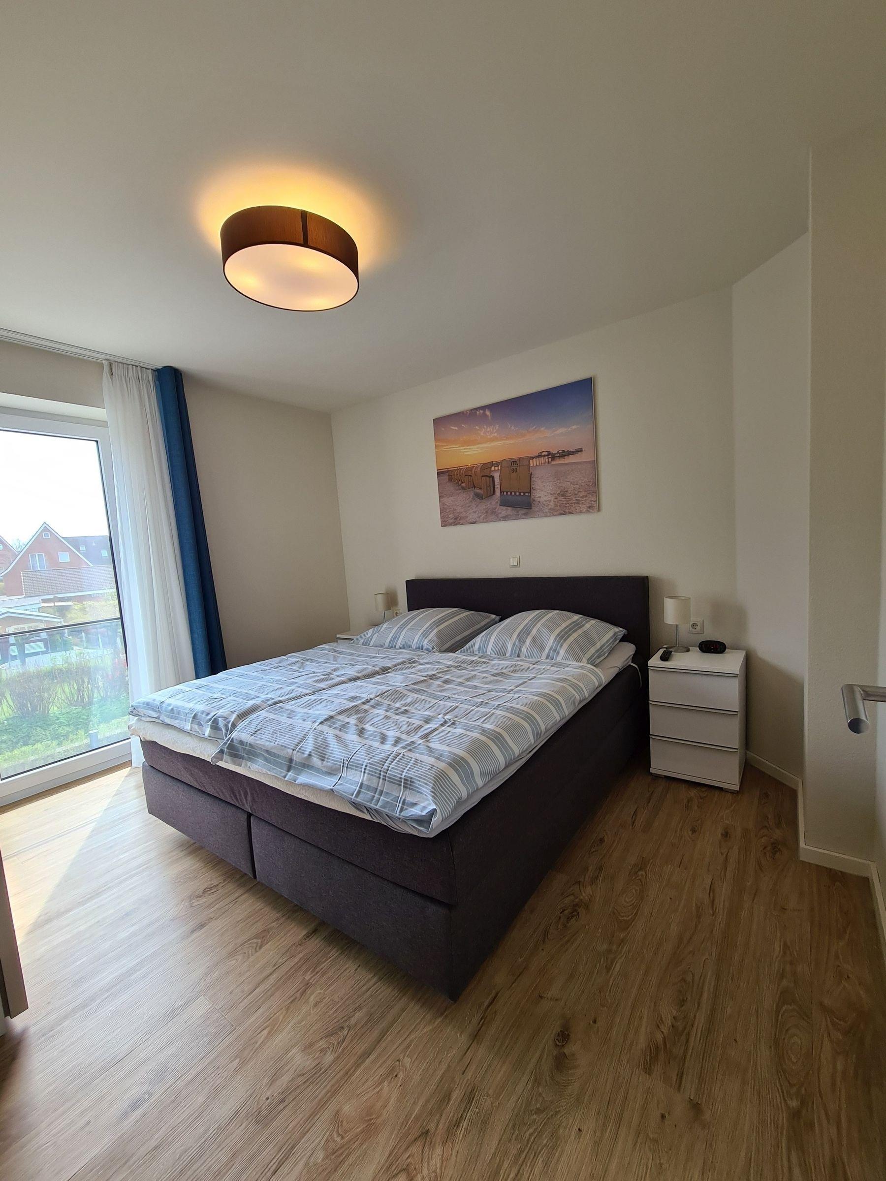 Schlafzimmer 1: 1 Boxspring-Doppelbett (180x200 cm), TV, Kleiderschrank, Verdunkelung (Vorhänge)
