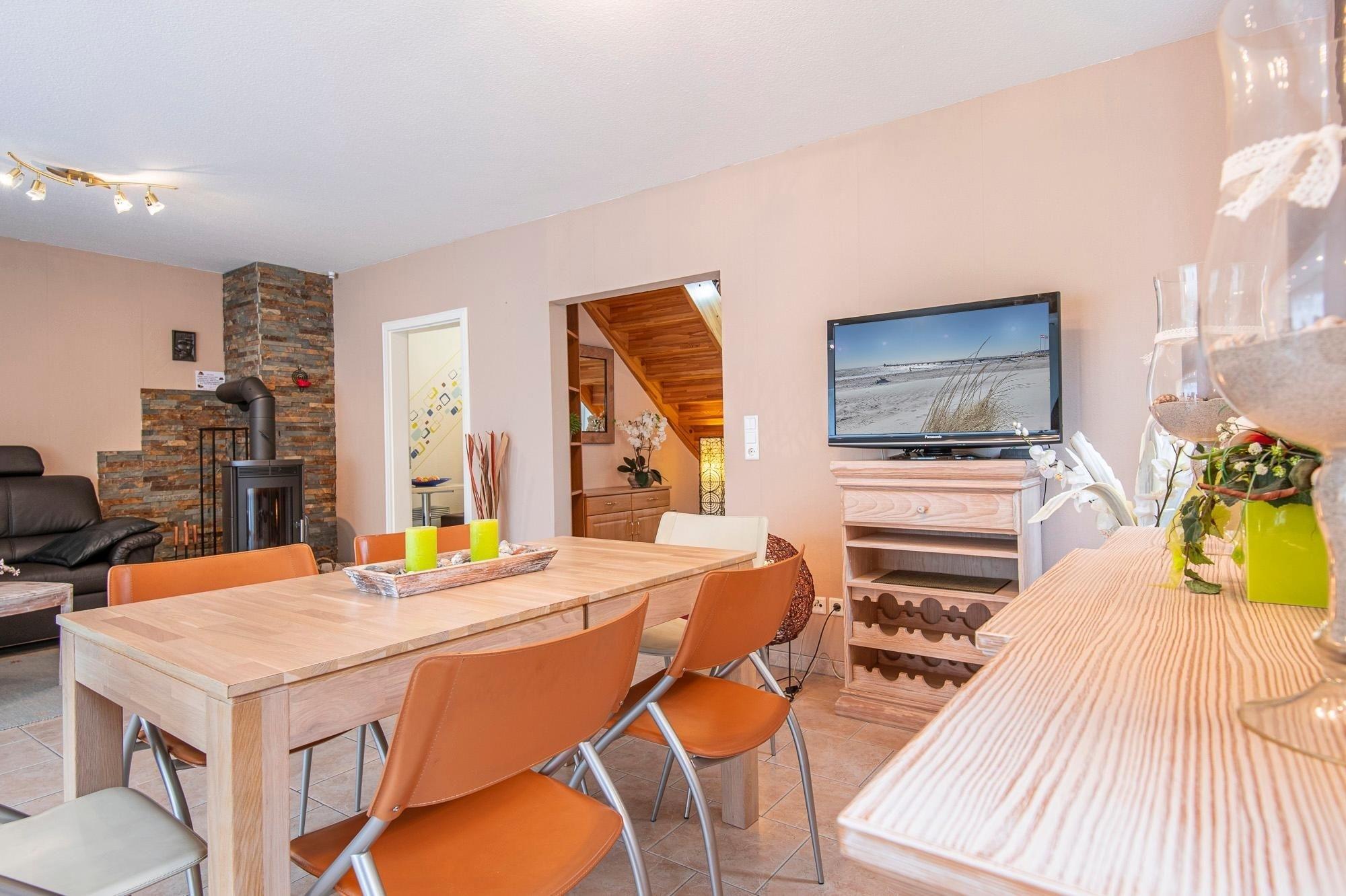 Wohnen wie in Skandinavien! In einem kleinen Neubaugebiet, das nur rund 5 Gehminuten vom Strand entfernt liegt. Diese komfortable Doppelhaushälfte verfügt im Erdgeschoss über ein großes Wohn-/Esszimmer mit Erker, TV-Gerät und Kaminofen. Die gut ausgestattete Küche mit Geschirrspüler und kleiner Sitzecke lässt keine Wünsche offen. Ferner ist im Erdgeschoss ein modernes Bad mit ebenerdiger Dusche sowie ein Hauswirtschaftsraum zu finden. Im Dachgeschoss gibt es drei Schlafzimmer: Eins mit Doppelbett (180x200 cm), eins mit einem französischen Bett (140x200 cm) und ein weiteres mit zwei Einzelbetten (je 90x200 cm). Zudem verfügt die Etage über ein großzügiges Duschbad mit Waschmaschine.