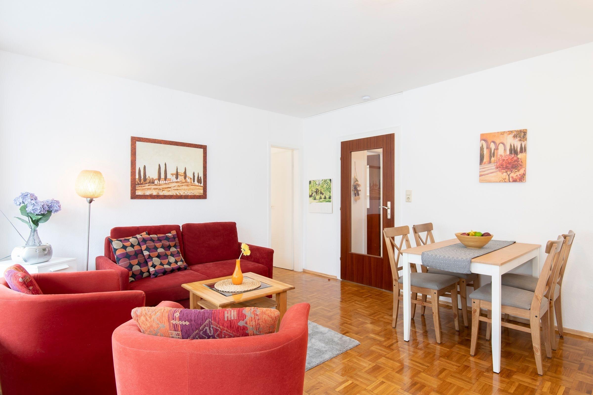 Für Ihr Fahrzeug gibt es einen PKW-Außenstellplatz am Haus. Mitgebrachte Fahrräder können im Fahrradkeller abgestellt werden. Der gemeinschaftliche Waschraum mit Waschmaschine und Trockner (gegen Gebühr) befindet sich im Keller. Außerdem ist ein kostenloser Hochstuhl für die kleinen Gäste vorhanden. WLAN ist inklusive.