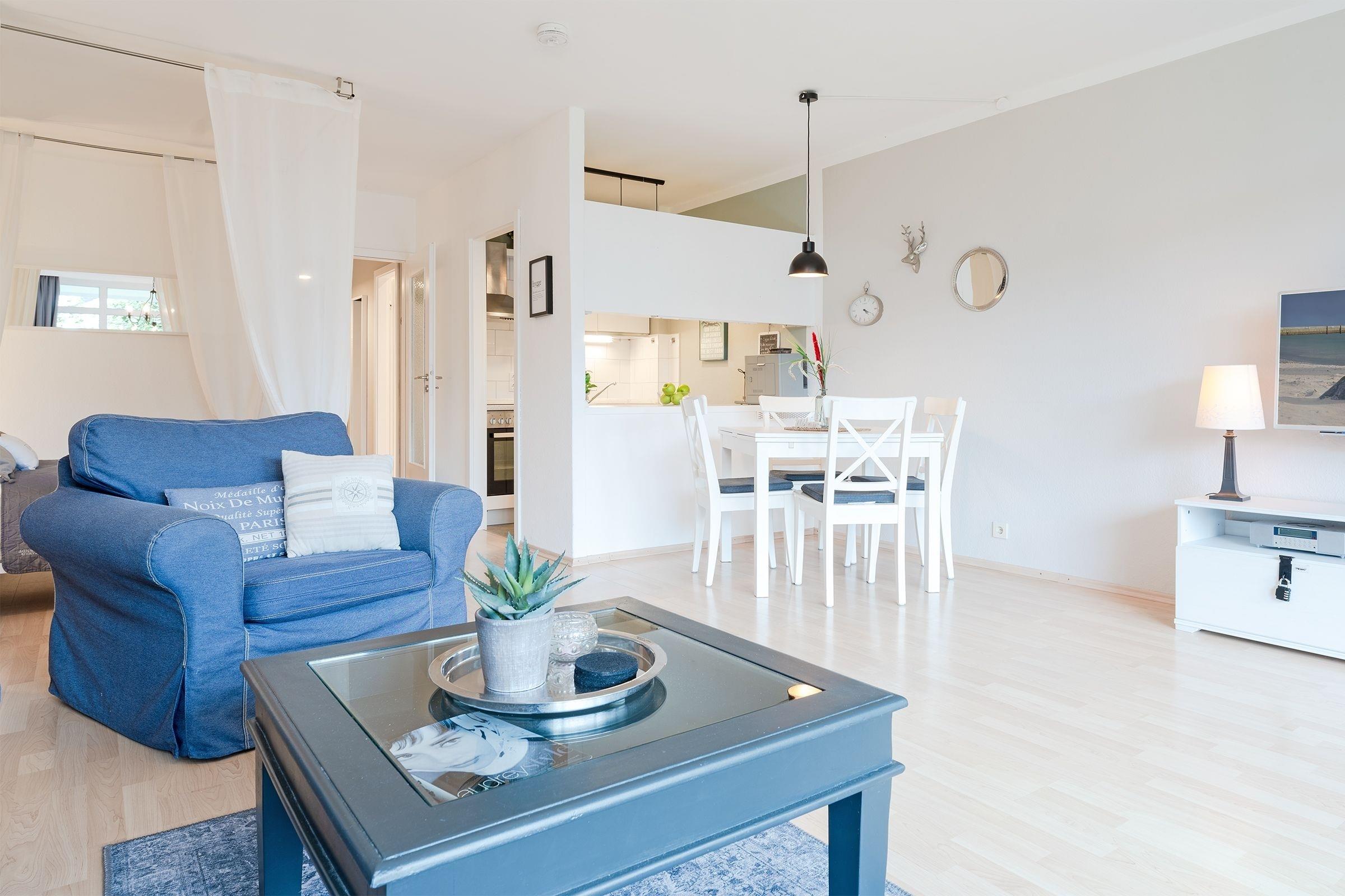 Urlaub in bester Lage von Kellenhusen: Strandnahe 2-Zimmer-Ferienwohnung im Hochparterre mit großer Balkon-Loggia und einer Wohnfläche von ca. 46 m² für bis zu 4 Personen.