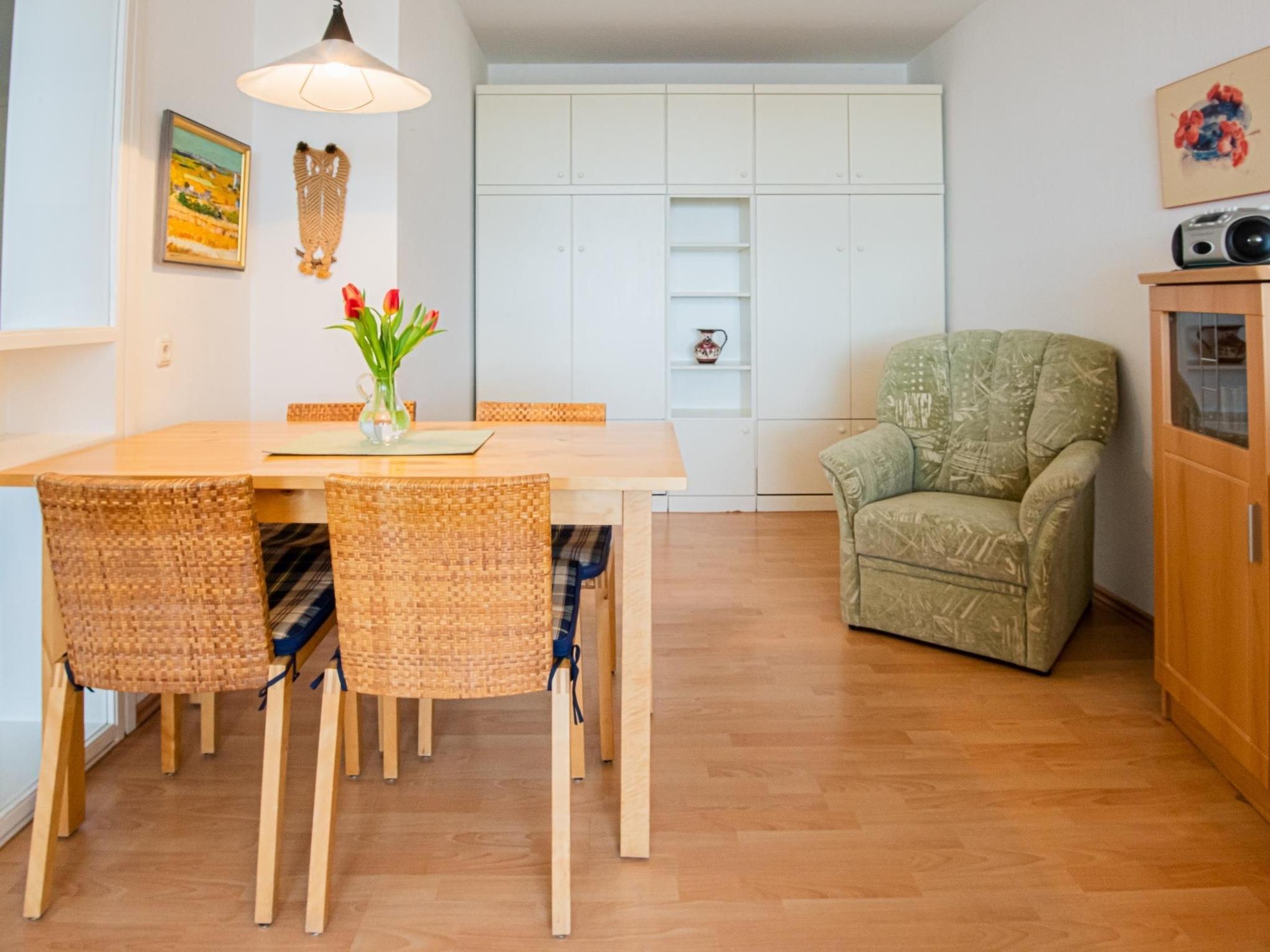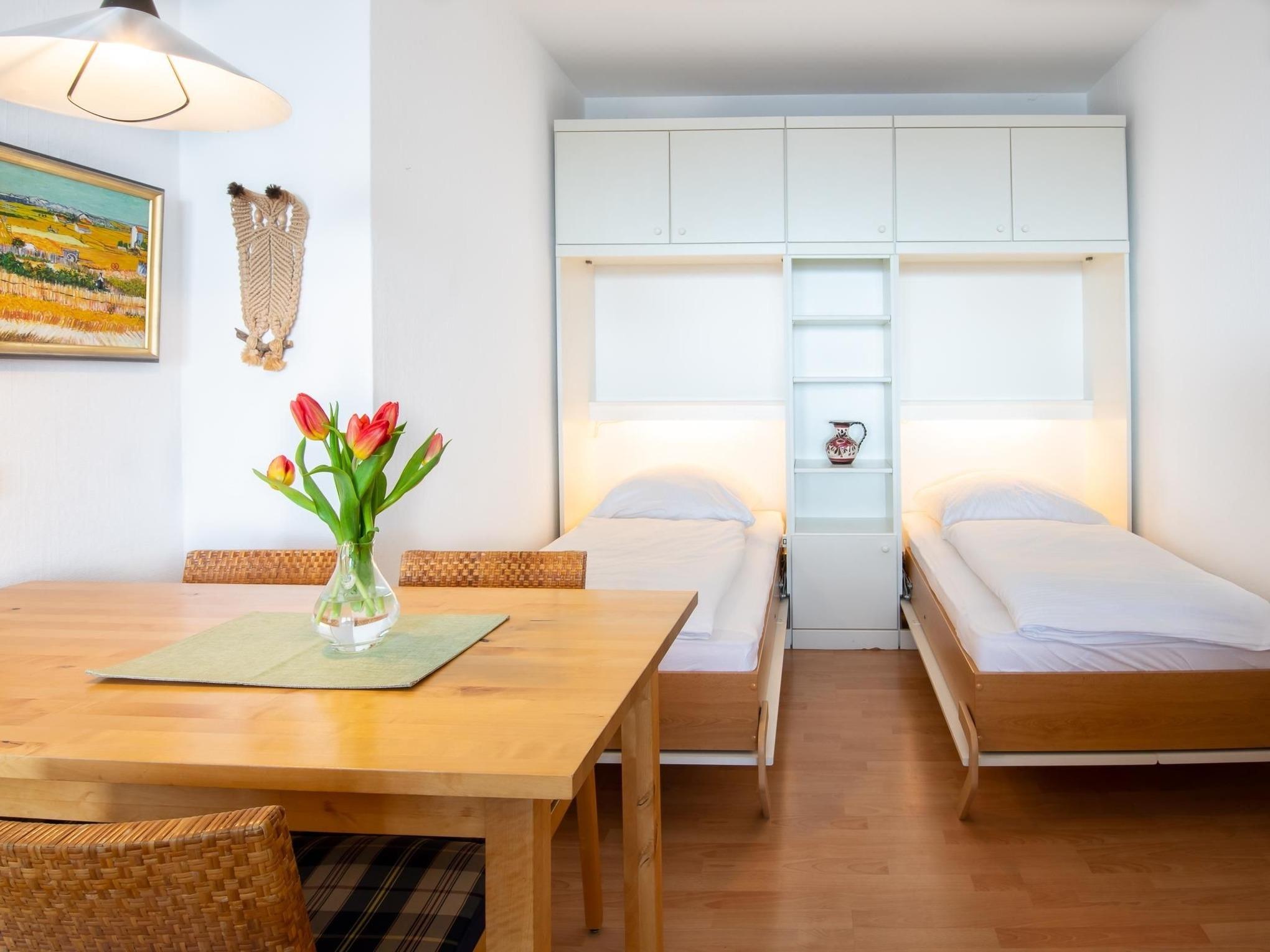 Die Wohnung verfügt über ein kombiniertes Wohn- und Schlafzimmer mit einer Schrankwand, die mit 2 separaten Schrankbetten (2x 85x200 cm) ausgestattet ist. Ein Esstisch, eine gemütliche Couch sowie ein Flachbildfernseher sind ebenfalls vorhanden. Die separate, helle Küche ist z. B. mit einem 2-Platten-Ceranfeld, einem Kühlschrank mit separatem Gefrierfach und einem Geschirrspüler gut ausgestattet. Im separaten Schlafzimmer erwartet Sie ein Doppelbett (2x 90x200 cm) und ein Kleiderschrank. Das innenliegende, hell geflieste Badezimmer mit Dusche bietet ausreichend Stauraum für Ihre Badutensilien. Der WLAN-Anschluss ist selbstverständlich inklusive.