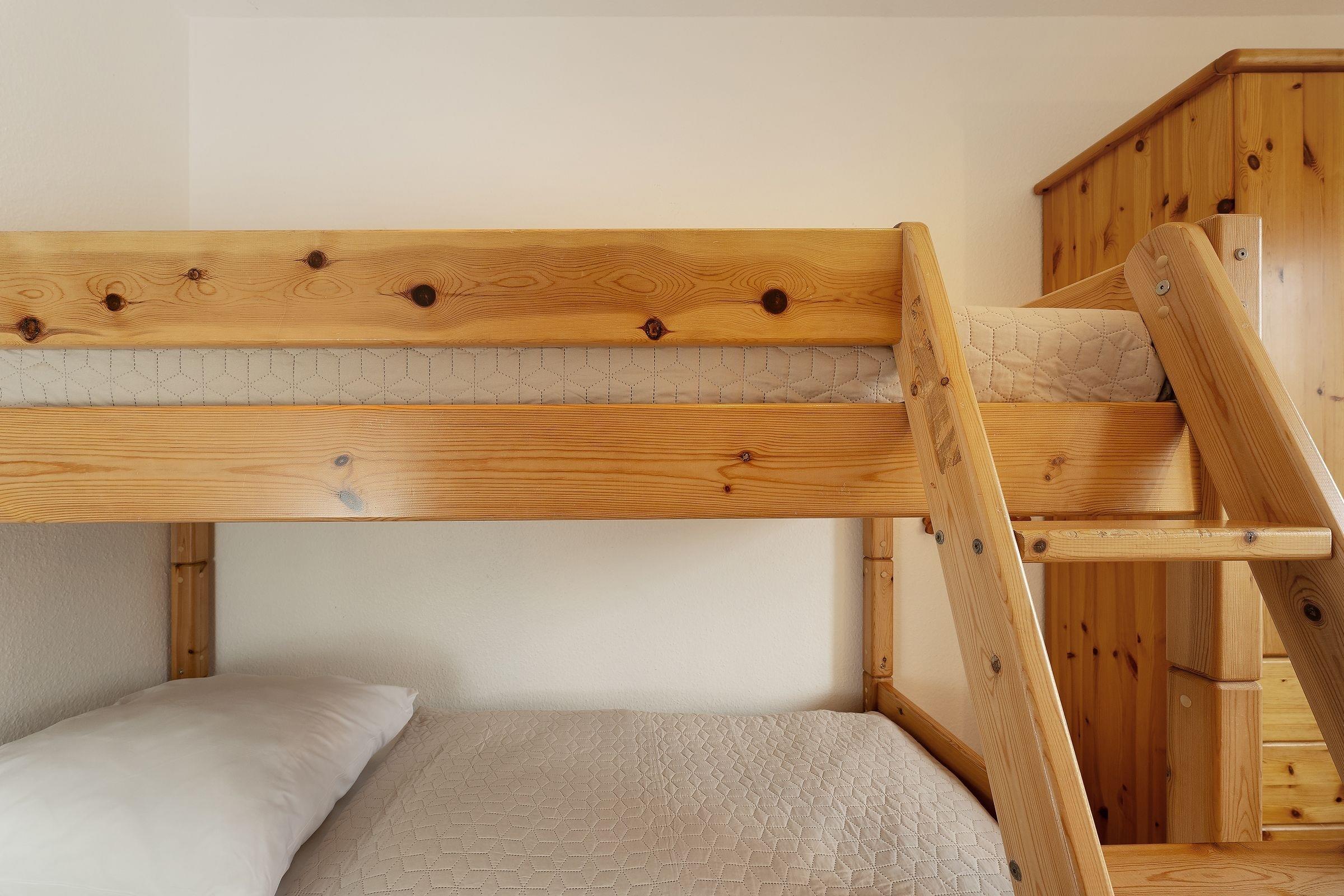 Schlafzimmer 2 (Hochparterre): 1 Etagenbett (je 90x200 cm), Kleiderschrank