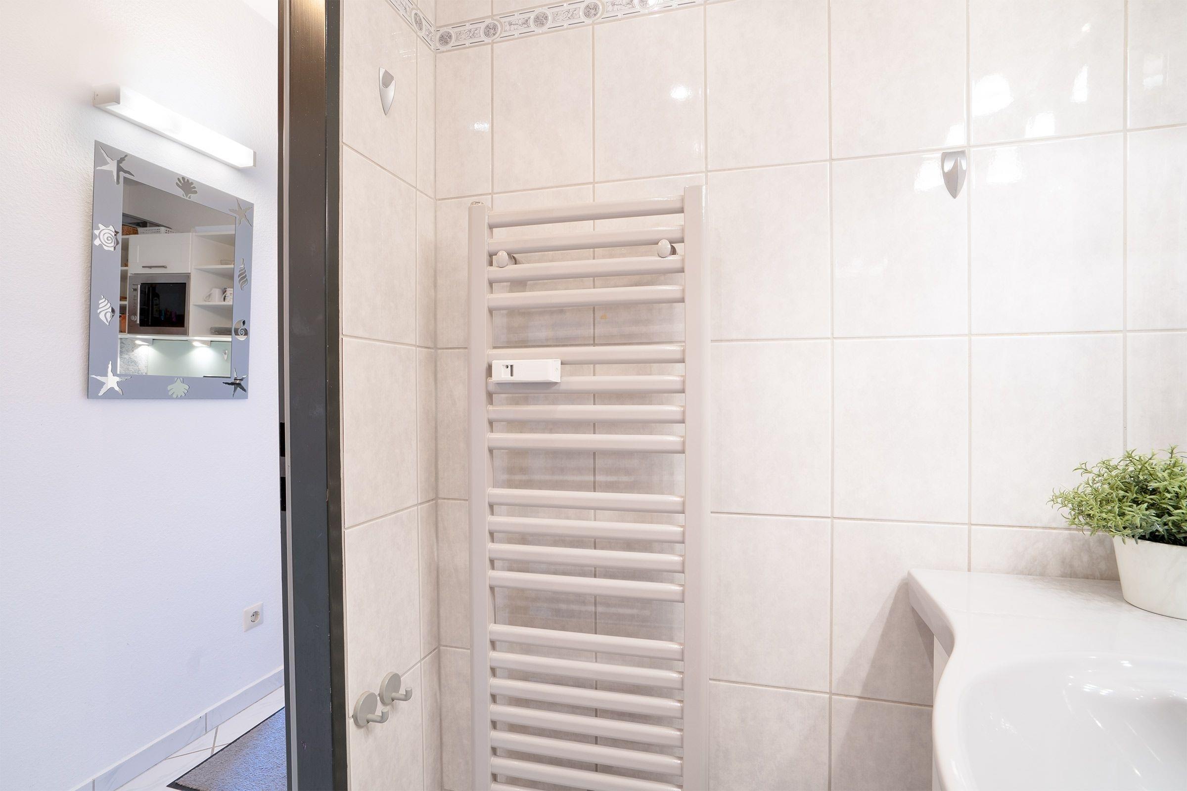 Hier erwartet Sie eine komfortable Ferienunterkunft im Haus Meeresblick im Leuchtturmweg 3 – nur rund 100 Meter vom Ostseestrand entfernt. Die schöne Aufteilung wird Sie begeistern: Im gemütlichen Wohnzimmer erwarten Sie eine schöne Essecke sowie eine bequeme Sofalandschaft, die Sie bei Bedarf in einen Schlafplatz (ca. 115x200 cm) verwandeln können. Ein TV-Gerät sowie ein DVD-Player sorgen für die passende Unterhaltung. Frische Ostseeluft können Sie auf dem möblierten Balkon genießen. Und in der kleinen Küche mit 2-Platten-Ceranfeld, Mikrowelle, Mini-Backofen und Geschirrspüler können Sie sich prima selbst versorgen. Im separaten Schlafzimmer befindet sich ein Doppelbett (2x 90x200 cm). Und das Duschbad mit Handtuchwärmer ist hell gefliest.