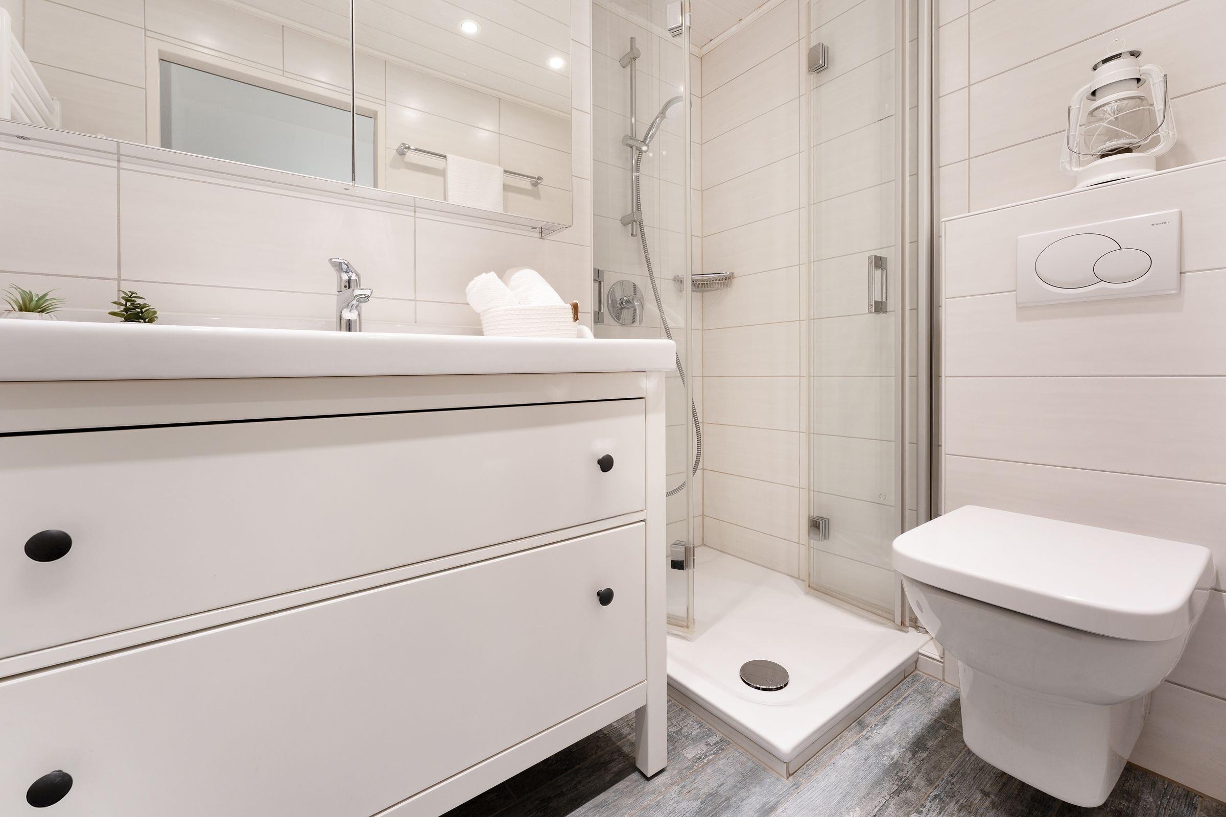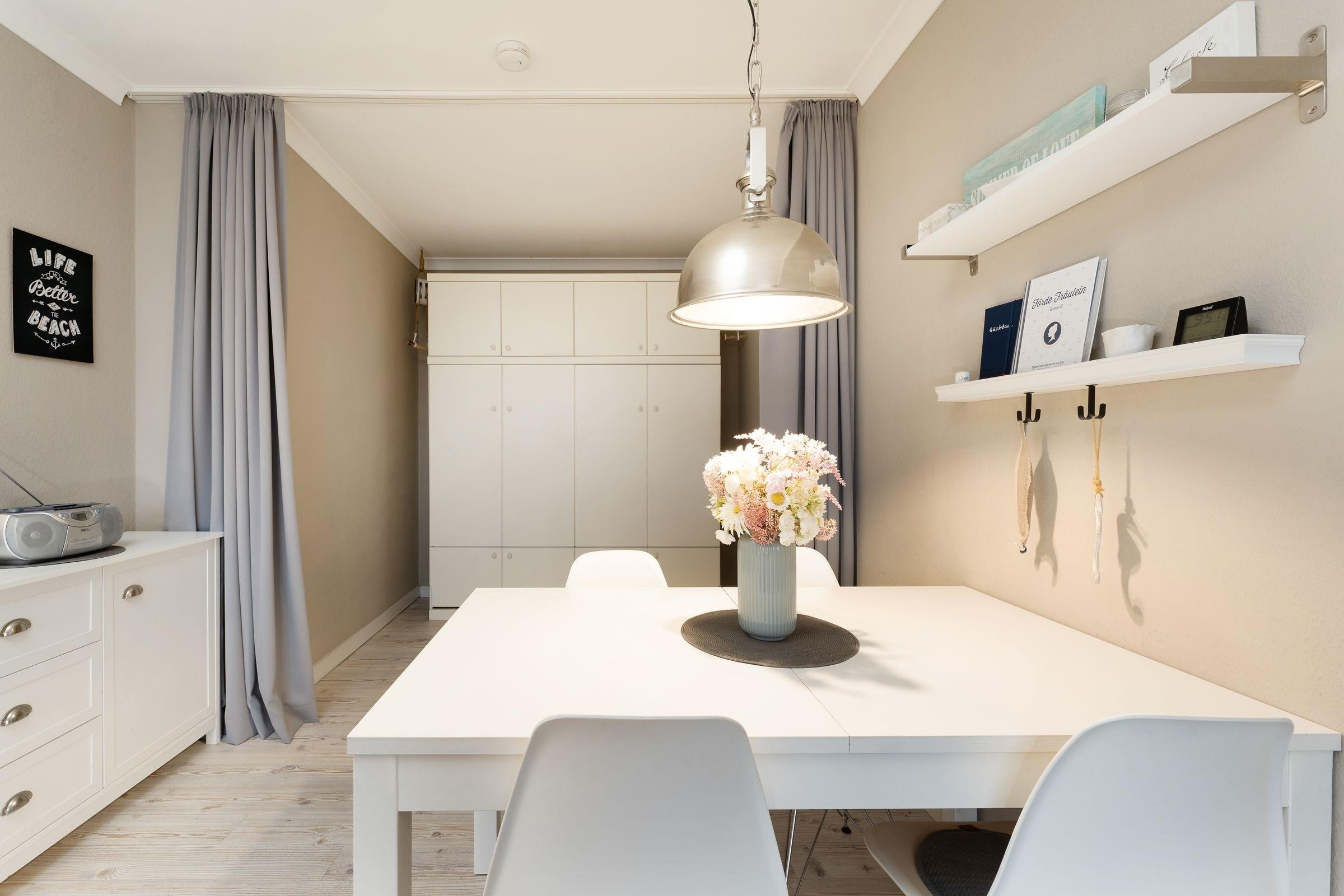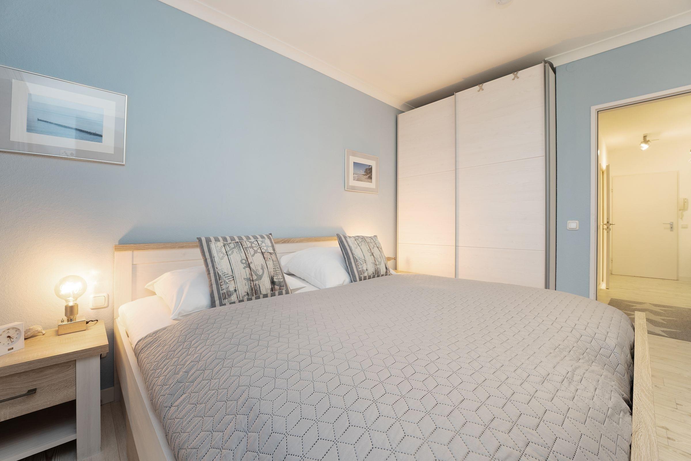 In der maritim eingerichteten Ferienwohnung werden Sie sich sofort wohlfühlen – Ihr Urlaub kann direkt beginnen! Im Wohnzimmer warten eine gemütliche Sitzecke mit TV sowie eine Essecke auf Sie. Von hier aus können Sie auf den möblierten Balkon treten und die frische Meeresbrise der nur 100m entfernten Ostsee genießen. Im Wohnzimmer befindet sich ein praktisches Schrankbett (2x 90x200 cm), das für die Nacht ausgeklappt wird. In einem separaten Schlafzimmer steht ein Doppelbett (2x 90x200 cm). Darin lässt es sich wunderbar von den Erlebnissen des Tages träumen. Die geschlossen Küche mit Induktionsherd ist gut ausgestattet und steht bereit für jegliche Koch-Ideen. Zaubern Sie hier Ihre Menüs und genießen Sie Ihre Zeit an der Ostsee.