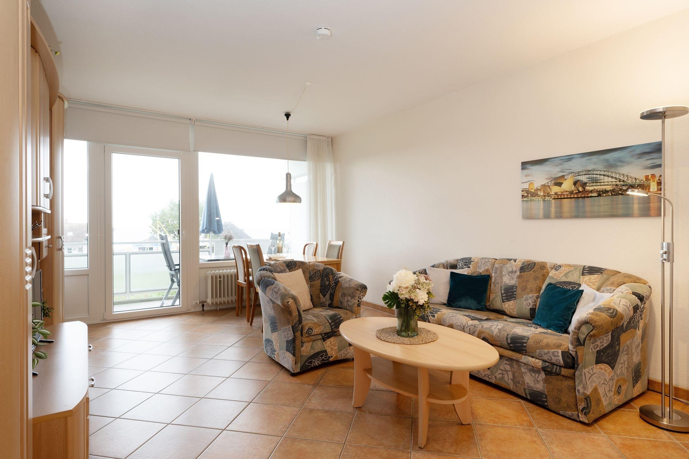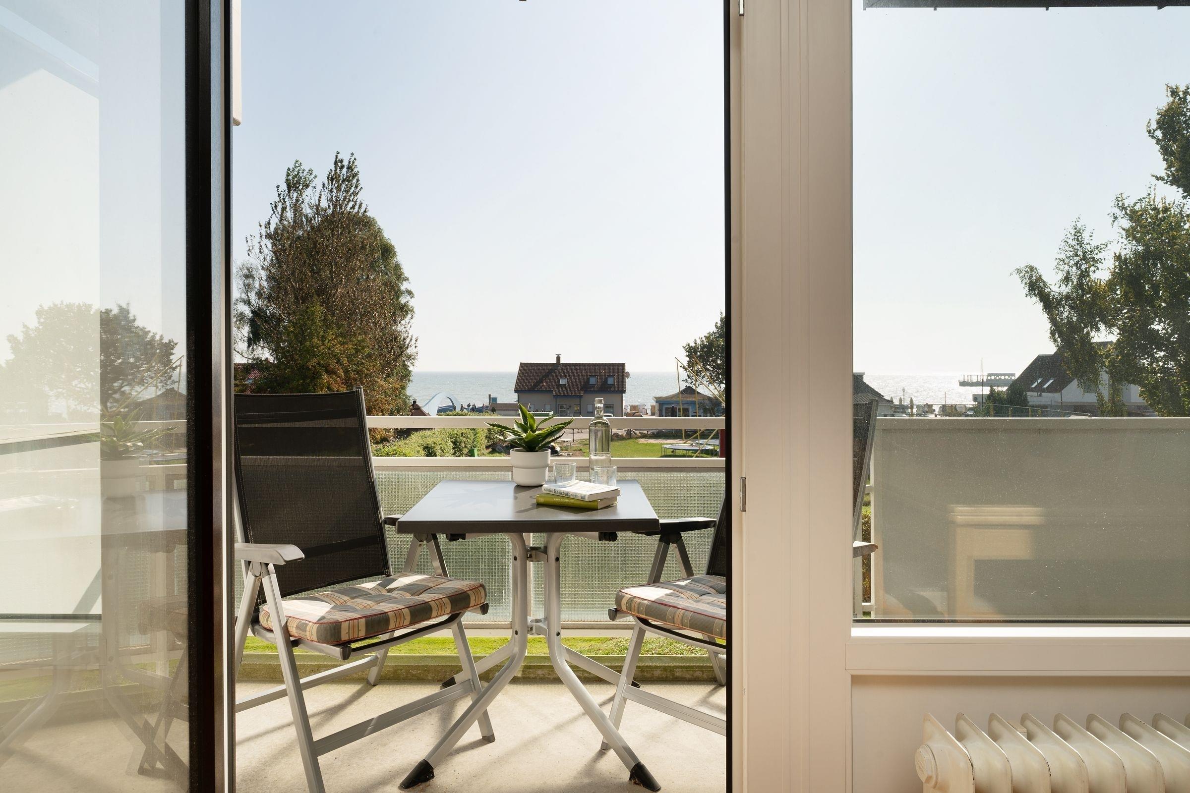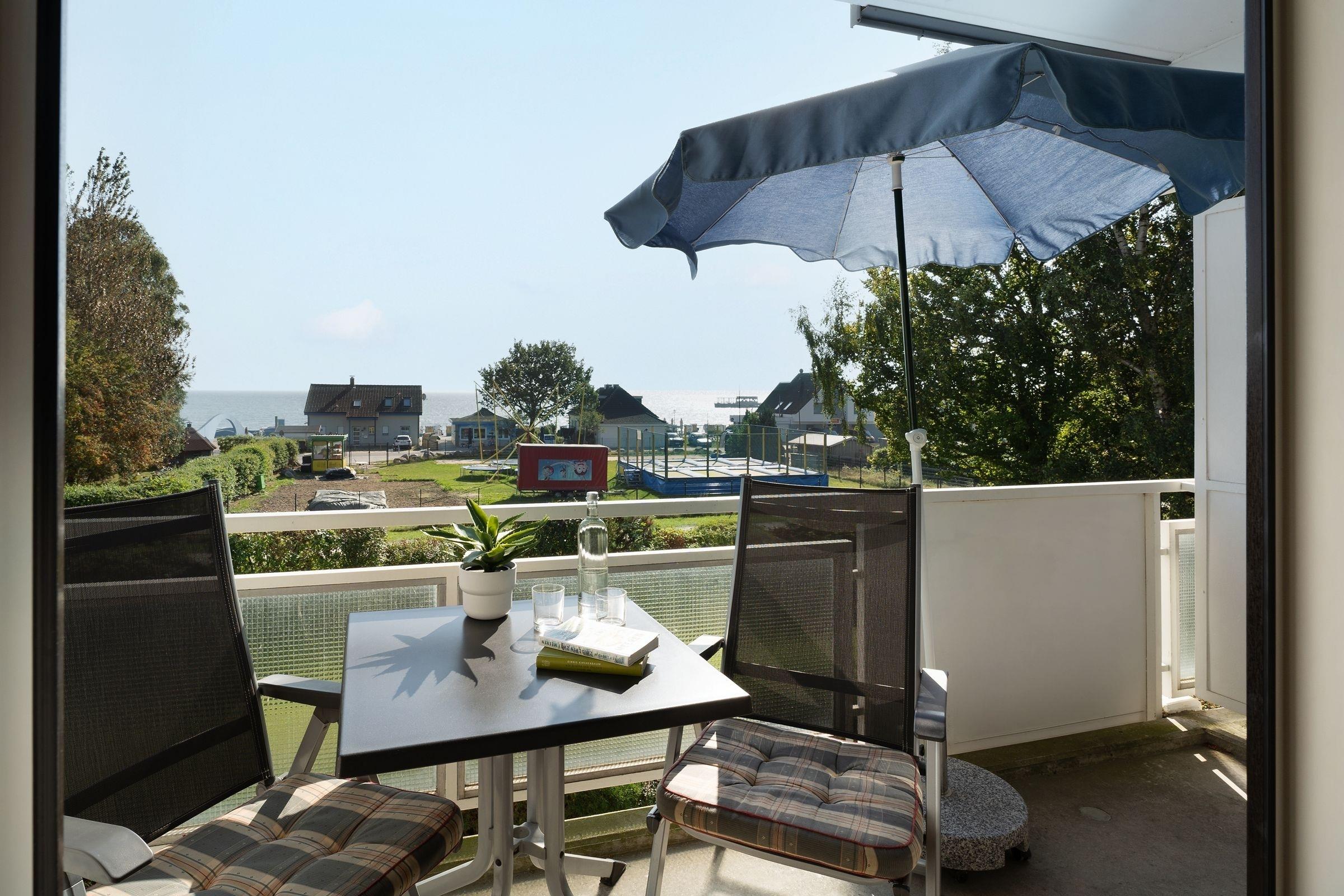 Strandnahe Ferienwohnung mit Balkon und Seeblick in Kellenhusen, ideal für erholsame Tage an der Ostsee.