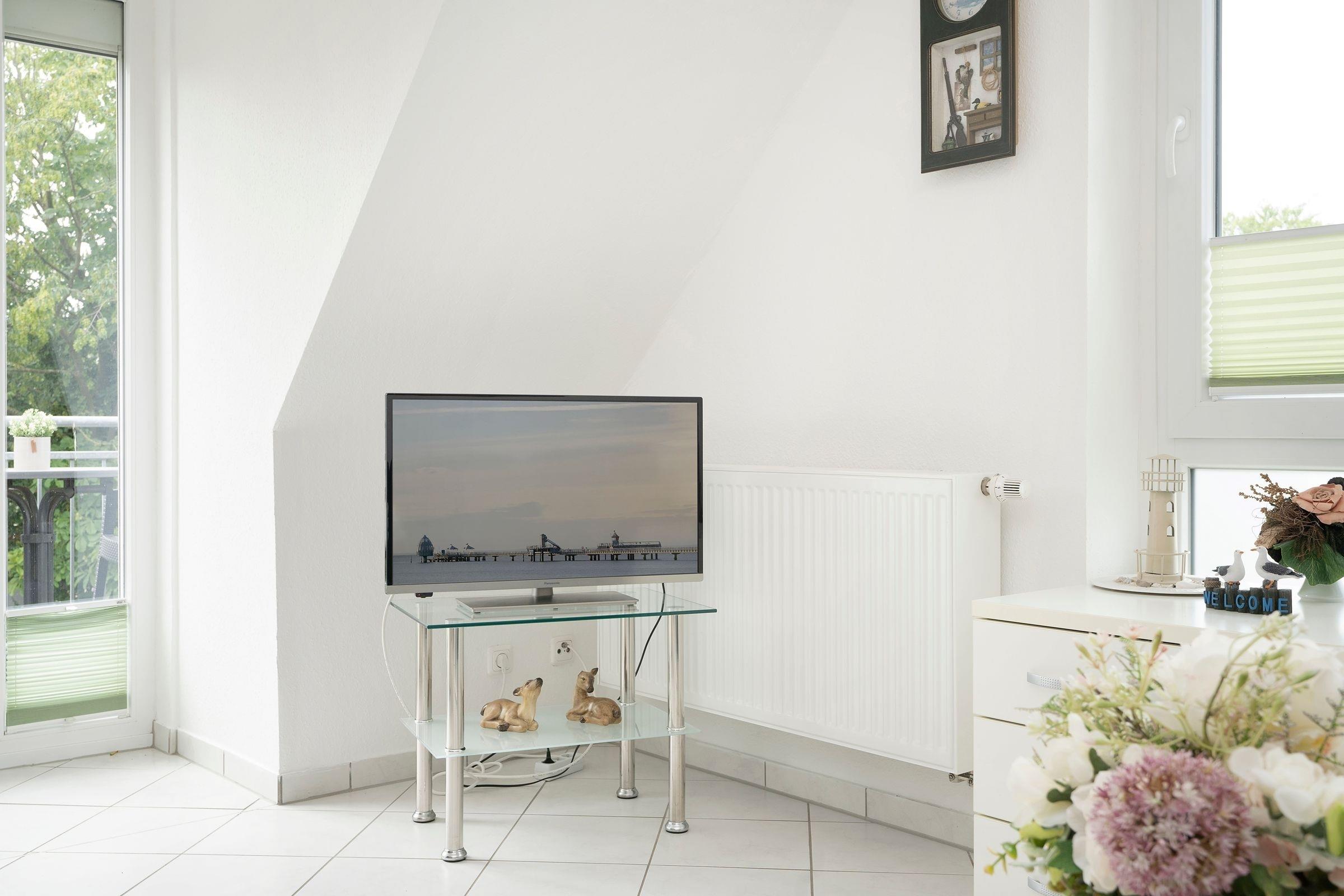 Öffnen Sie die Tür und Ihr Urlaub beginnt. Es begrüßt Sie ein kombiniertes Wohn-/Esszimmer mit Couchecke, Flachbild-TV und Radio, in dem Sie kuschelige Filmabende nach einem langen Tag am Strand verbringen können. Das Highlight dieser Wohnung bildet der großzügige Balkon auf dem Sie im gemütlichen Strandkorb die Sonne genießen können. Kochen wird in der integrierte Einbauküche mit Geschirrspüler, Mikrowelle, Backofen und 4-Platten-Ceranfeld zum Vergnügen. Dort finden Sie sogar eine Waschmaschine für jederzeit frische Urlaubsgarderobe. Verbringen Sie erholsame Nächte im separate Schlafzimmer, das mit getrennt stehende Betten (je 90x200 cm) ausgestattet ist. Das Bad mit Dusche, WC und Handtuchwärmer ist hell und freundlich.