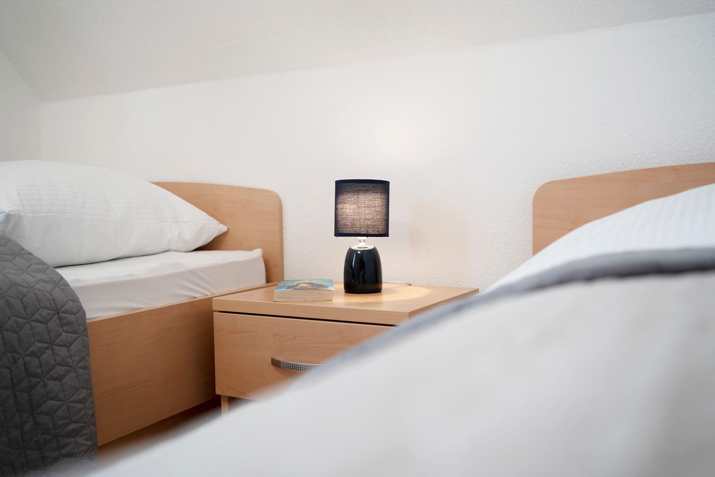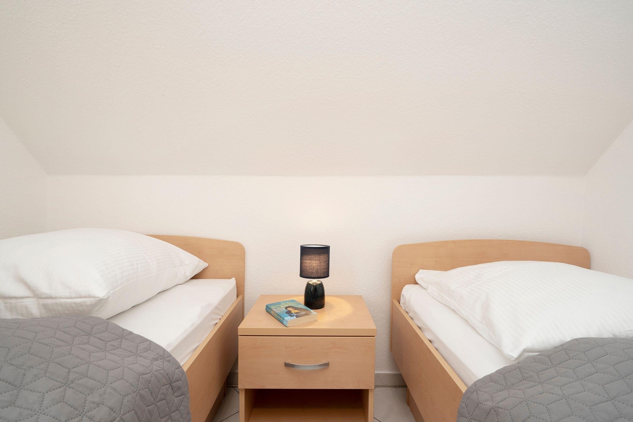 Schlafzimmer: 2 Einzelbetten (je 90x200 cm), Kleiderschrank, Verdunkelungsmöglichkeit