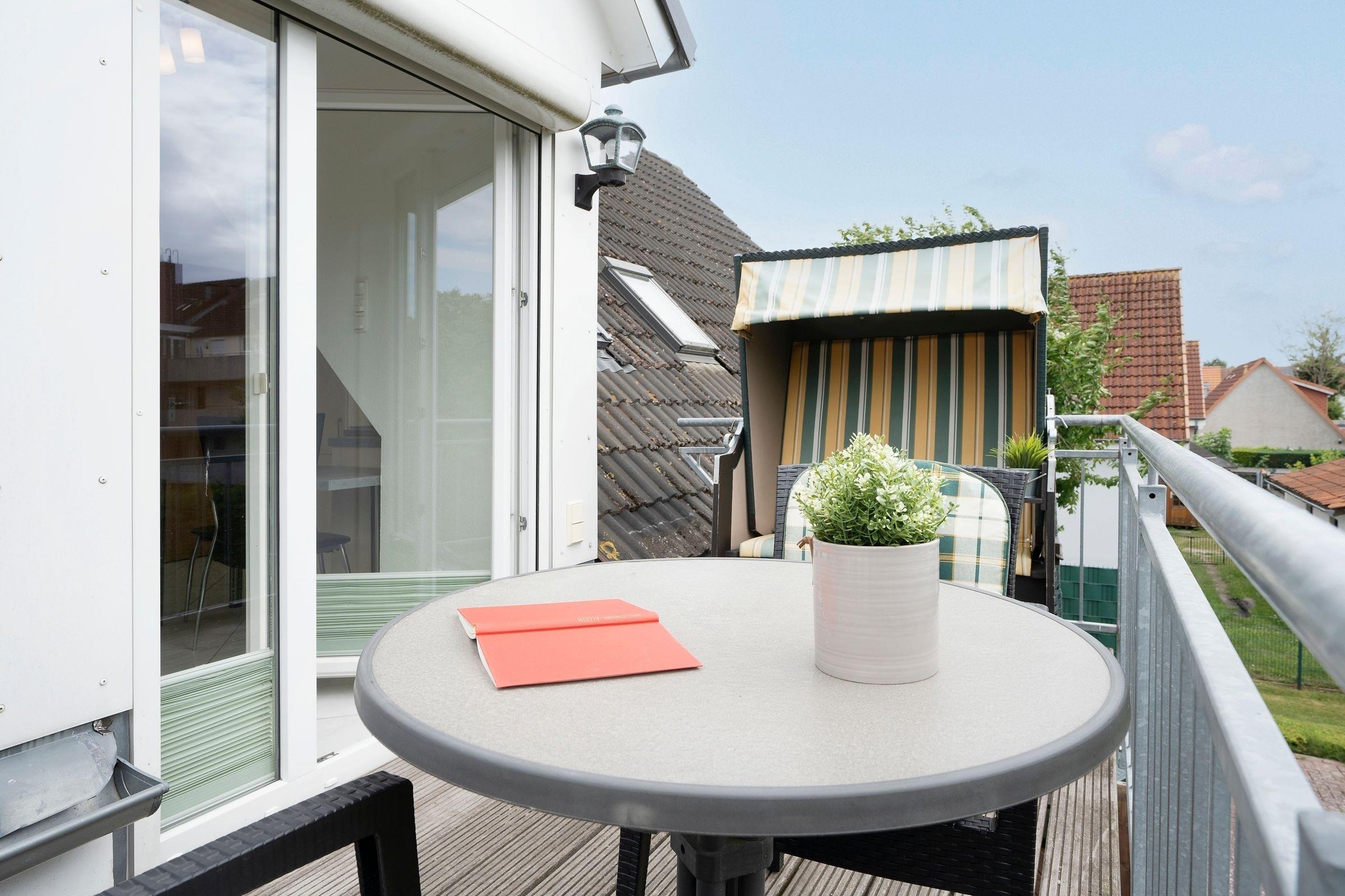 Gemütliche Ferienwohnung Diana in Kellenhusen mit Balkon, Strandkorb und moderner Küche für erholsamen Urlaub.