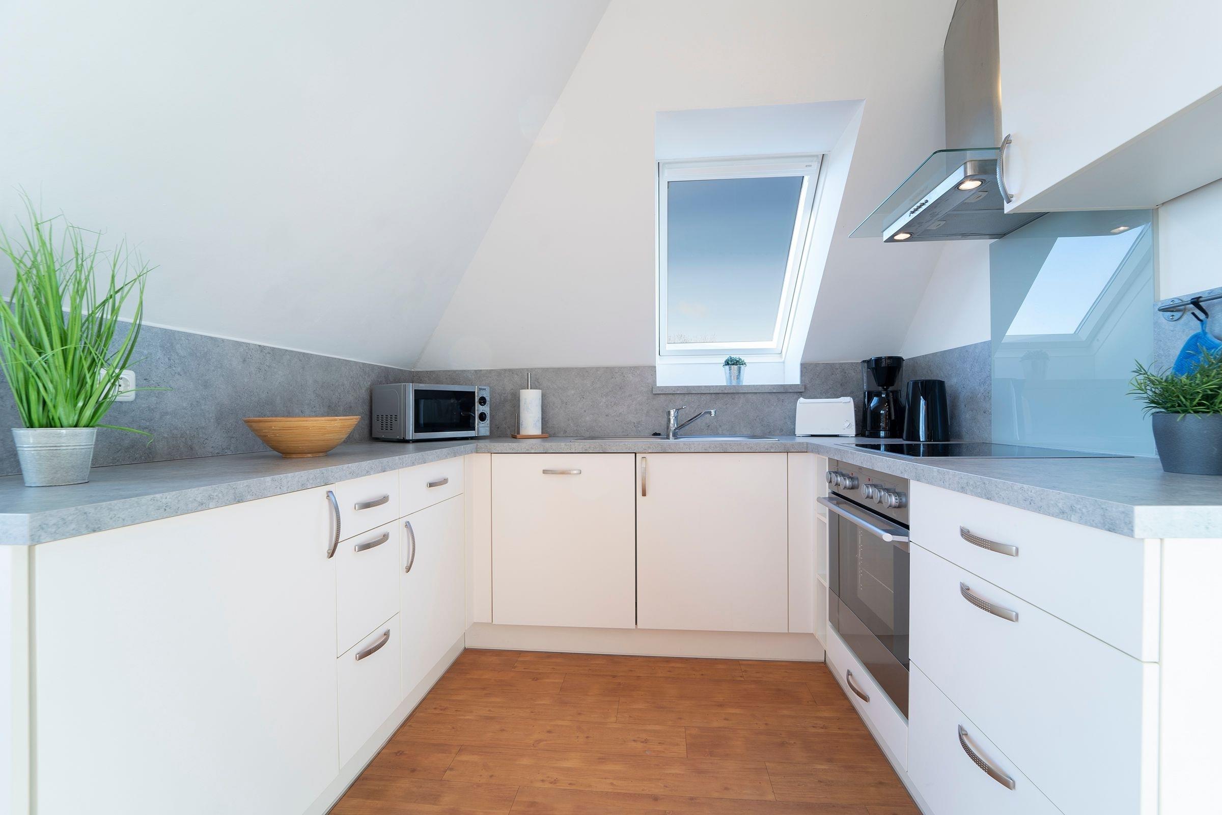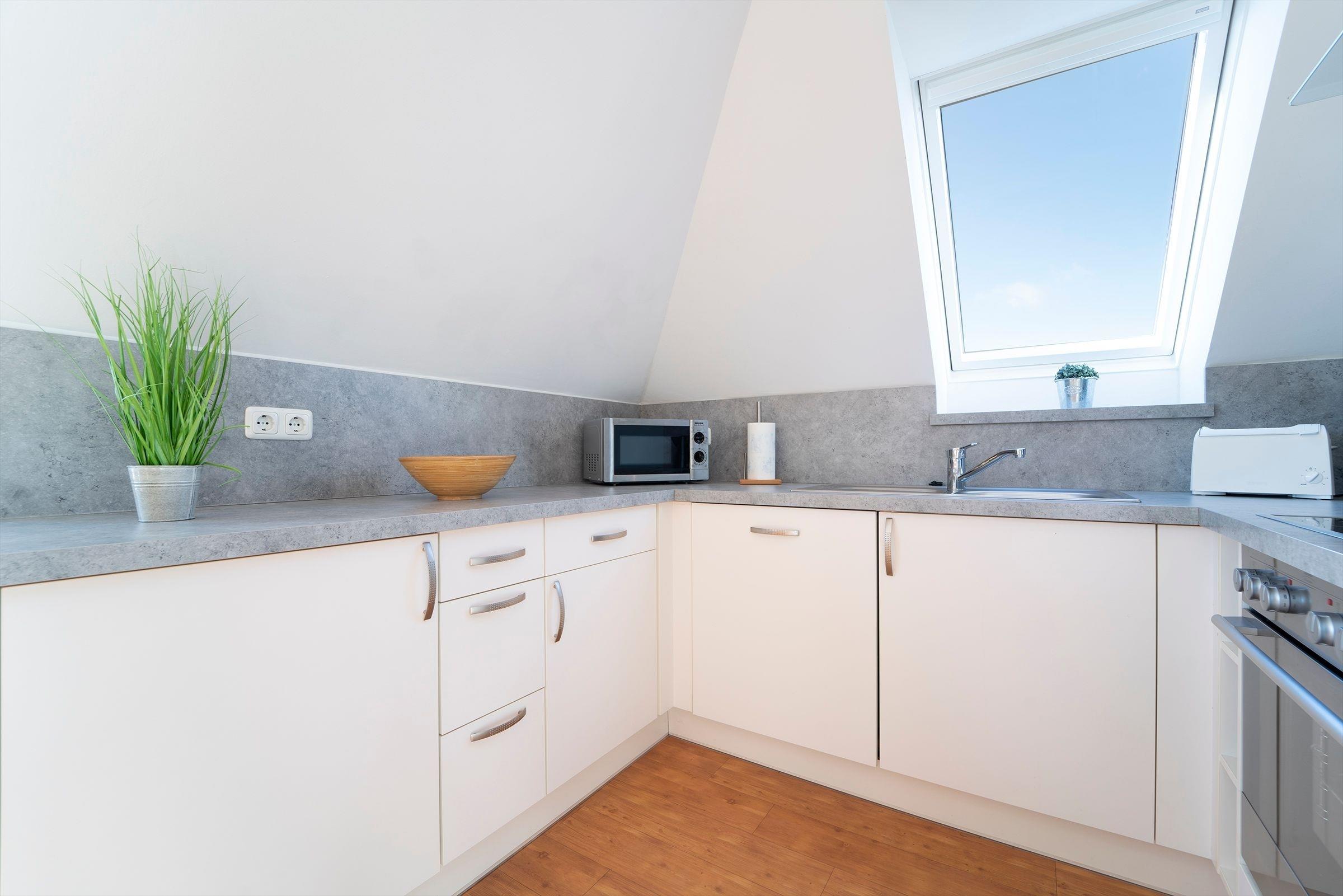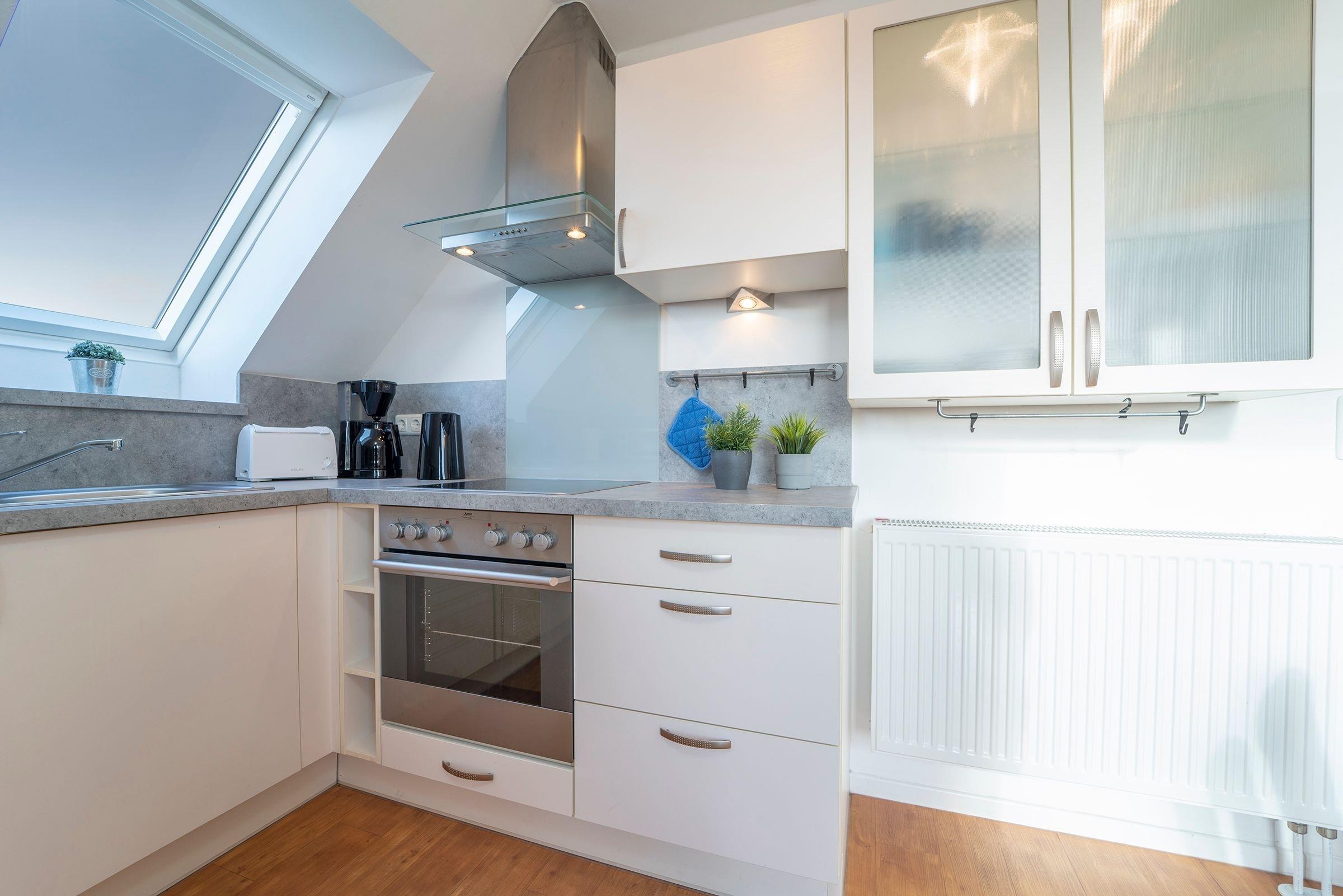Eine Wohnung der Extraklasse! Diese Maisonette-Wohnung erstreckt sich über 2 Etagen und bietet Ihnen in der Eingangsebene einen großzügigen Wohn- und Essbereich mit großzügiger Couchgarnitur. Hier finden alle Urlaubsgäste einen Platz beim gemeinsamen Filmabend auf dem Flachbild-TV. Die moderne Einbauküche ist zum Wohnbereich hin integriert und lässt mit der guten Ausstattung keine kulinarischen Wünsche offen.