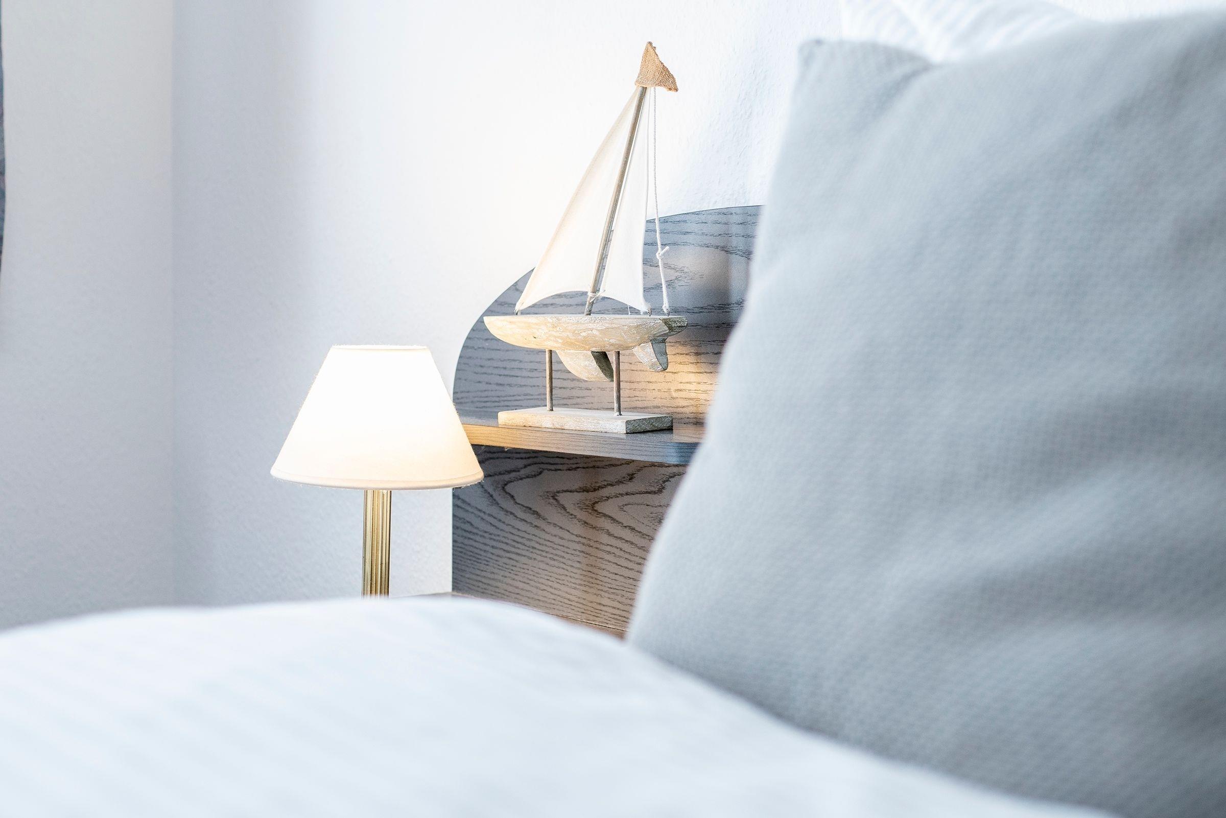 Nur rund 80 Meter vom Ostseestrand entfernt – gleich hinter dem Deich liegt die zauberhafte Ferienwohnung Deichbrise. Und eine angenehm leichte Deichbrise werden Sie sicher auch auf der schönen Terrasse erleben. Aber treten Sie erst einmal ein: Der lichtdurchflutete Wohn-/Essbereich empfängt Sie mit einer kuscheligen Polster-Garnitur. Hier kann man sich prima gegenübersitzen und unterhalten – oder sich vom TV-Gerät unterhalten lassen. Auch haben Sie hier direkten Zugang auf die möblierte Terrasse. Wie wäre es hier mit einem Glas Wein am Abend? Lauschen Sie der Ostsee und genießen Sie Ihre freie Zeit. Die gut ausgestattete Küche ist zum Wohnraum hin offen gestaltet, befindet sich aber etwas für sich in einer Nische. Davor steht eine gemütliche Essecke. Nach einem herrlichen Urlaubstag an der Küste finden Sie wunderbare Nachtruhe in dem sogenannten Moltke-Schlafzimmer. Das heißt, Sie können den Raum bequem von zwei Seiten aus betreten. In der Mitte steht ein komfortables Doppelbett (180x200 cm). Das großzügige Duschbad ist innenliegende und hell geflieste.