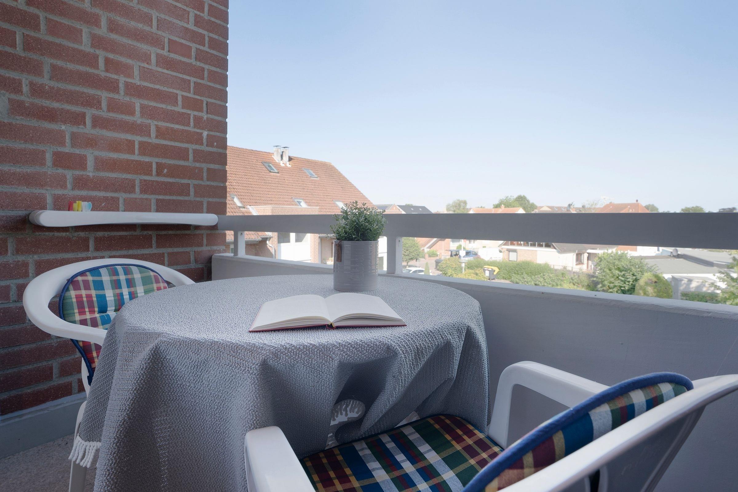 Strandnahe 2-Zimmer-Ferienwohnung im 2. Stock mit 2 Balkonen für bis zu 2 Personen mit einer Wohnfläche von ca. 42 m². Das Objekt steht in Kellenhusen in der 1. Reihe.