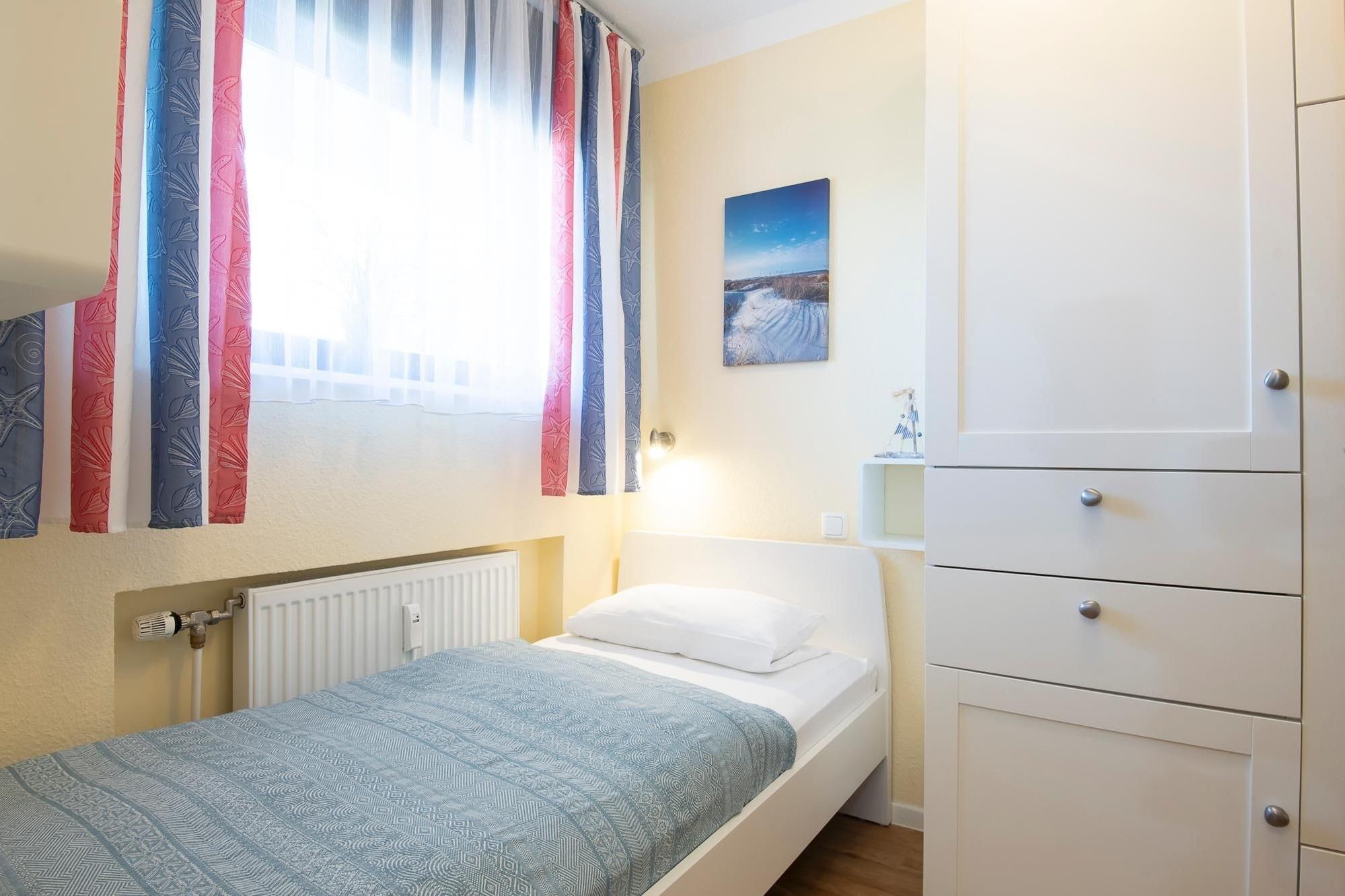 Schlafzimmer: 1 Einzelbett (90x190 cm), 1 Französisches Bett (140x190 cm), Kleiderschrank
