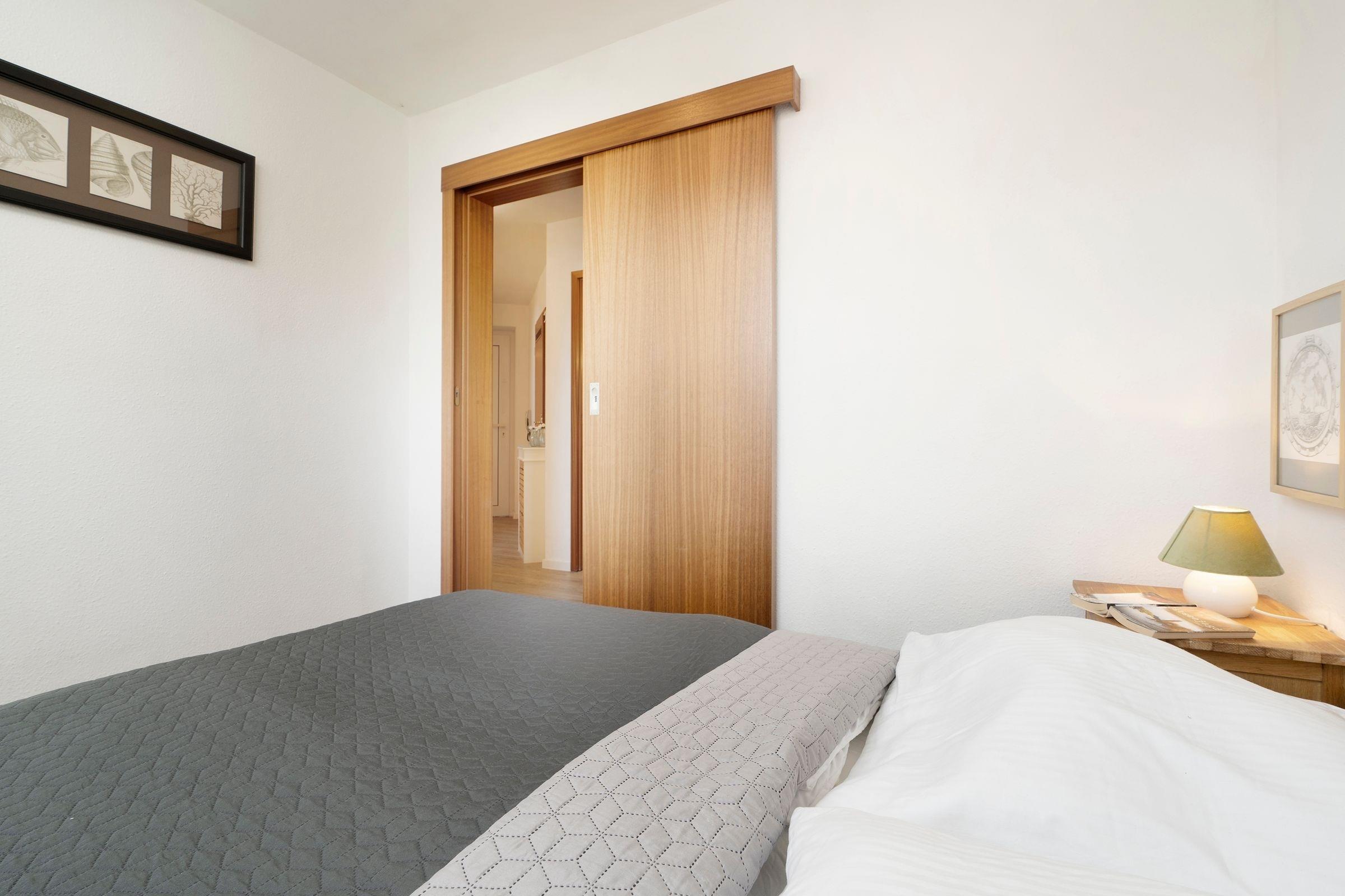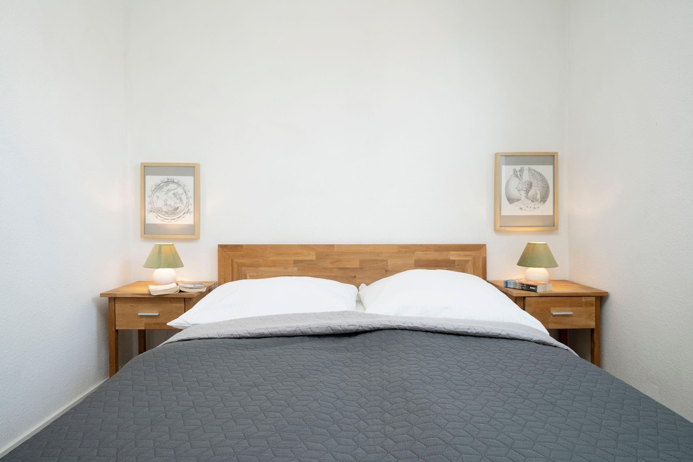 Diese charmante Ferienwohnung bietet Ihnen den perfekten Rückzugsort an der malerischen Ostseeküste. Treten Sie ein in das gemütliche Wohnzimmer, das mit einem TV und einem Radio sowohl für Entspannung als auch Unterhaltung sorgt. Vom Wohnbereich gelangen Sie direkt auf den Balkon, der nach Südwesten ausgerichtet ist und mit Gartenmöbeln ausgestattet ist – perfekt für sonnige Nachmittage und gemütliche Abende. Angrenzend befindet sich die offene Küche, die Ihnen mit einem Backofen, einer Kaffeemaschine, einem Toaster und einem Kühlschrank alle notwendigen Annehmlichkeiten bietet, um kulinarische Genüsse zu zaubern. Für entspannte Mahlzeiten steht Ihnen zudem ein Esstisch zur Verfügung. Das einladende Hauptschlafzimmer verfügt über ein französisches Doppelbett (140x200 cm). Im zweiten, separaten Schlafzimmer steht Ihnen ein ausziehbares Kojen-Bett (2x 80x200 cm) zur Verfügung. Einen angenehmen Start in den Tag verspricht das Badezimmer mit Dusche.