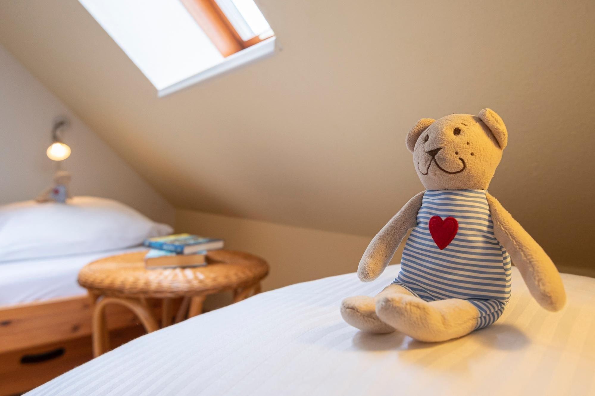 Für unsere kleinen Gäste stehen ein Hochstuhl, ein Reisebettchen sowie ein Bollerwagen bereit.