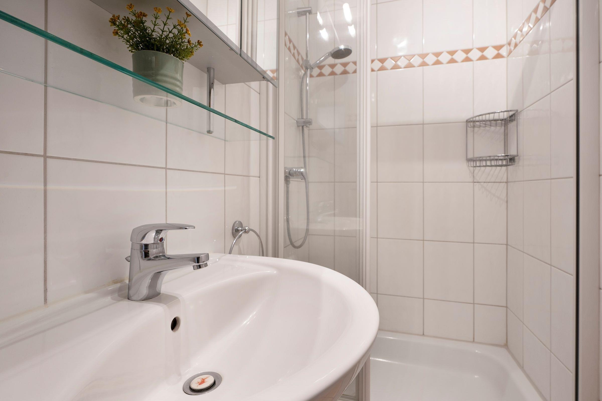 Im gemütlichen Wohnzimmer mit offener Küche werden Sie erholsame Urlaubsstunden verleben. Die geschmackvolle Couchgarnitur lädt zu kuscheligen Abenden vor dem Flachbild-TV oder intensiven Gesprächen bei einem Glas Wein ein. Die Küche mit Geschirrspüler ist gut ausgestattet, sodass Sie sich selbst kulinarisch verwöhnen können. Ausreichend Platz zum Essen finden Sie am geräumigen Esstisch. Absolutes Highlight ist der möblierte Balkon mit phänomenalem Blick auf unsere wunderschöne Ostsee. Hier können Sie die Seele baumeln lassen und die Sonne genießen. In einem kleinen, separaten Schlafzimmer mit getrennt stehenden Betten (je 90x200 cm) können Sie sich nach einem ereignisreichen Urlaubstag entspannen. Ein hell gefliestes Duschbad rundet die Ausstattung dieser niedlichen Ferienwohnung ab.