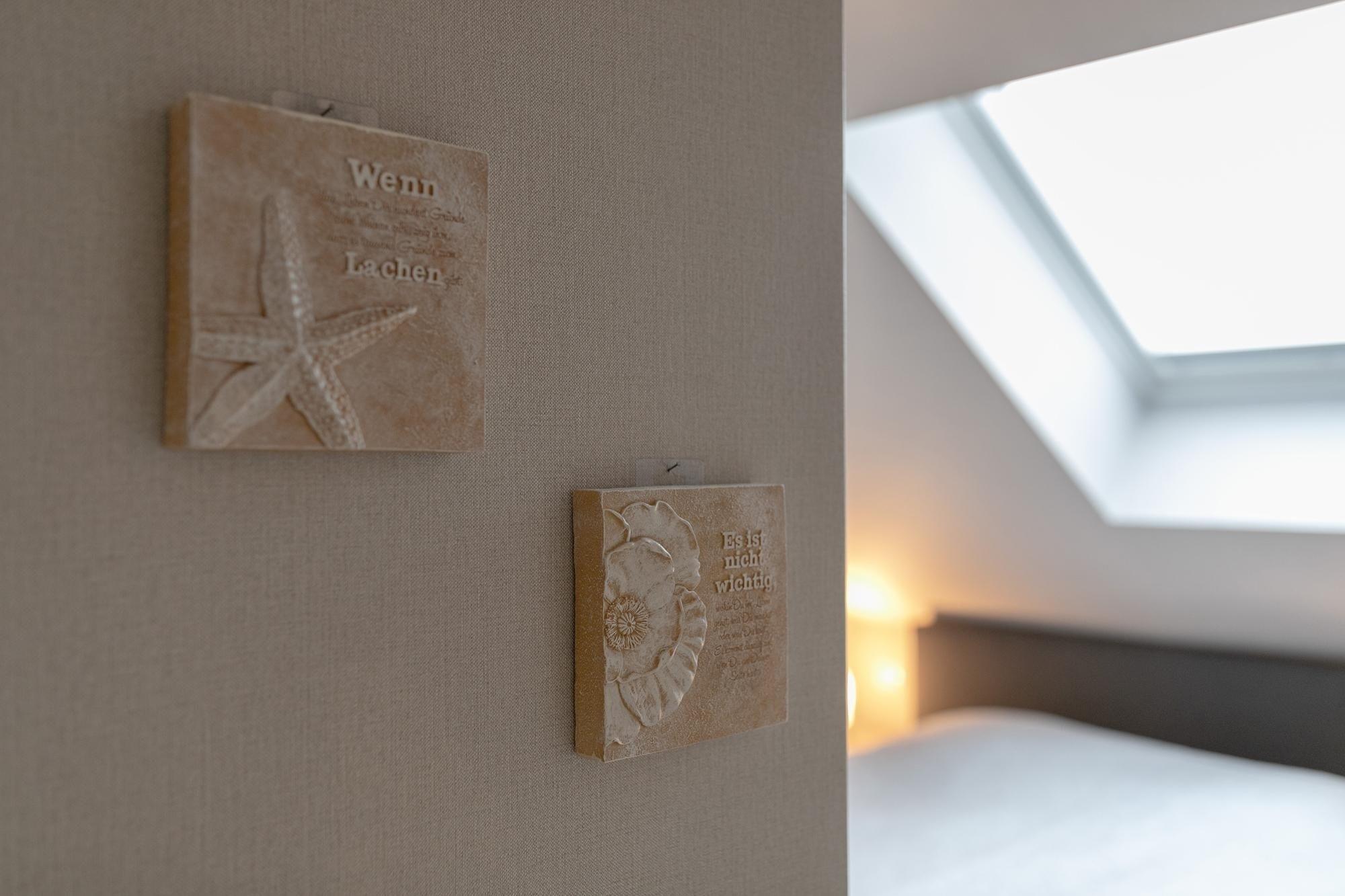 Hereinspaziert – die schicke Wohnung Esprit heißt Sie herzlich Willkommen. Die exklusive Einrichtung und die gemütlichen Dachschrägen verleihen dem Objekt eine ganz besondere Atmosphäre. Nehmen Sie sich eine Auszeit auf dem bequemen Sofa, das bei Bedarf auch als Schlafsofa (ca. 160x200 cm) genutzt werden kann. Oder genießen Sie auf der großzügigen, halb überdachten Balkon-Logia die Ostseeluft. Gemütlich eingekuschelt lässt es sich hier auch mal bei nicht so gutem Wetter prima aushalten. Das wird bestimmt Ihr neuer Lieblingsplatz. Zurück im Wohn-/Essbereich wartet eine gut ausgestattete Küchenzeile mit Induktionsherd und Geschirrspüler auf Sie. Zaubern Sie hier gemeinsam Ihre Urlaubs-Menüs und sitzen Sie anschließen bei einem Glas Wein am schicken Esstisch. Nach einem tollen Urlaubstag finden Sie die richtige Erholung in dem Boxspringbett (180x200 cm) im Schlafzimmer, wo auch ein weiteres TV-Gerät bereit steht. Das moderne Duschbad verfügt über eine Sauna, die auch an kalten Tagen Wärme und Entspannung verspricht. Ein bequemes Plus ist der Personenaufzug im Hause.