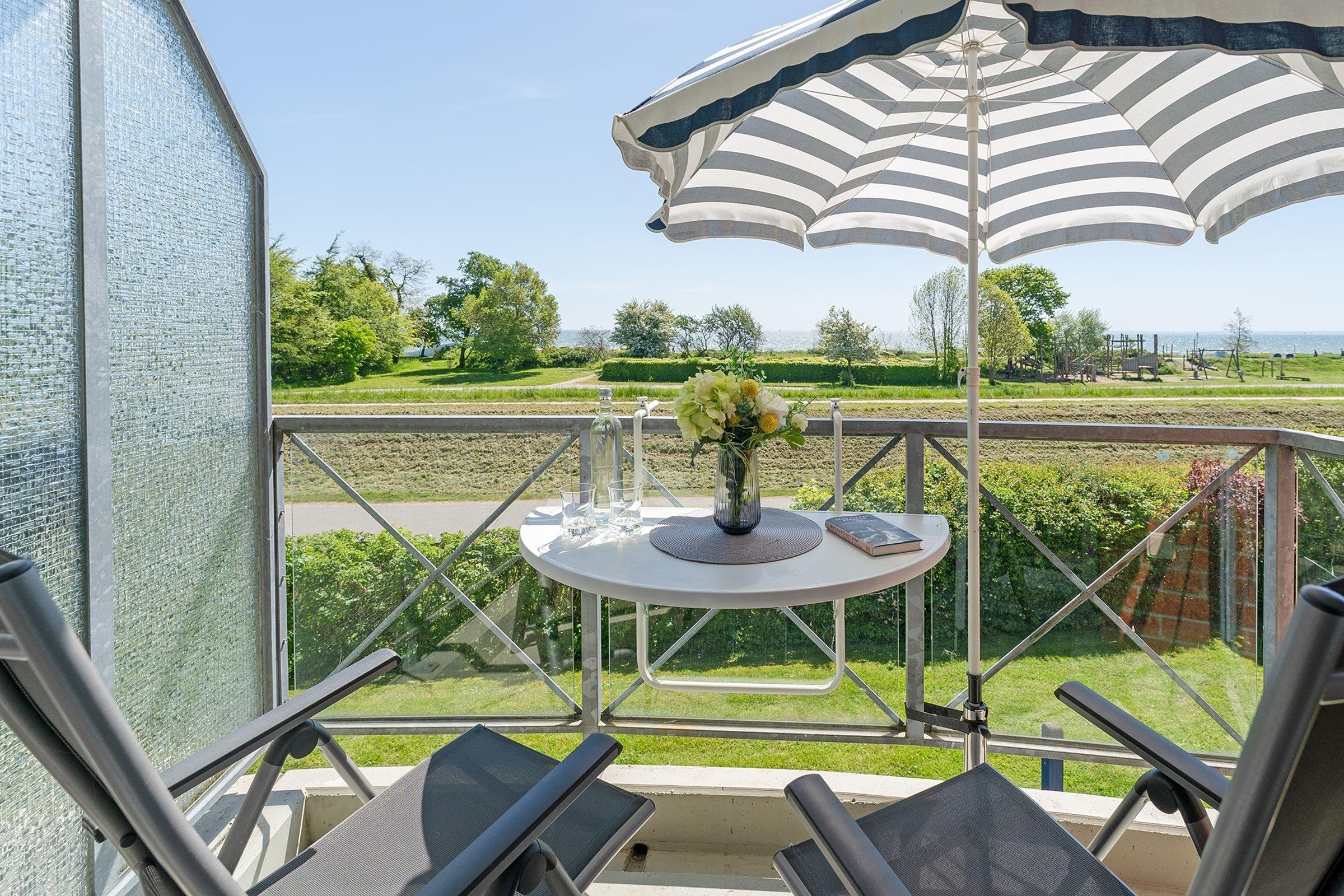 Gemütliche 2-Zimmer-Ferienwohnung mit Balkon und Meerblick in Kellenhusen, direkt an der Ostsee gelegen.