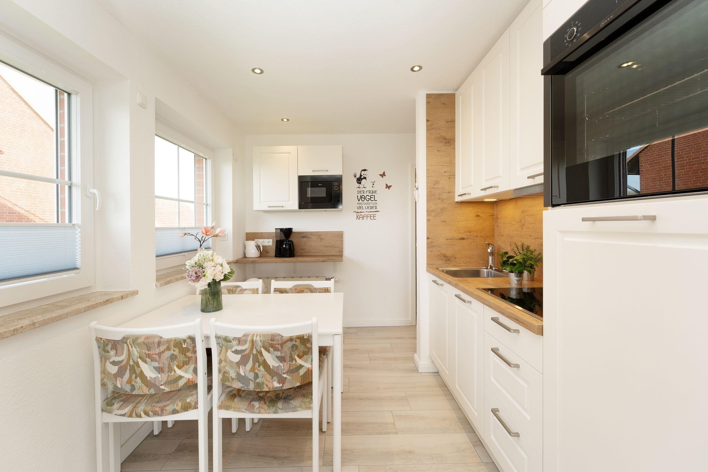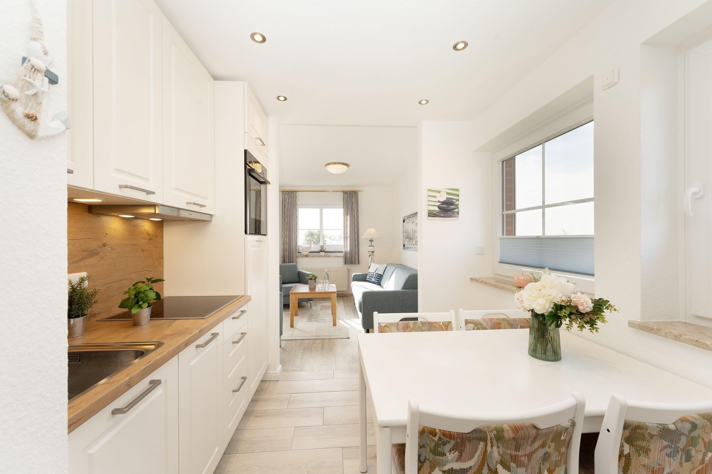 Top-Lage: Gemütliche 2-Zimmer-Ferienwohnung in der 1. Reihe zur Ostsee in Kellenhusen für bis zu 4 Personen im 1. Stock mit Balkon, einer Wohnfläche von ca. 47 m² – und Meerblick.