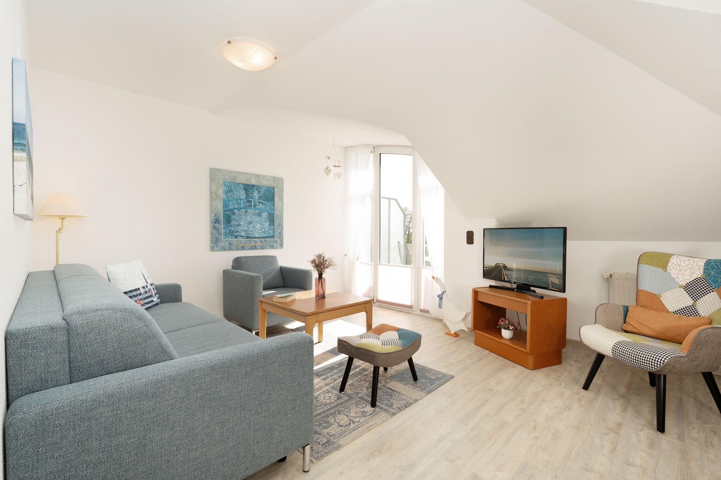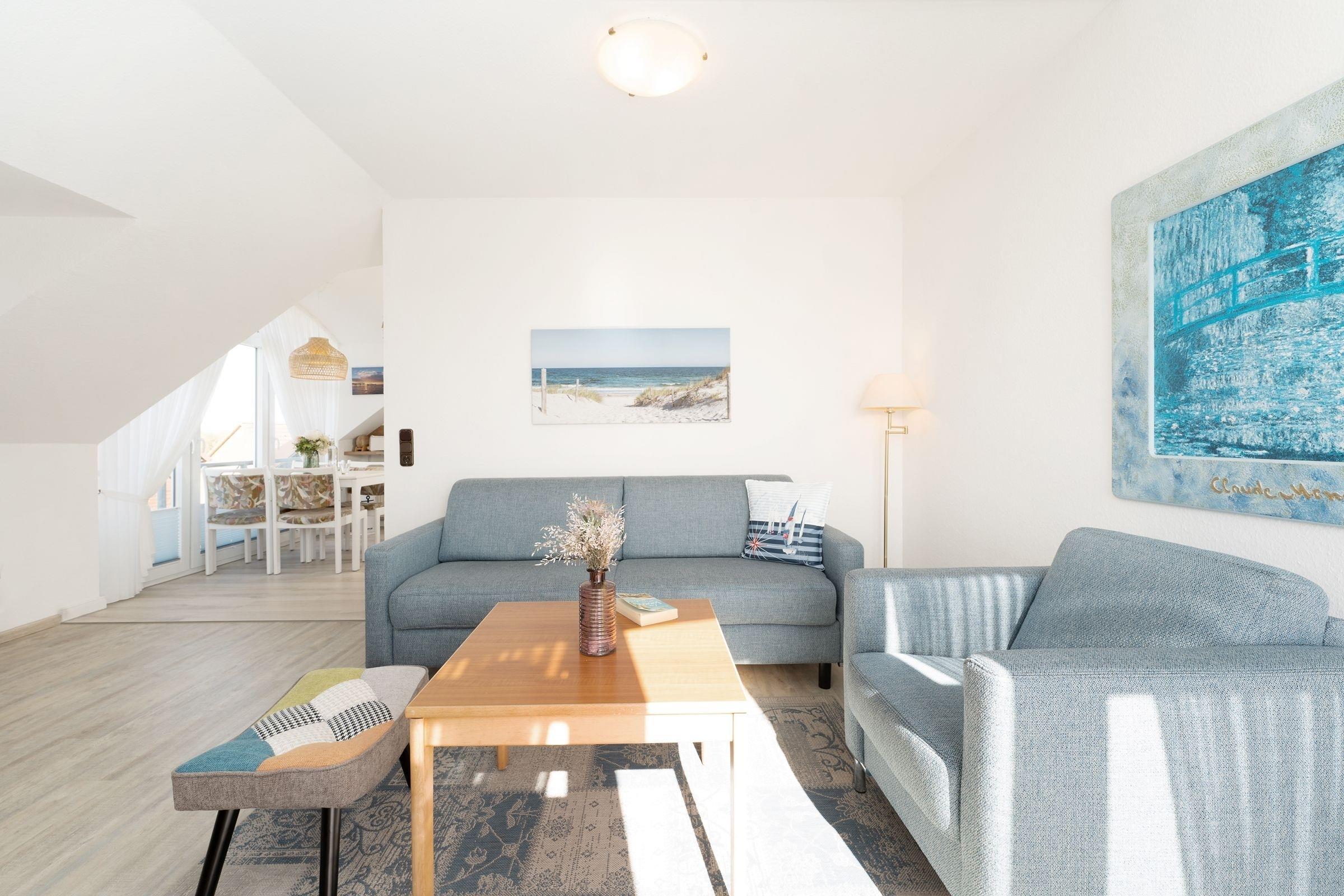Top-Lage: Gemütliche 2-Zimmer-Ferienwohnung in der 1. Reihe zur Ostsee in Kellenhusen für bis zu 4 Personen im Dachgeschoss (2. Stock) mit Balkon, einer Wohnfläche von ca. 47 m² – und Meerblick.