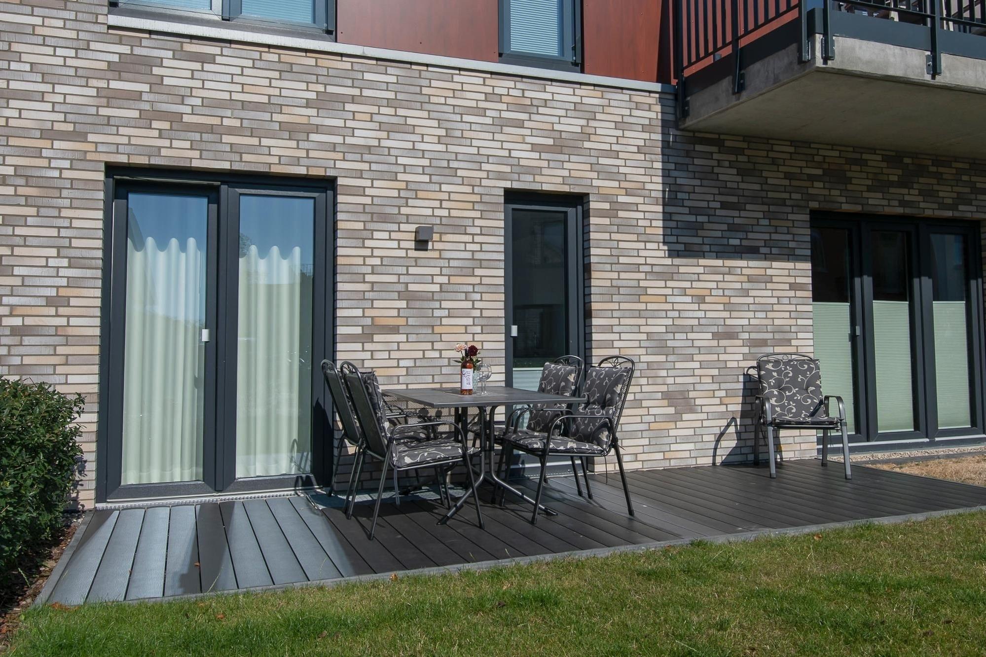 Moderne Ferienwohnung Viermaster in Kellenhusen mit Terrasse, Tiefgaragenstellplatz und Strandnähe für erholsame Urlaubstage.