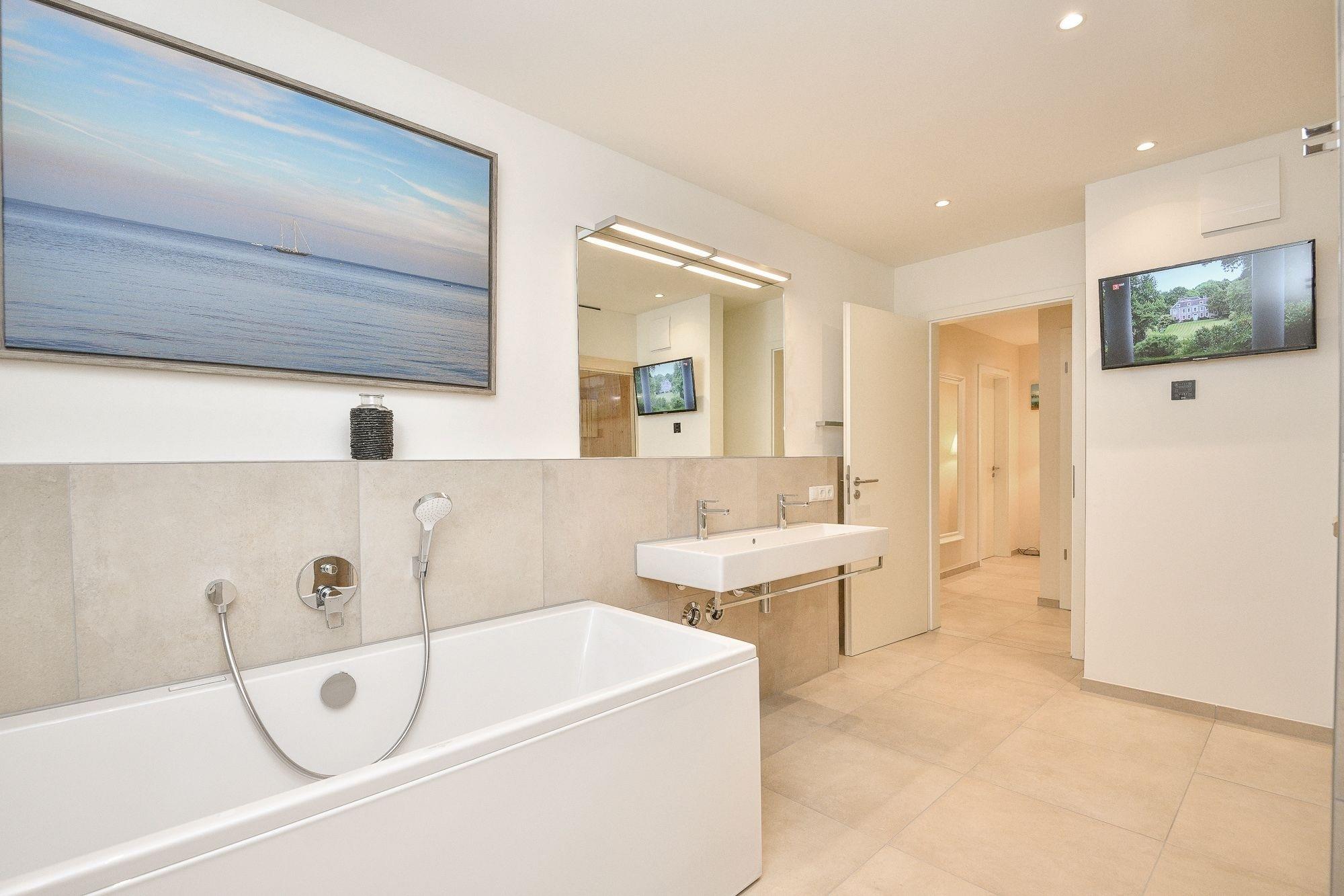 Die Wohnung befindet sich im Obergeschoss (mit Fahrstuhl) und verfügt über einen sehr großzügigen Wohn-/Essbereich (ca. 35 m²) mit einer gut ausgestatteten grifflosen Küche mit Granitarbeitsplatte (Induktionskochfeld, Geschirrspüler usw.). Der großzügige Esstisch und die hochwertige Ausstattung machen das Essen in der Wohnung zum Vergnügen. Der Bäcker befindet sich übrigens im Gebäude im Erdgeschoss! Beide Schlafzimmer sind mit hochwertigen Boxspringbetten (je 180x200 cm) und großzügiger Schrankkapazität ausgestattet. Neben dem Gäste-WC gibt es ein großes Badezimmer mit einer Whirlwanne (Villeroy & Boch), einer großen Dusche und einer verglasten Sauna. Wärme und Entspannung sind daher zu jeder Jahreszeit garantiert! Damit ein Koffer zu Hause bleiben kann, verfügt die Wohnung über eine eigene Waschmaschine und Trockner (Miele). Auch sonst ist die Wohnung technisch gut ausgestattet: 4 TV-Geräte, Blu-ray Dolby Surround-Anlage, hochwertiges Radio (inkl. Internetradio), 500 Mbit- Internetanschluss (WLAN) und dimmbare Deckenspots runden das Bild ab. Für Kinder gibt es als weitere Pluspunkte: Spielzeug, ein Reisebett, Hochstuhl usw.