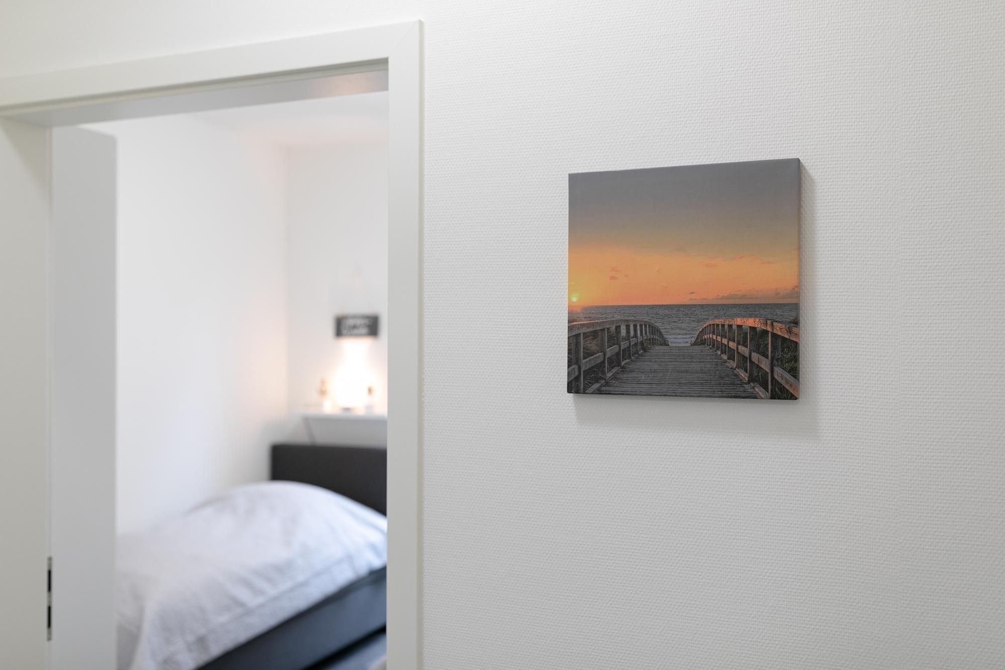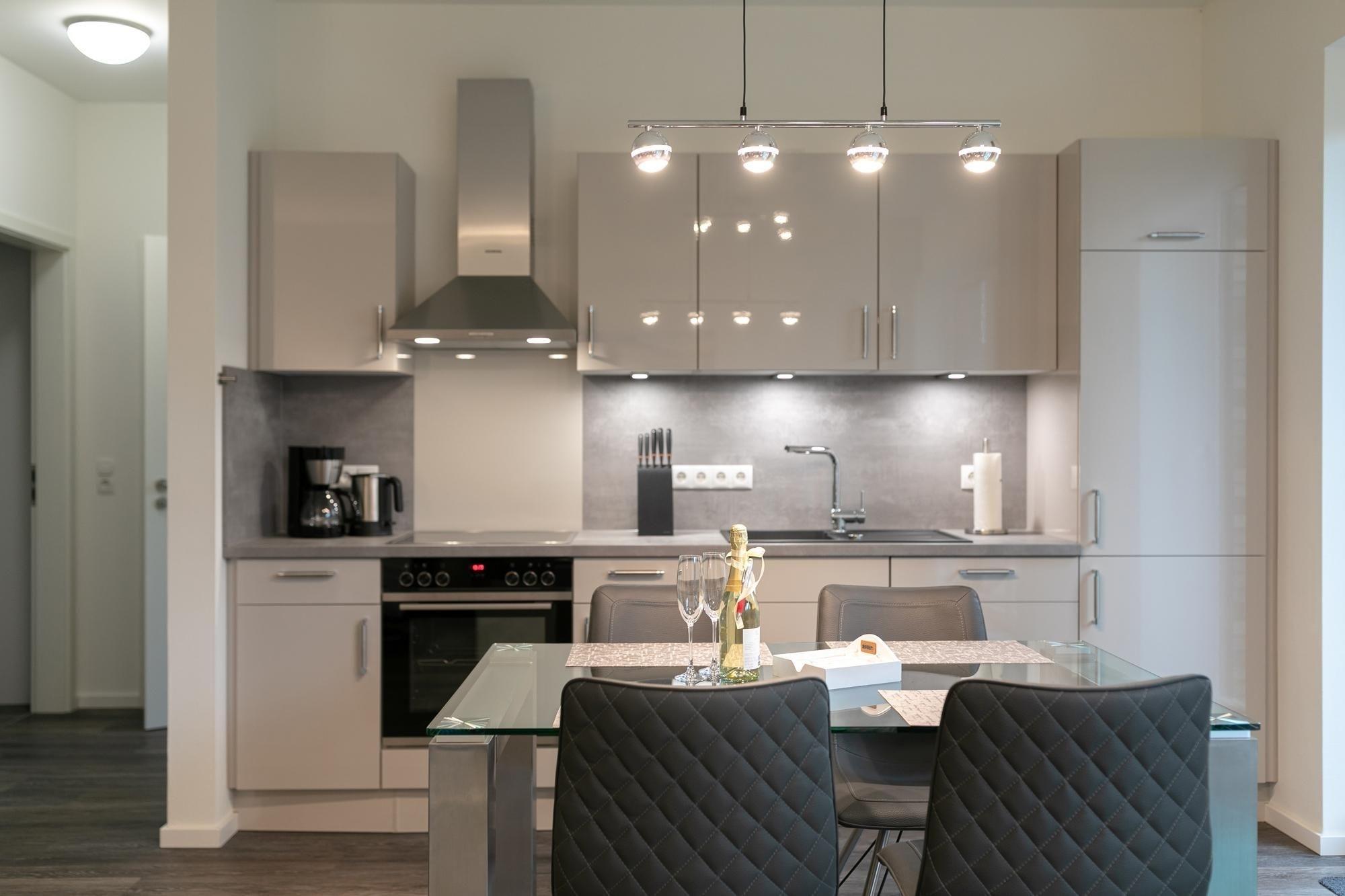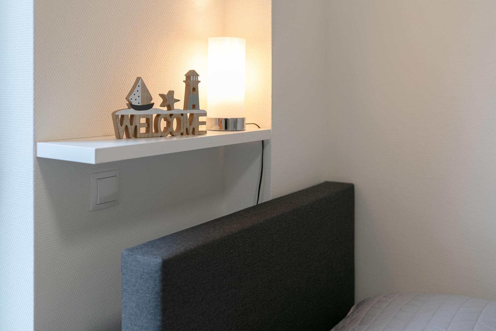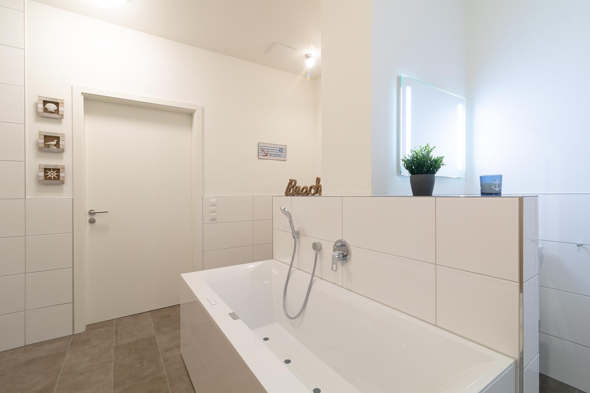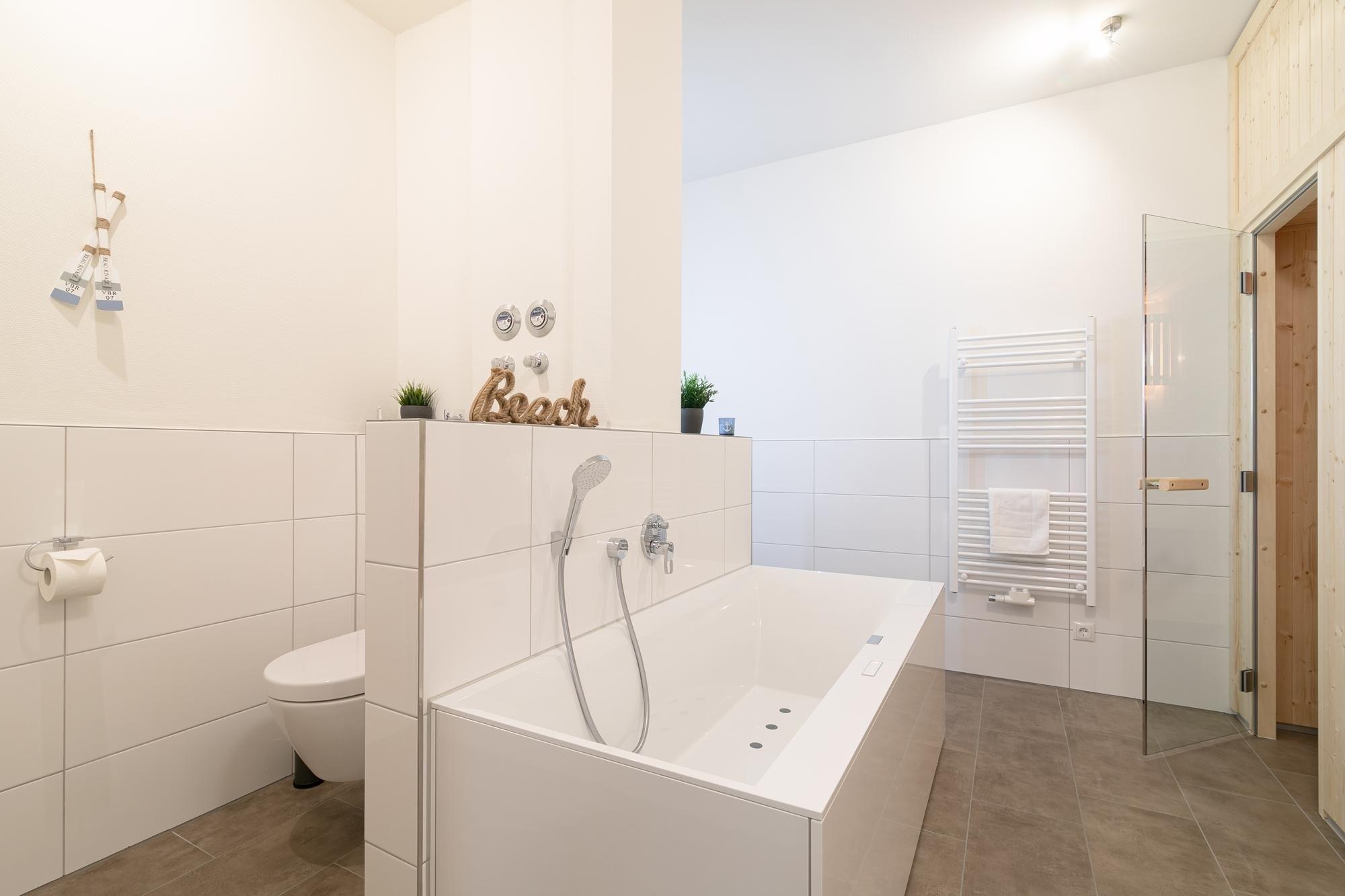 Ankommen, auspacken und sich wohlfühlen. Die moderne Wohnung Ankerplatz besticht durch ihre edle Ausstattung im maritimen Look. Hier fühlt man sich sofort wie im Urlaub. Genießen Sie den großzügigen Wohn-/Essbereich. Von der kuscheligen Sofa-Landschaft und auch von der schicken Sitzecke aus haben Sie einen Blick auf das TV-Gerät, was durchaus praktisch sein kann. Doch wenn man ehrlich ist, ist es doch draußen an der frischen Luft immer noch am schönsten: Zum gemütlichen Verweilen lädt die großzügige Terrasse ein. Lassen Sie hier den Abend bei guten Gesprächen ausklingen. Ein Grill sorgt dabei für eine kulinarische Abwechslung. Die moderne Küche mit Spülmaschine ist gut ausgestattet und im Wohnbereich integriert. Wunderbar träumen werden Sie sicher in den beiden Schlafräumen. Ein Zimmer verfügt über ein Boxspringbett (2x 90x200 cm) mit durchgängigem Topper, das zweite über 2 Einzel-Boxspringbetten (je 90x200 cm) – in beide Schlafzimmern steht jeweils ein TV-Gerät. Das großzügige Bad mit Sauna und Whirlwanne bietet auch an kälteren Tagen Wärme und Entspannung. Zusätzlich gibt es ein Gäste-WC sowie einen kleinen Abstellraum mit Waschmaschine. Ein bequemes Plus ist der Personenaufzug im Hause.