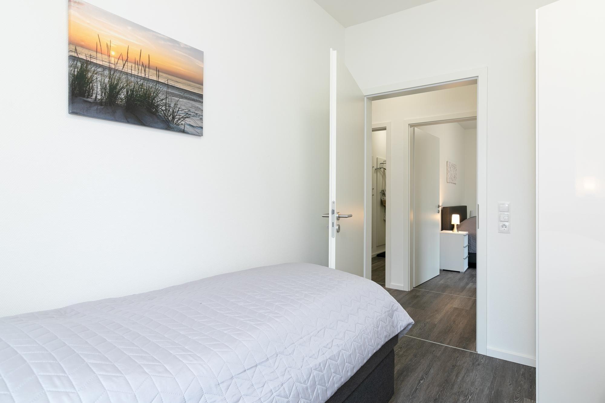 2. Schlafzimmer: 2 Einzel-Boxspringbetten (je ca. 90x200 cm), TV, Kleiderschrank