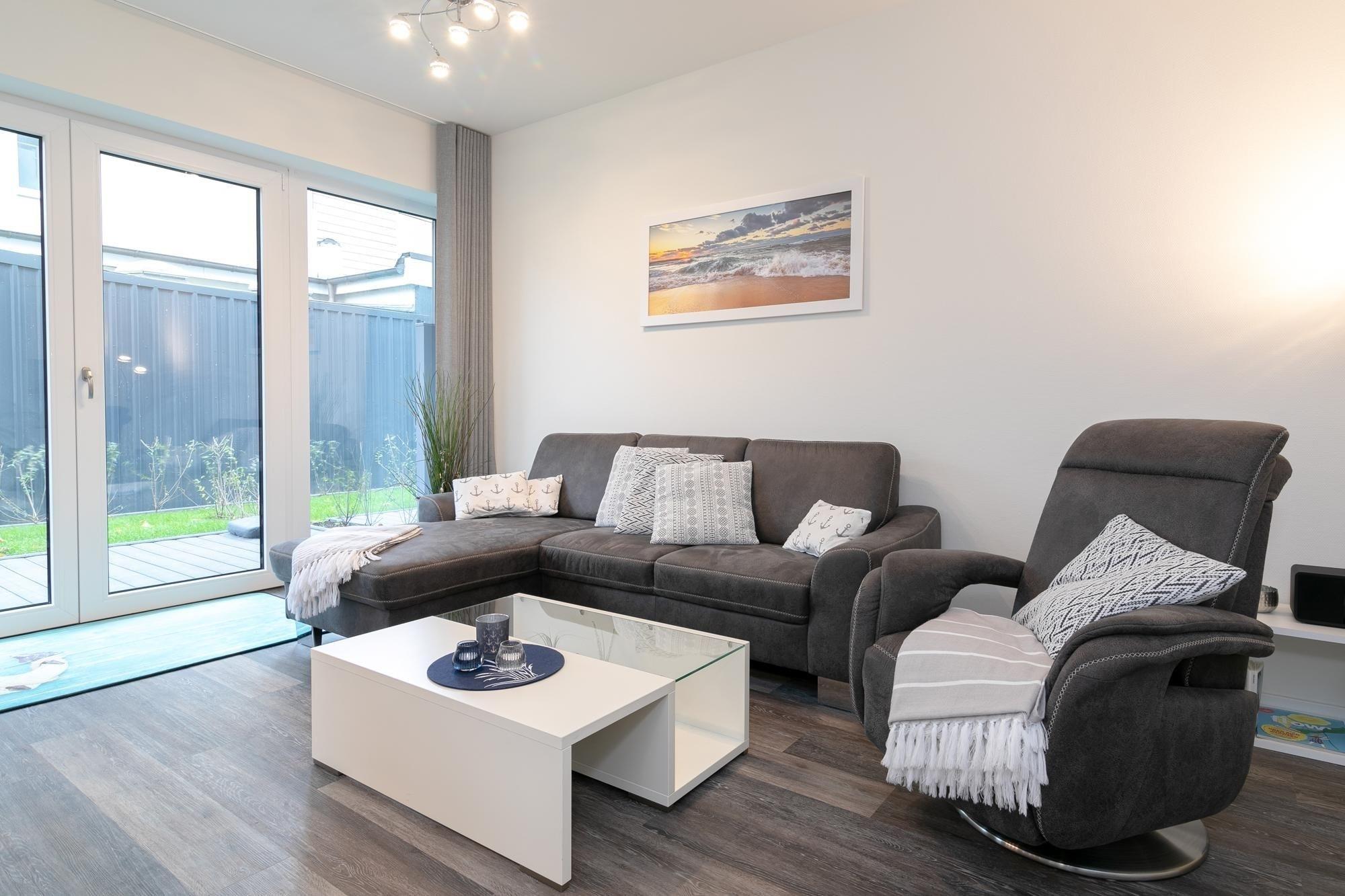 Moderne Ferienwohnung Ankerplatz mit Sauna, Terrasse und maritimem Flair in Kellenhusen, nur 500 m vom Strand entfernt.