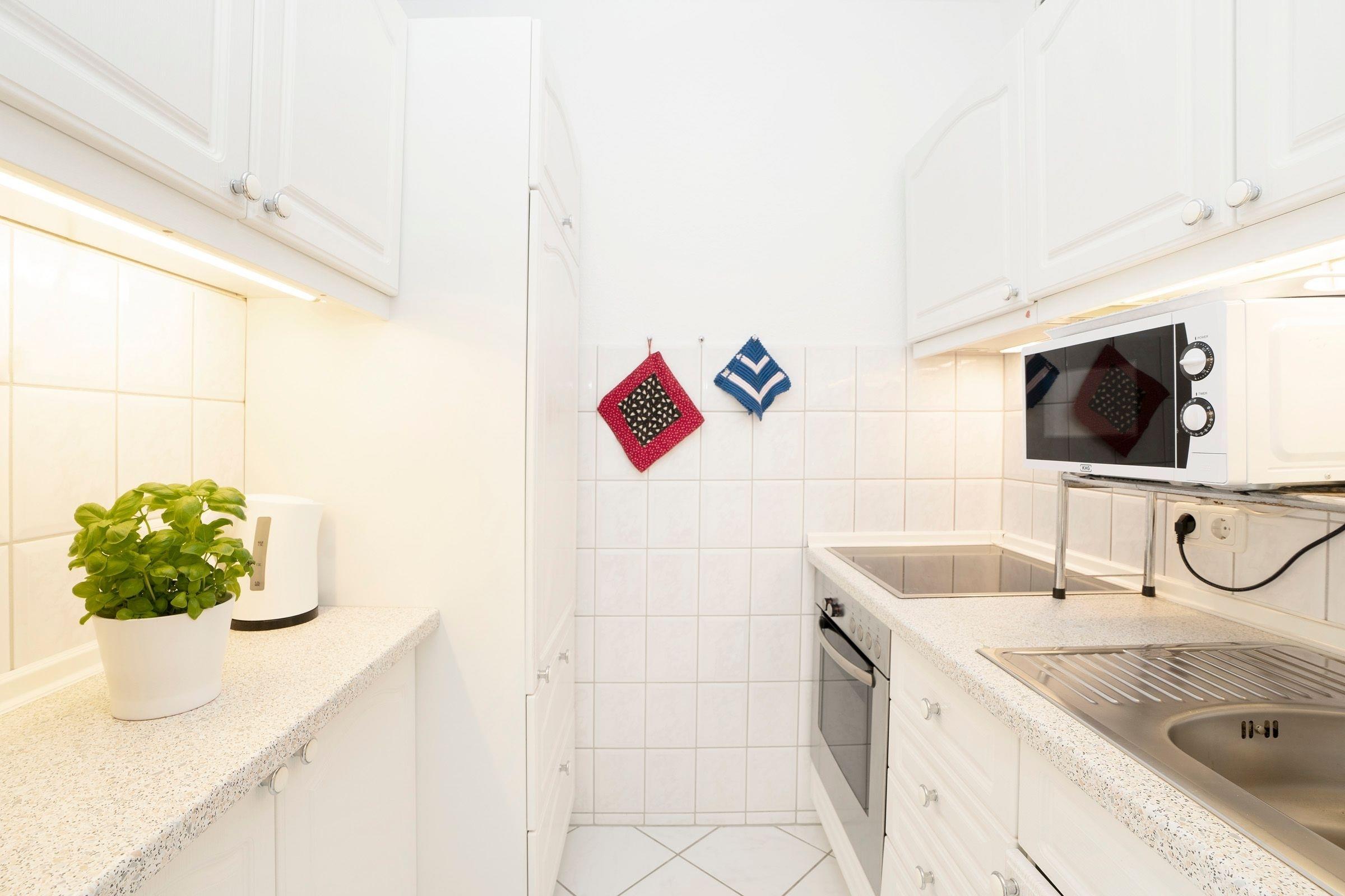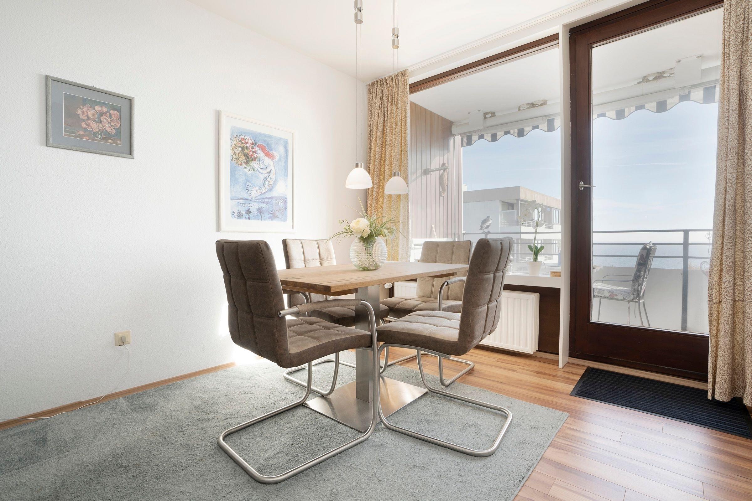 In bester Lage von Kellenhusen: strandnahe 2-Zimmer-Ferienwohnung im 7. Stock mit Balkon, Meerblick, Fahrstuhl und einer Wohnfläche von ca. 42 m² für bis zu 2 Personen.