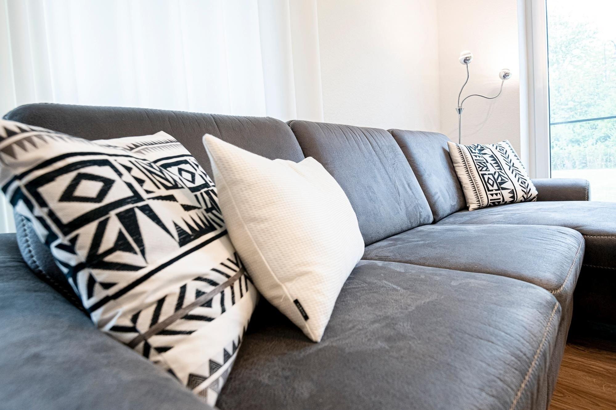 Ein Feriendomizil der Extraklasse: In der Wohnanlage Im Kirschgarten erwartet Sie diese schicke 3-Zimmer-Ferienwohnung für bis zu 3 Erwachsene und 1 Kind im Erdgeschoss mit großer Süd-Terrasse, eingezäuntem Garten und Sauna.