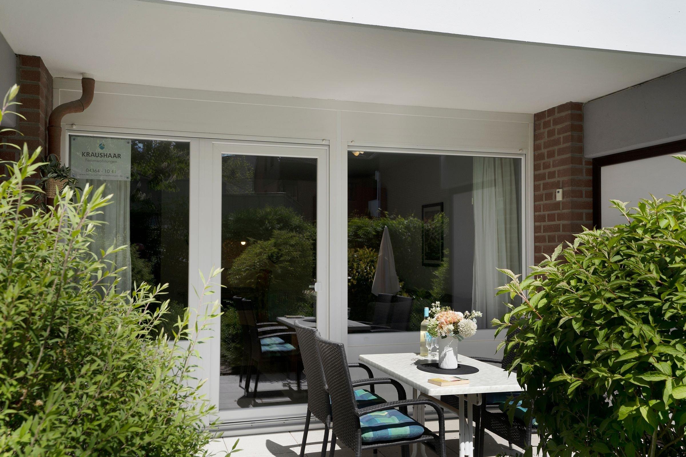 Über einen Flur gelangen Sie in den offen gestalteten Wohnraum mit integriertem Essbereich und angrenzender, voll ausgestatteter Küchenzeile. Verbringen Sie hier gesellige Spieleabende oder genießen Sie das gemeinsame Essen. Ein bequemes Sofa lädt Sie zu einem spannenden Buch oder erholsamen Stunden vor dem Fernseher ein. Zur Nacht lässt sich das Boxspring-Schlafsofa mühelos in einen weiteren sehr komfortablen Schlafplatz verwandeln (ca. 140x200 cm). Die beiden geräumigen Kleiderschränke im Wohnzimmer und Flur bieten ausreichend Platz für Ihre mitgebrachte Urlaubsgarderobe. Über einen kostenlosen WLAN-Anschluss können Sie Ihre Liebsten Zuhause mit aktuellen Urlaubsfotos versorgen. Vom Wohnbereich gelangen Sie auf die schöne, möblierte Terrasse, auf der Sie bei einem Glas Wein den Tag ausklingen lassen, oder bei einer Tasse heißen Kaffee aus der Tassimo Pad Maschine in den Tag starten können. Tanken Sie im separaten Schlafzimmer mit kleinem Balkon Energie für den nächsten Urlaubstag. In dem komfortablen Doppelbett (2x 90x200 cm) verbringen Sie geruhsame und schlafreiche Nächte. Das Badezimmer mit Dusche, Handtuchheizung und Fön vervollständigt dieses schöne Feriendomizil. Wohn- und Schlafzimmer lassen sich mit elektrischen Außenrollläden verdunkeln.