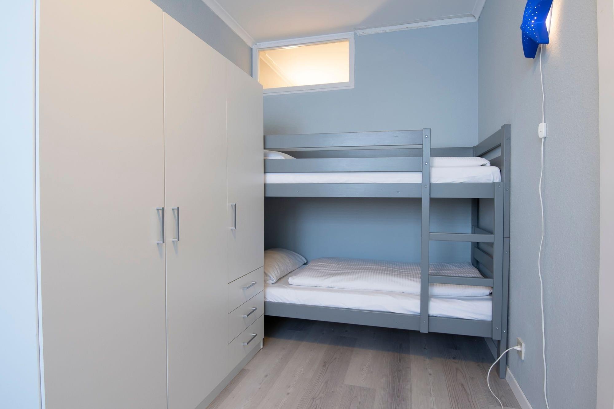 Schlafzimmer: 1 Etagenbett (2x 90x200 cm), 1 Einzelbett, Kleiderschrank