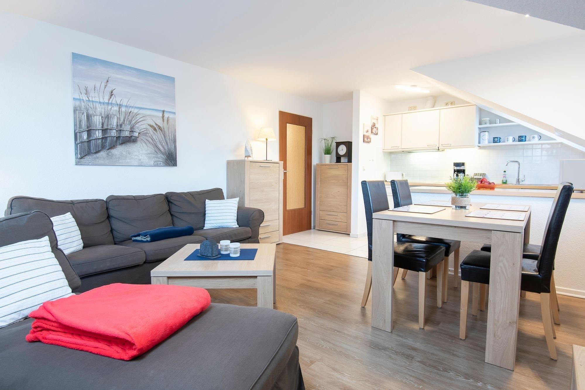 Strandnahe 3-Zimmer-Ferienwohnung in Kellenhusen für bis zu 4 Personen und 1 Kleinkind im 1. Stock mit Balkon, 2 separaten Schlafzimmern und einer Wohnfläche von ca. 63 m².