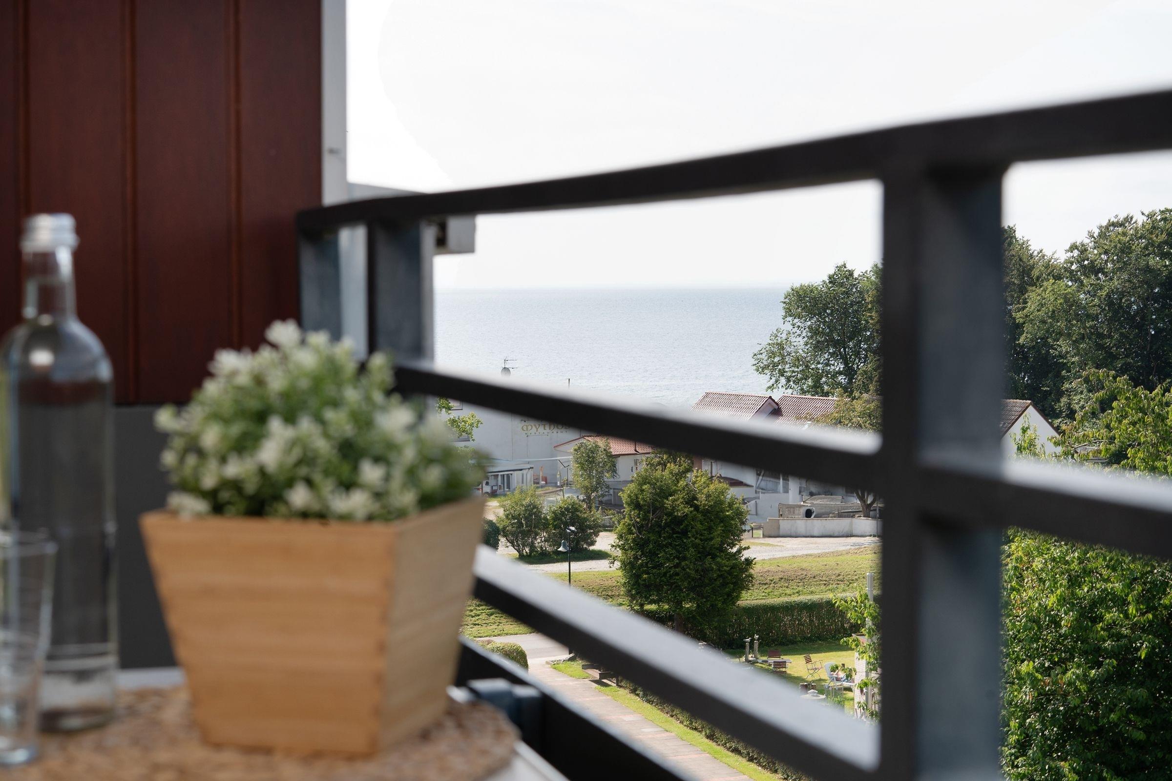Gemütliche 2-Zimmer-Ferienwohnung mit Balkon und seitlichem Ostseeblick in Kellenhusen, ideal für erholsame Strandtage.
