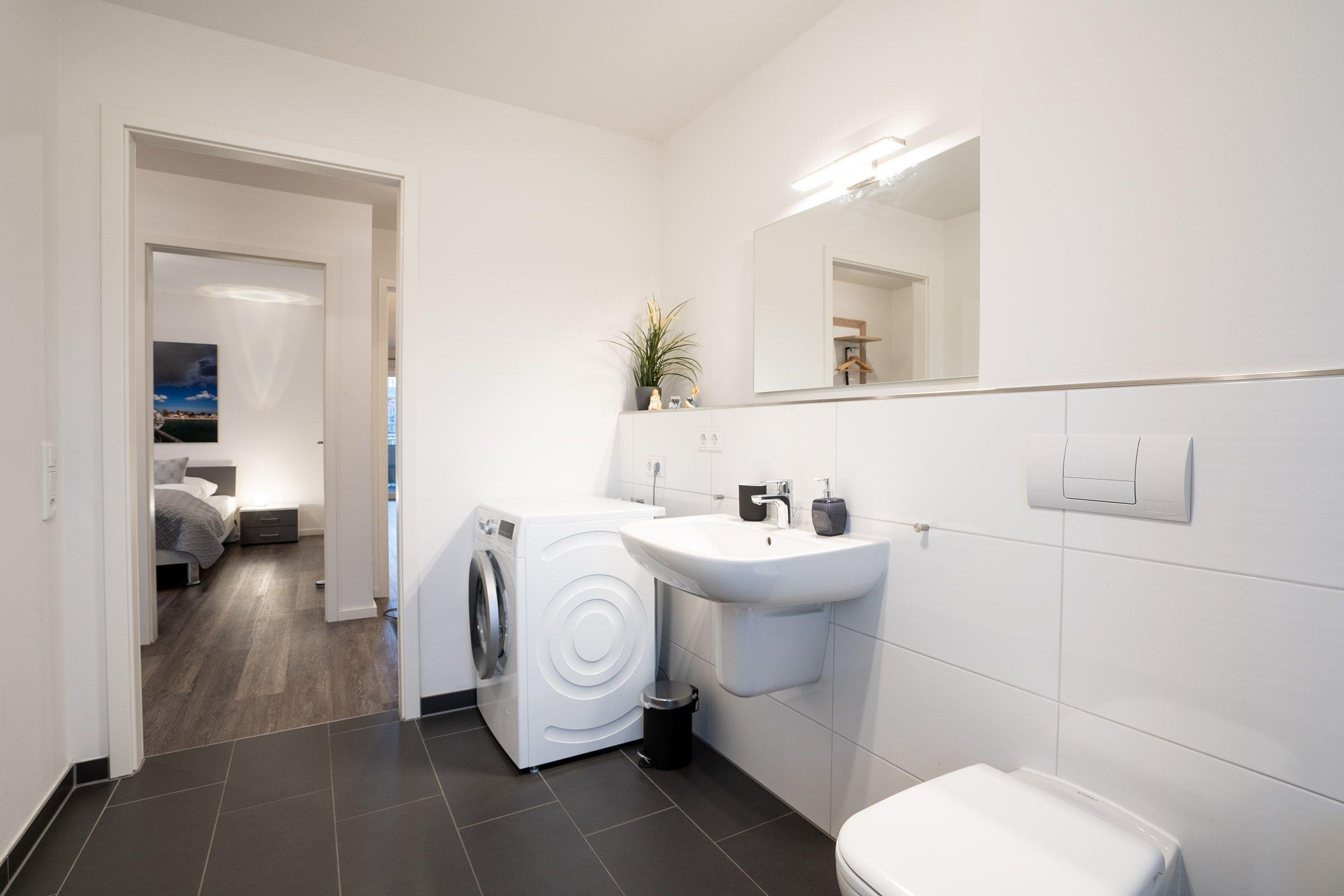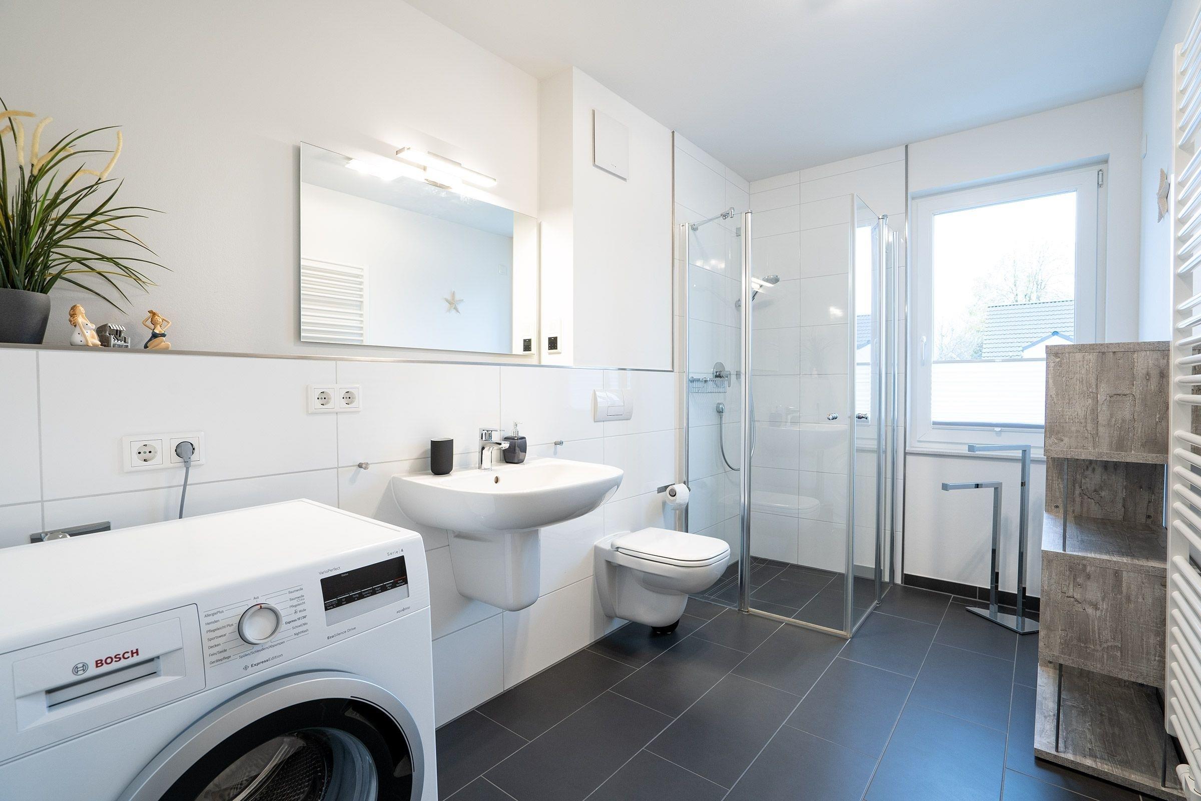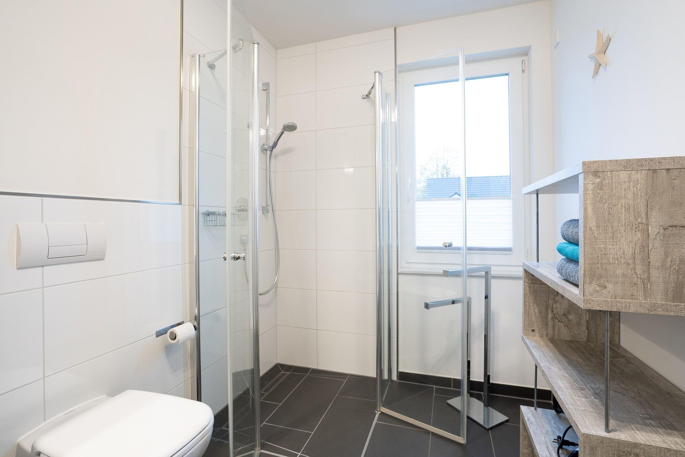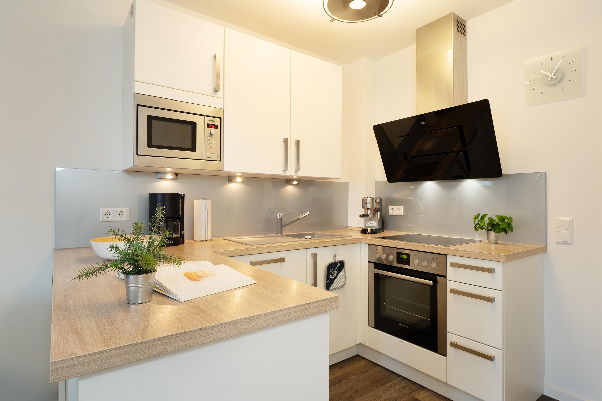 Ganz bequem mit dem Fahrstuhl können Sie Ihr Feriendomizil im 1.OG erreichen. Vom Flur aus gelangen Sie rechts in den Wohn-/Essbereich, der mit einer großzügigen Wohnlandschaft und einem Esstisch mit 4 Stühlen zu gemütlichen Fernseh- & Spieleabenden einlädt. Von hier aus gelangen Sie auch auf den überdachten Balkon und können es sich auf der Sitzgruppe richtig gemütlich machen. Die in den Wohnbereich integrierte Küche lässt keine Wünsche offen und bietet Ihnen alle Annehmlichkeiten. Das erste der beiden Schlafräume ist mit einem Doppelbett (2x 90x200 cm) und das Kinderzimmer mit 2 Einzelbetten (je 90x200 cm) und einem weiteren TV ausgestattet. Gleich nebenan befindet sich das fußbodenbeheizte Bad mit ebenerdiger Dusche und Waschmaschine. Der gesamte Innenbereich der Wohnung ist schwellenlos und eignet sich daher auch für Menschen mit Mobilitätseinschränkungen.