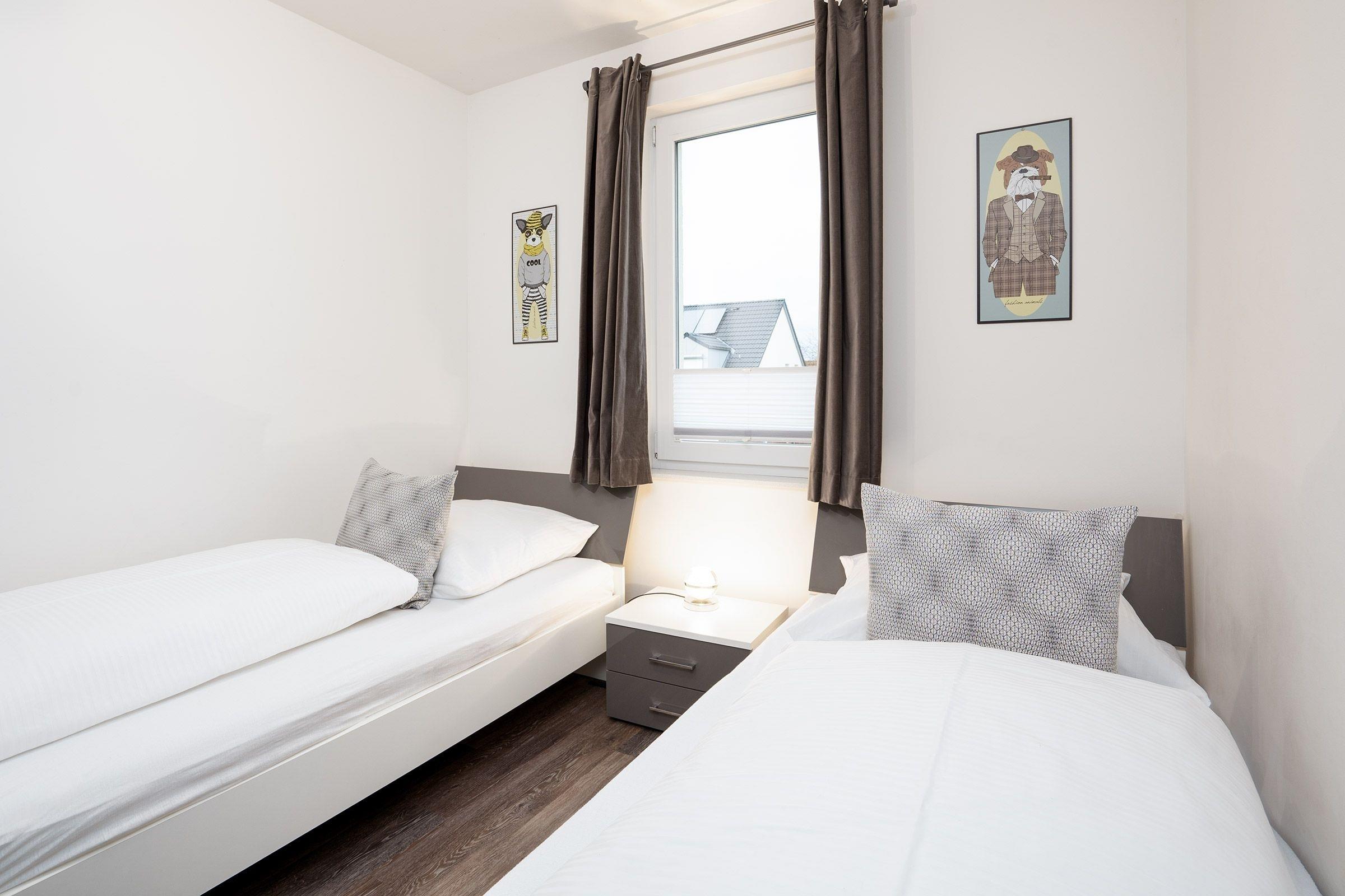 Kinderzimmer: 2 Einzelbetten (je 90x200 cm), Kleiderschrank, TV, Verdunkelungsmöglichkeit, kein Platz für Babybett vorhanden
