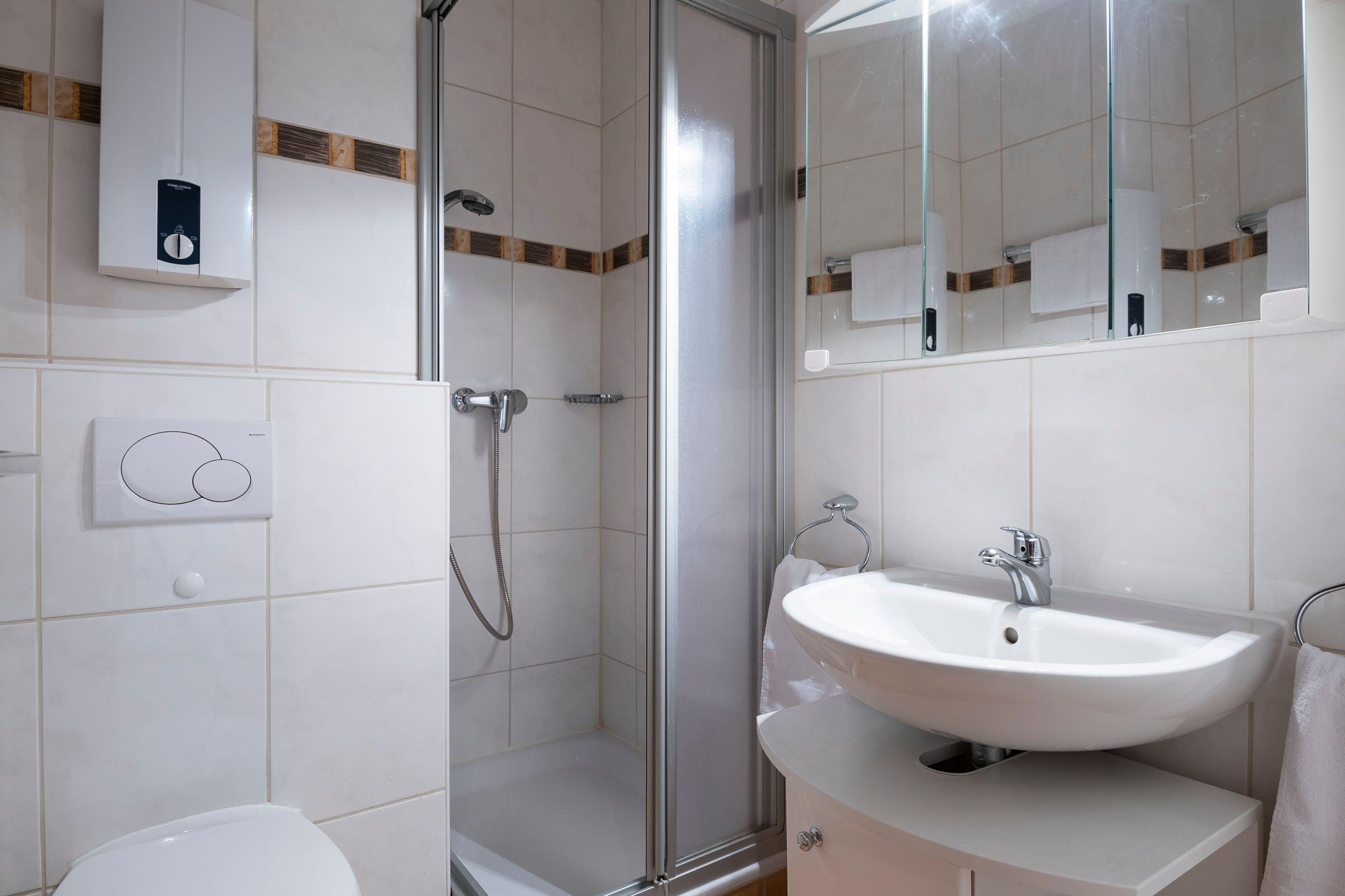 Der gemütliche Wohnbereich mit zwei Sofas, einem Flachbildfernseher sowie einem Esstisch und angrenzender, offener Küchenzeile bildet das Herzstück dieser Wohnung. Die Küche ist u. a. mit einem 2-Platten-Herd, einem Kühlschrank und einem Geschirrspüler gut ausgestattet. Das separate Schlafzimmer mit Fenster erwartet Sie mit einem komfortablen Doppelbett (2x 100x200 cm) und einem Kleiderschrank. Weiteren Stauraum bietet Ihnen der Einbauschrank im Flur. Das innenliegende Badezimmer erwartet Sie mit einem WC, einer Eckdusche sowie einem Spiegelschrank. Erholen Sie sich auf der großen, möblierten Terrasse und genießen Sie die Sonnenstrahlen. Der WLAN-Anschluss ist inklusive.