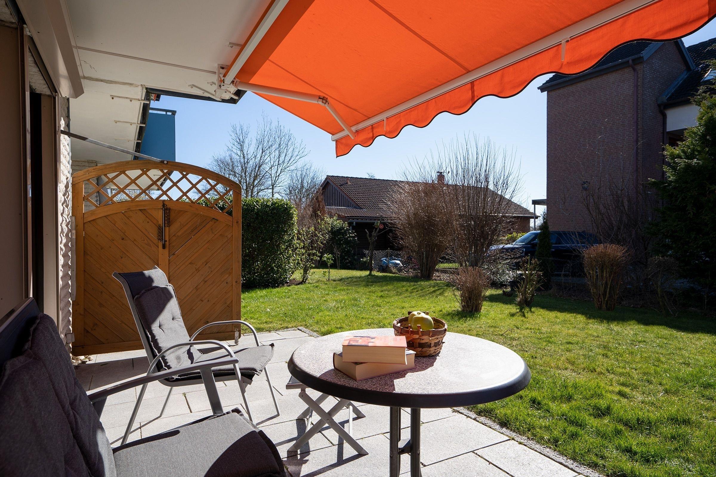 Gemütliche Ferienwohnung mit Terrasse und Gartenblick in Kellenhusen, nur wenige Schritte vom Strand entfernt.