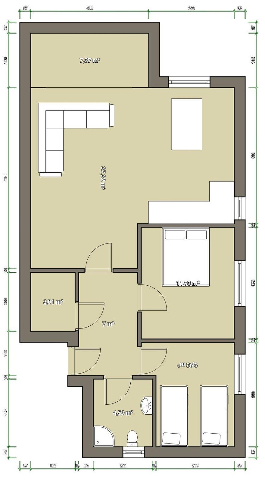 Wohnfläche 60 m²