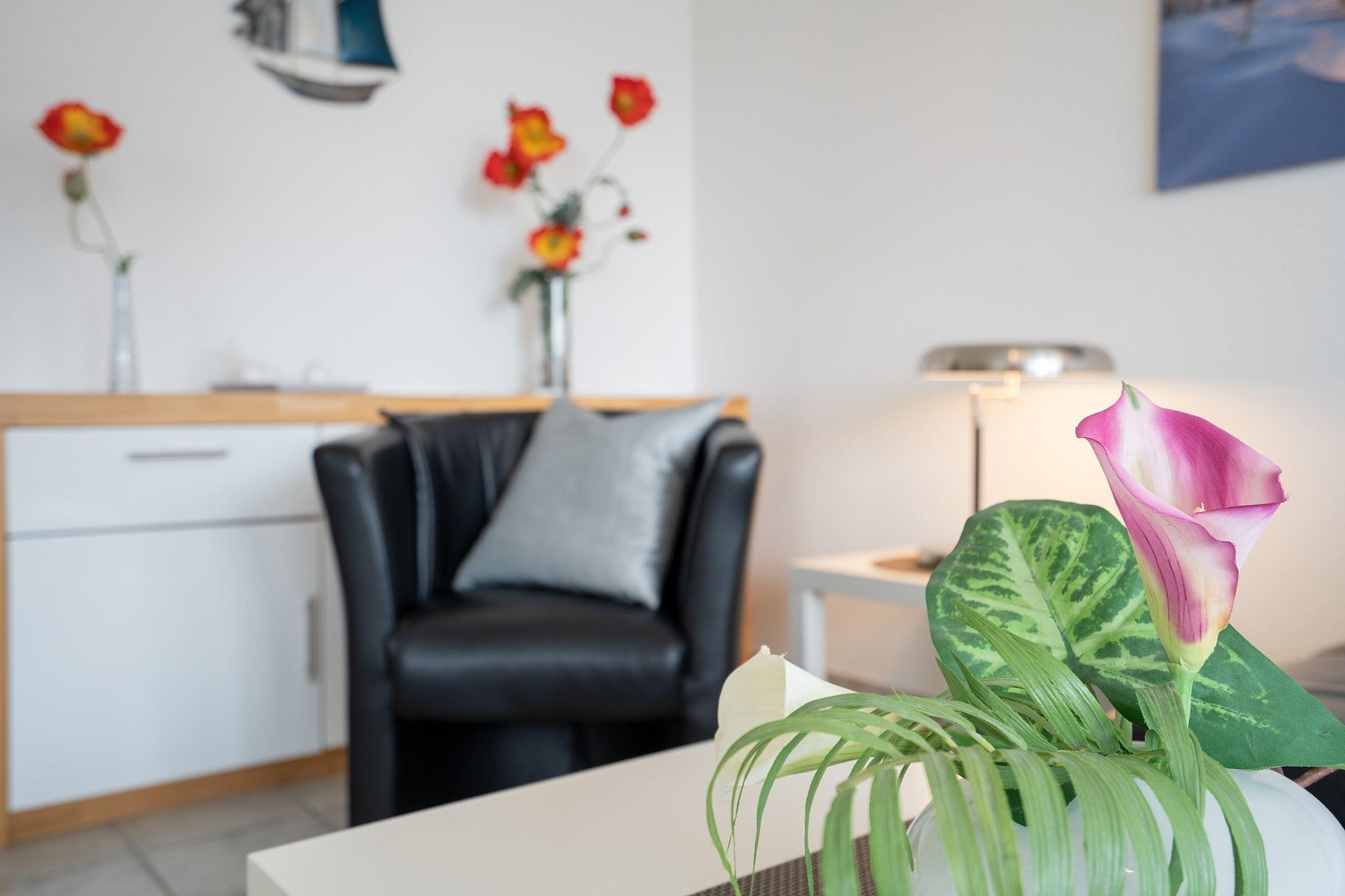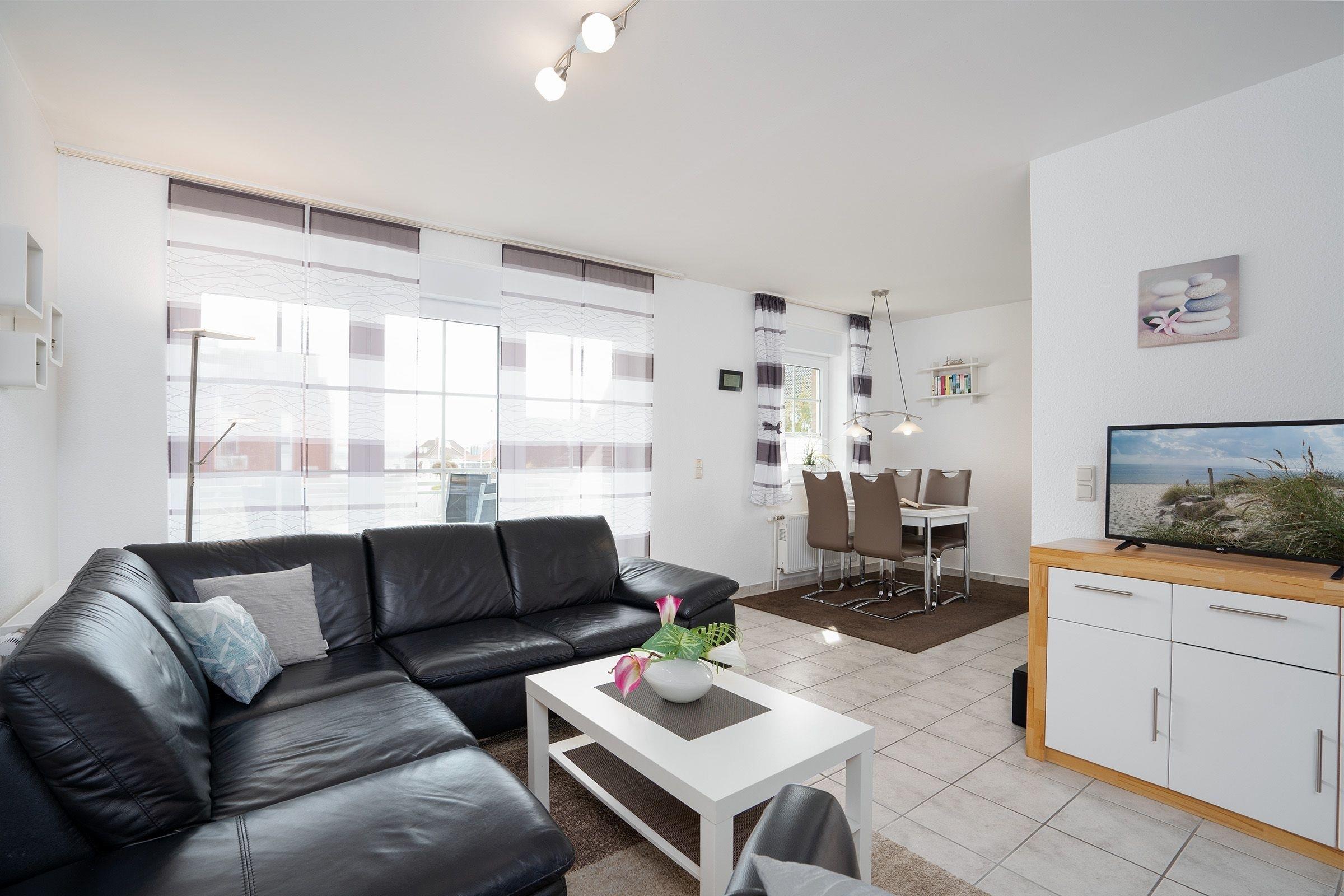 Diese 3-Zimmer-Wohnung umfasst ca. 60 m² Wohnfläche und bietet auf geschmackvolle Art und Weise ausreichend Platz für bis zu 4 Personen. Freuen Sie sich auf ein charmantes Feriendomizil mit Balkon und Meerblick.