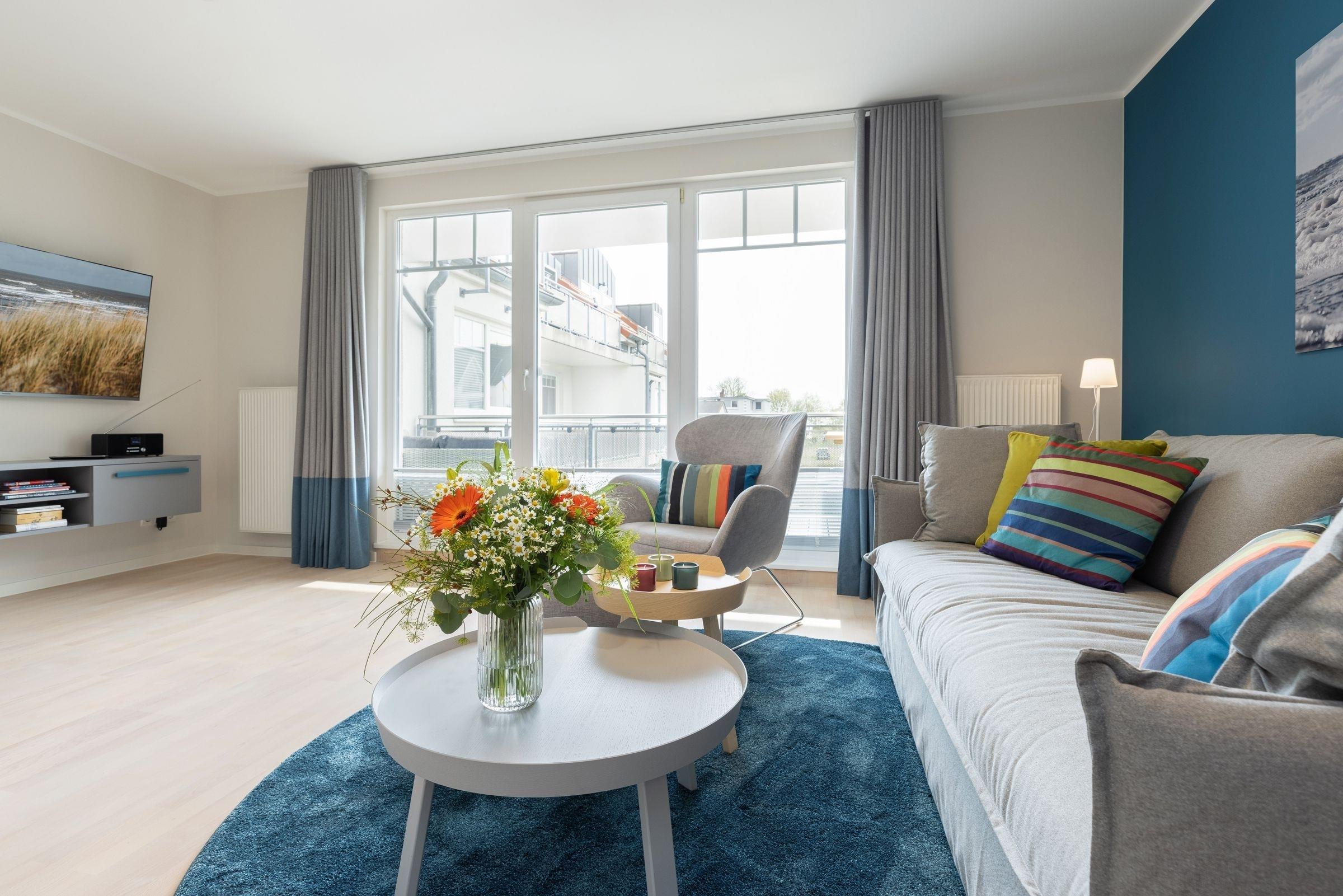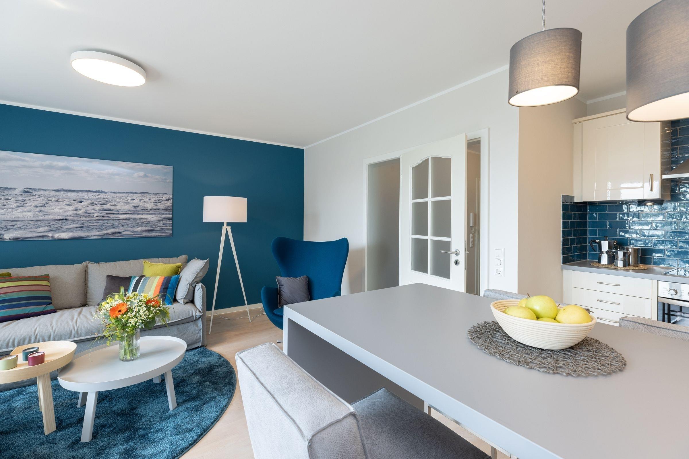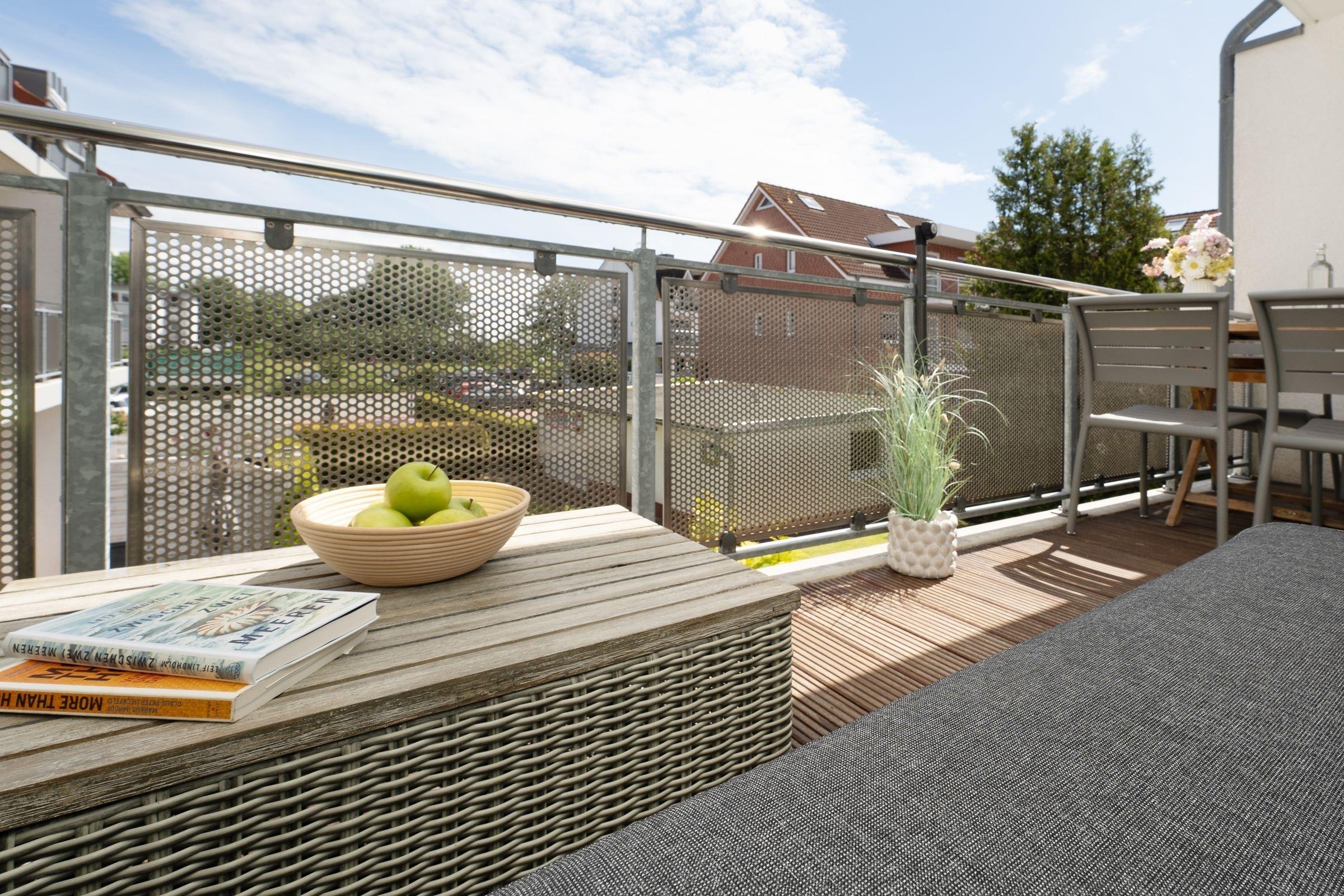 Stilvolle Ferienwohnung Meerblau mit Balkon und Ostseeblick in Kellenhusen, strandnah und modern ausgestattet.