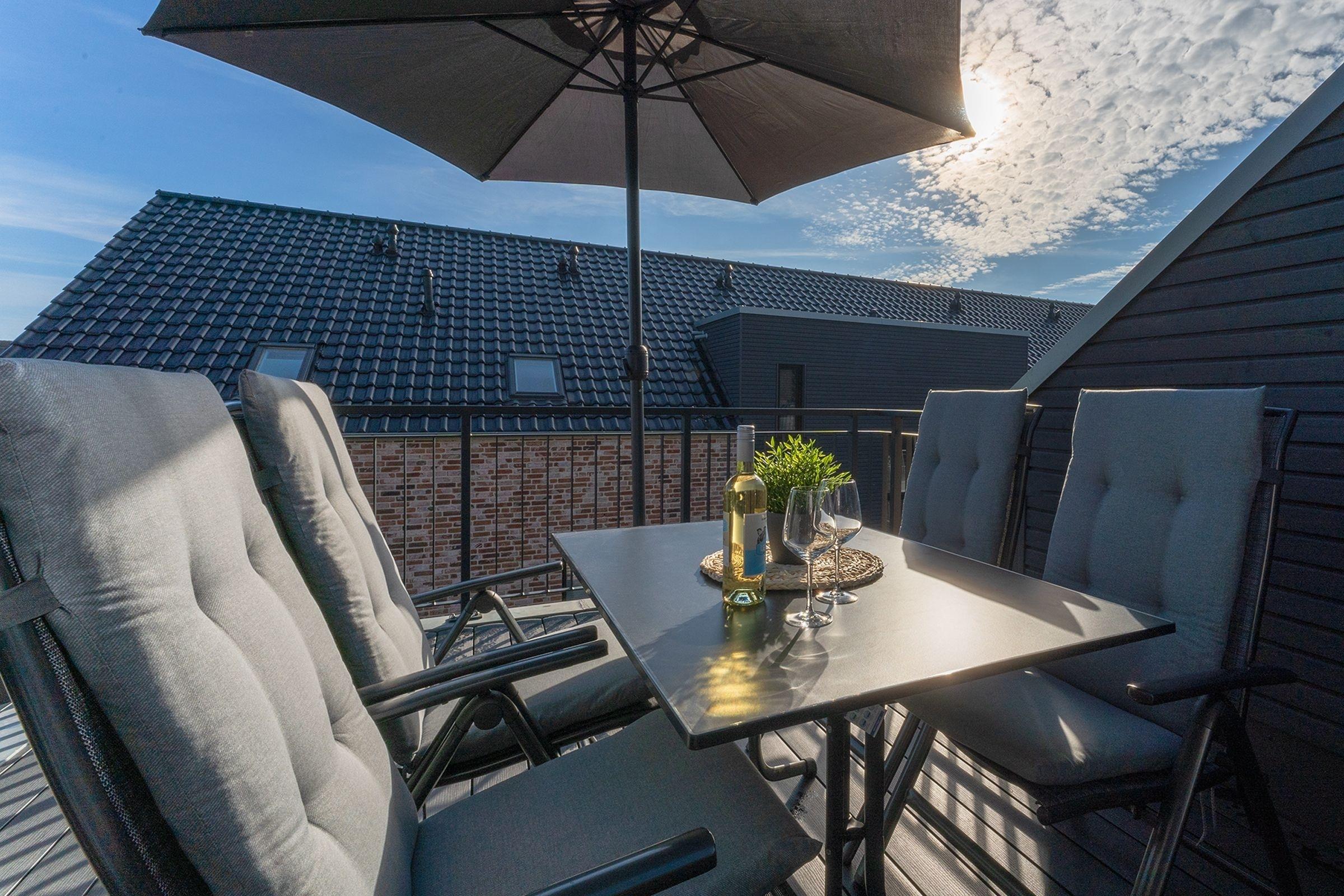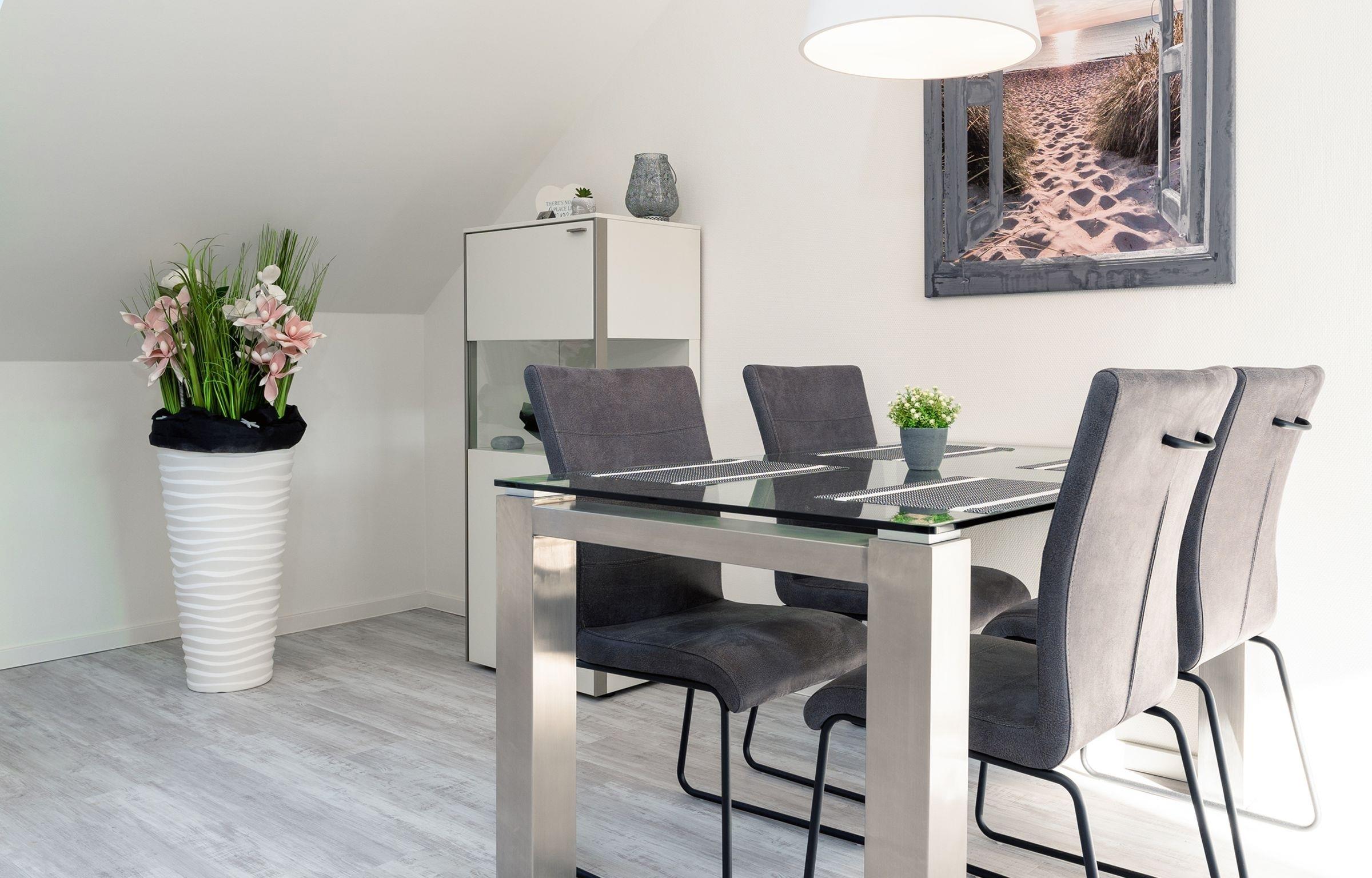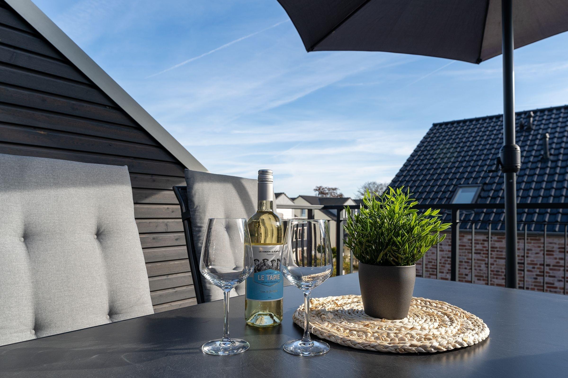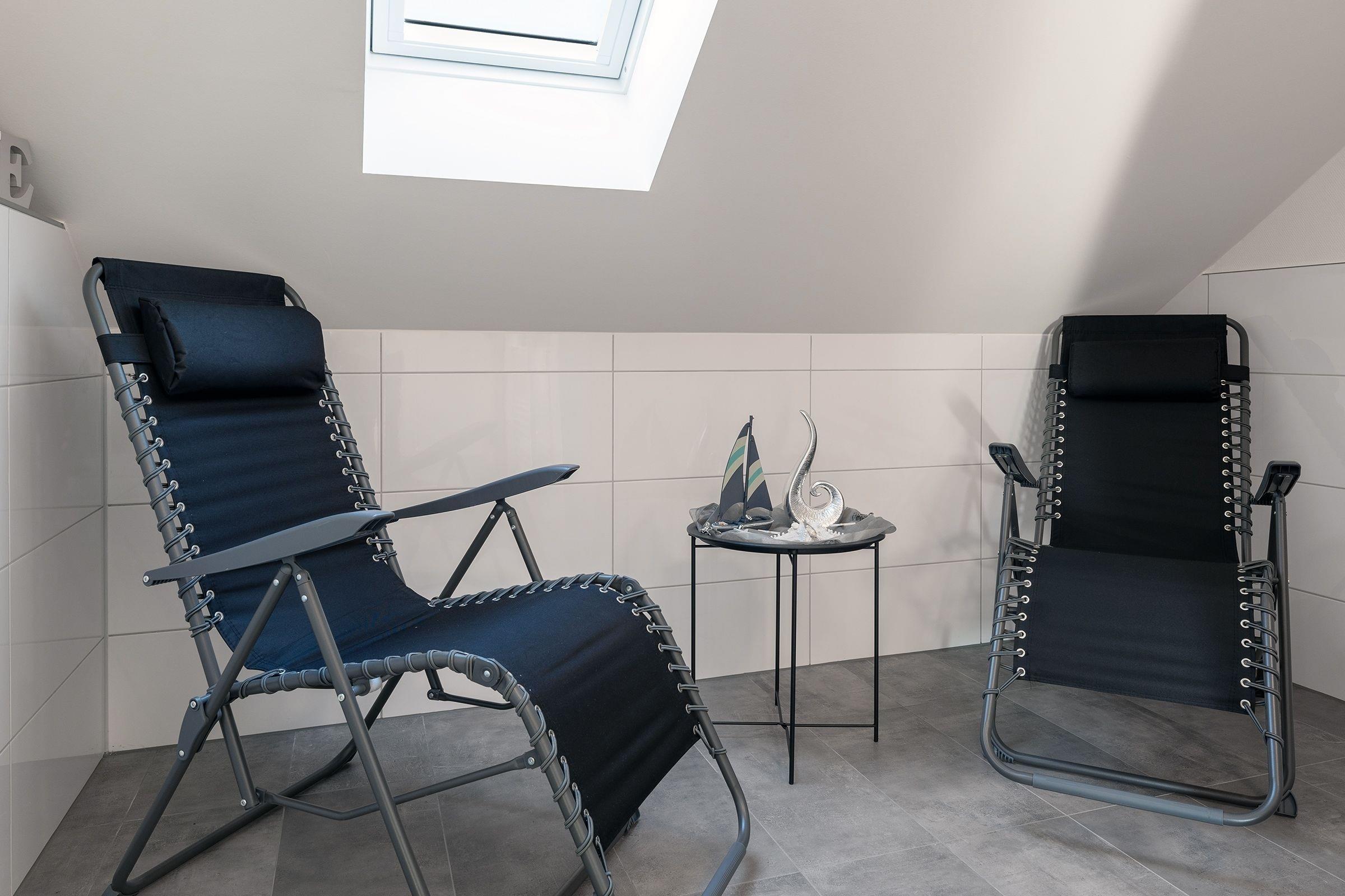 Das Herzstück dieser Wohnung bildet das Wohnzimmer mit Schlafsofa (130x200cm) und offener Küche, welche zum Verweilen und gemeinsamen Kochen einlädt. Von dort gelangen Sie auf den Balkon mit Südausrichtung, der mit Sonnenschirm und Balkonmöbeln ausgestattet ist. Für die Erholung im Urlaub gibt es ein separates Schlafzimmer, das sich mit Jalousien abdunkeln lässt, und mit eigenem TV und Boxspringbett (2x 90x200cm) überzeugt. Das Tageslichtbad verfügt über eine bodengleiche Dusche und Annehmlichkeiten wie einen Haartrockner und eine Handtuchheizung, damit es Ihnen an nichts fehlt, wenn Sie aus der eigenen Sauna kommen. Als weitere Besonderheit verfügt die gesamte Wohnung über eine angenehme Fußbodenheizung. Kostenfreies WLAN und ein Internetradio stehen hier zur Verfügung.