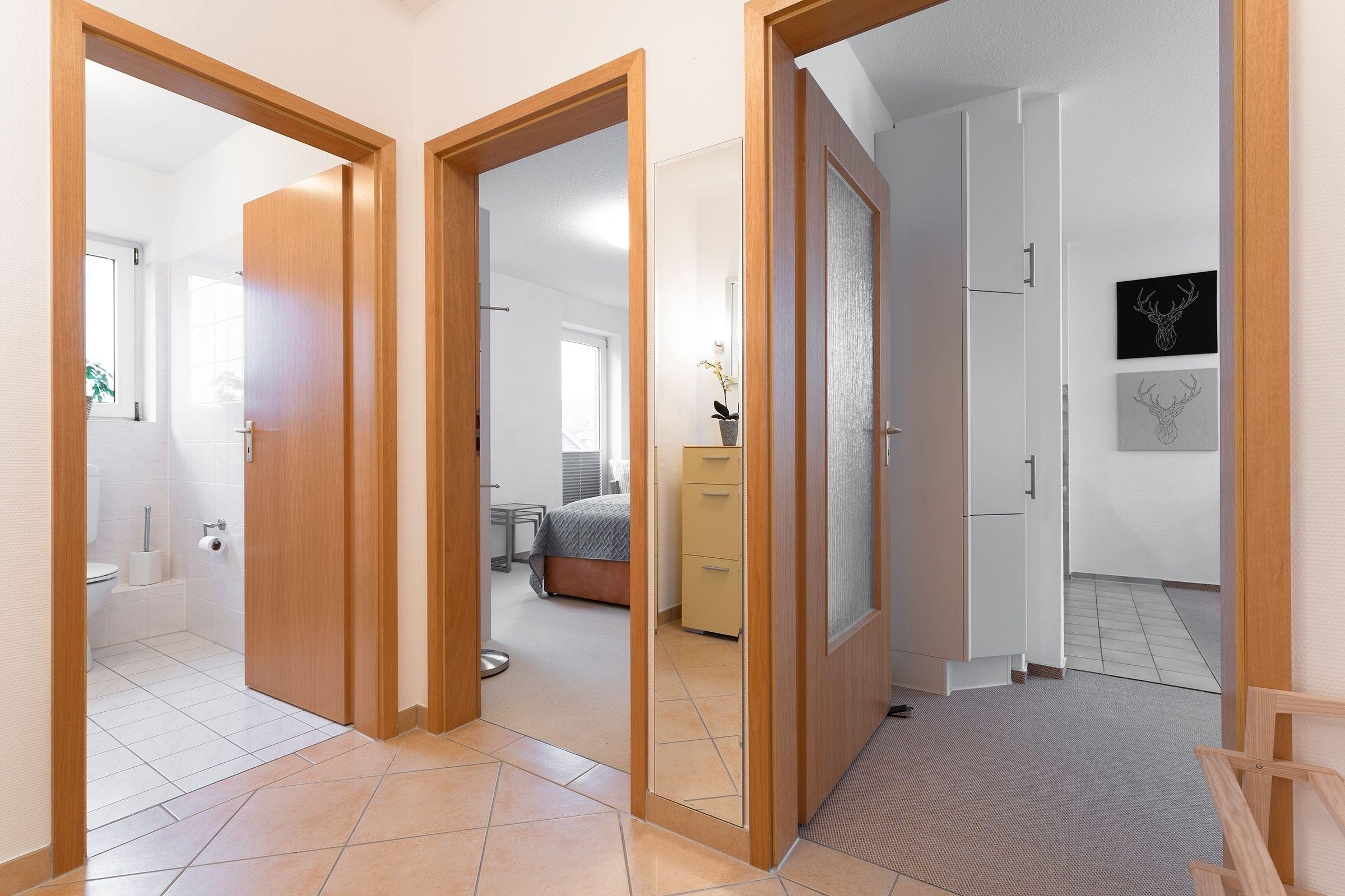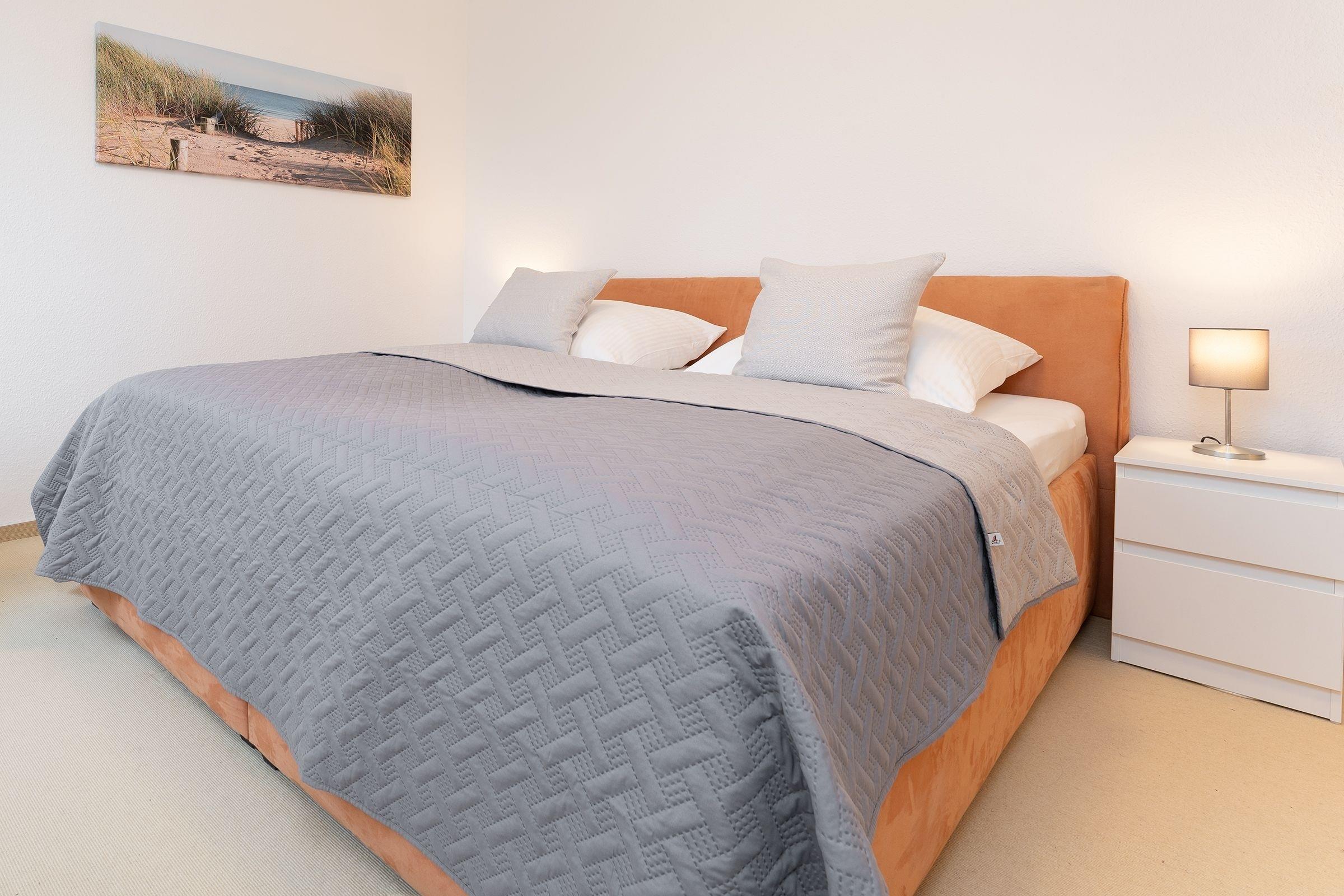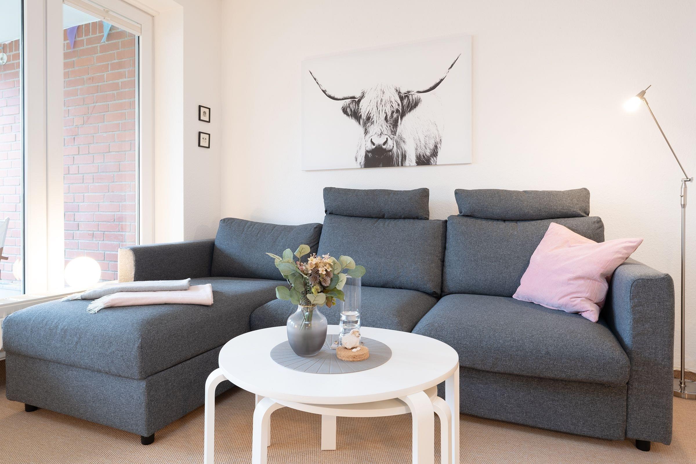 Für entspannte Nächte verwandeln Sie das Sofa in eine kuschelige Schlafstätte (ca. 140x200cm) oder ziehen sich in das große Doppelbett (2x 90x200cm) im angrenzenden Schlafzimmer zurück. Das Tageslichtbad mit Dusche komplettiert die Ausstattung dieser Ferienwohnung.