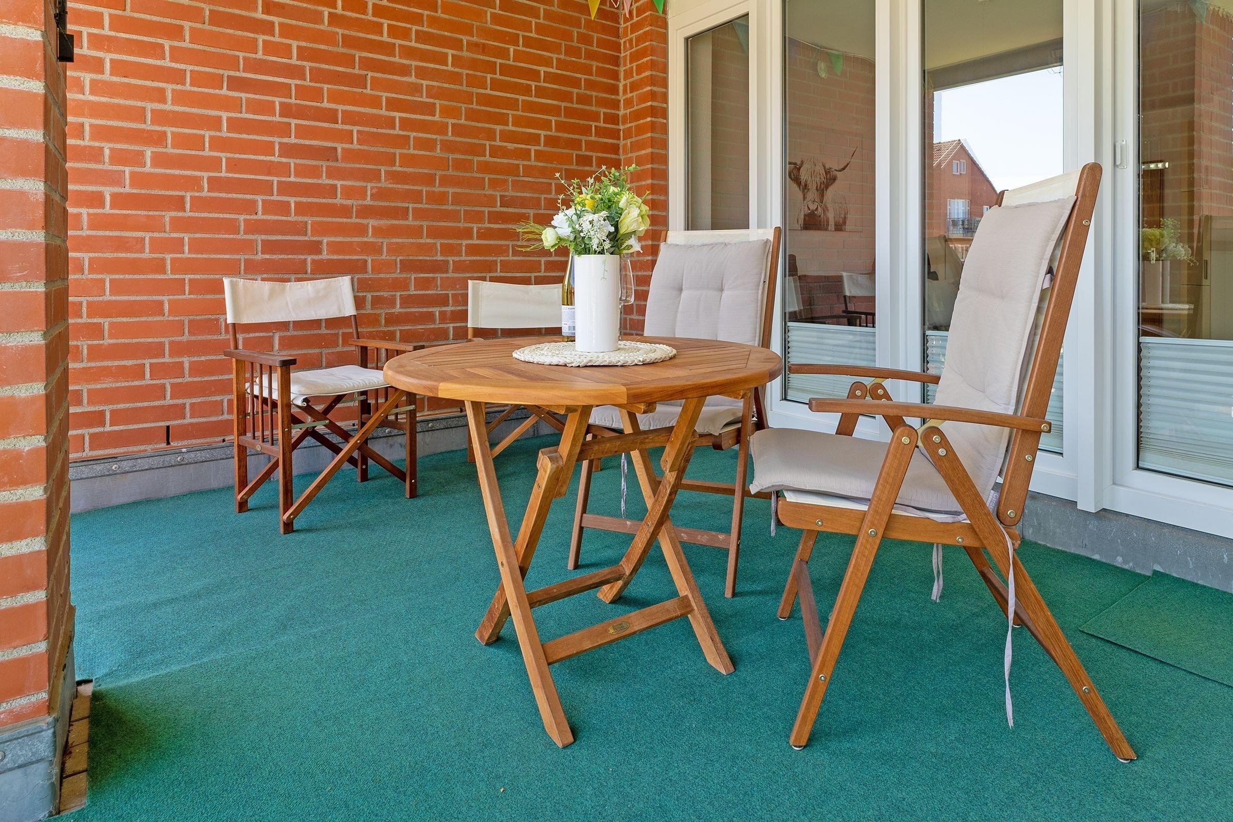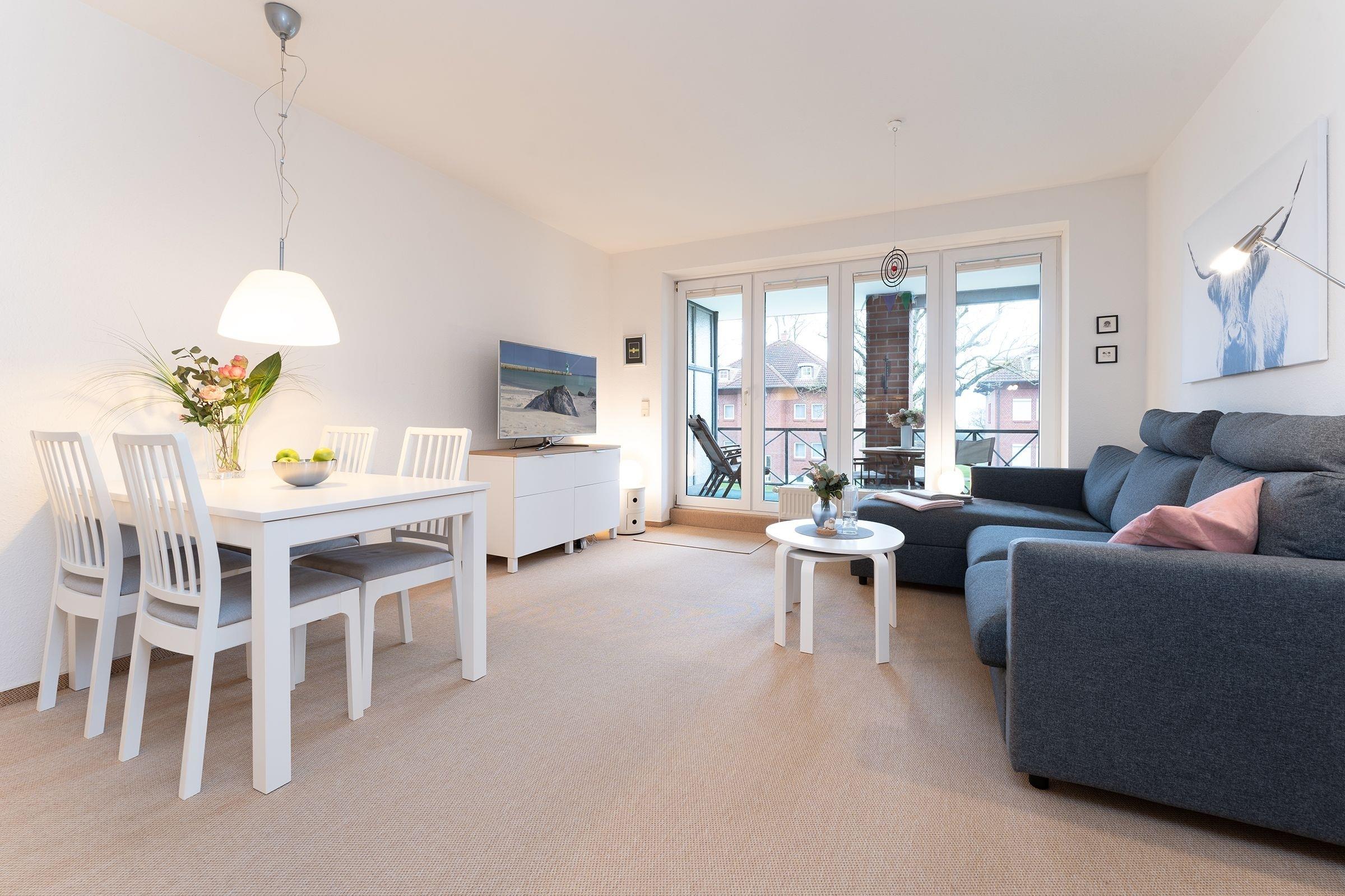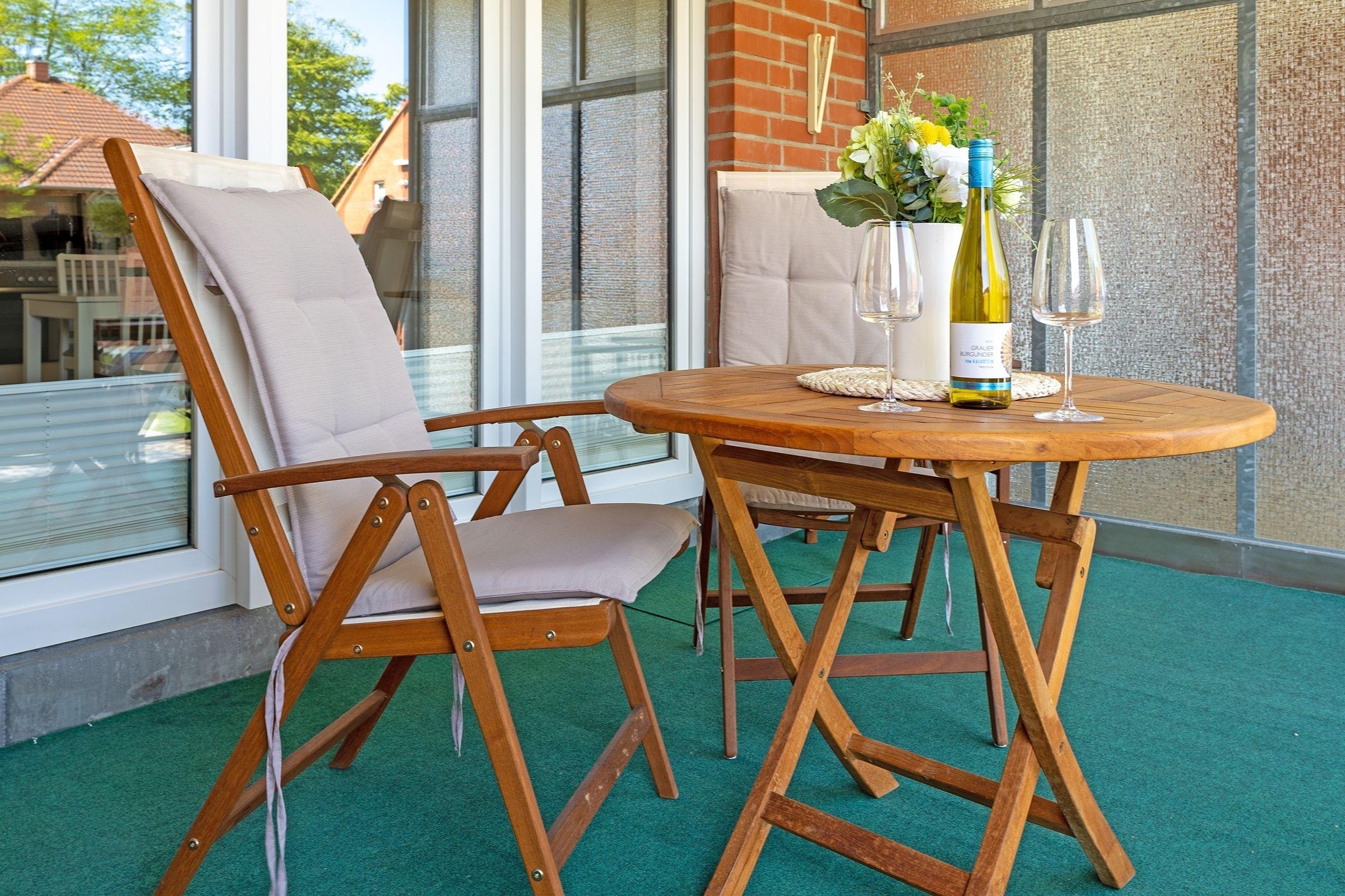 Gemütliche Ferienwohnung Franz mit Balkon und saisonalem Meerblick in Kellenhusen, ideal für Familien nahe der Ostsee.
