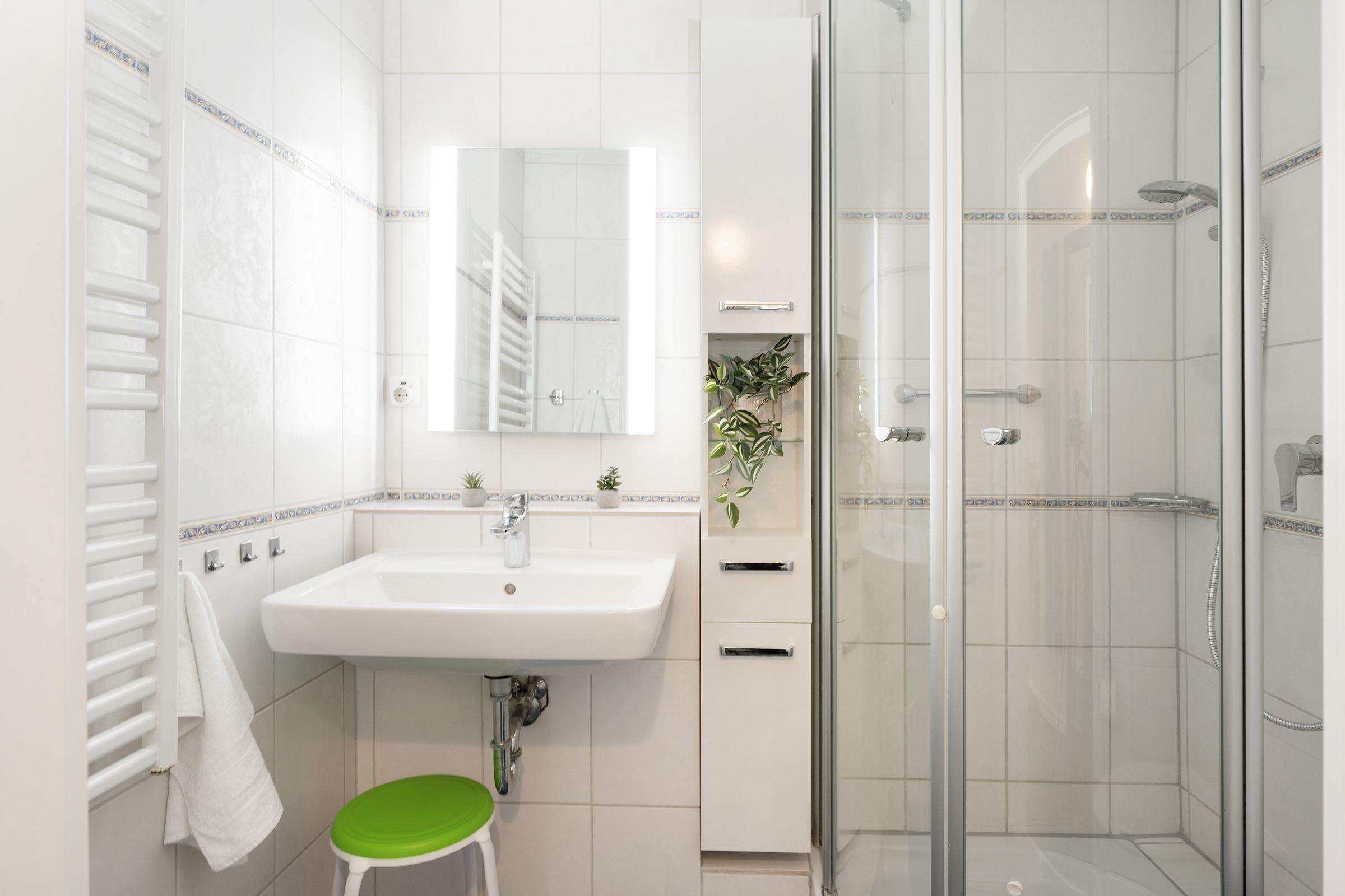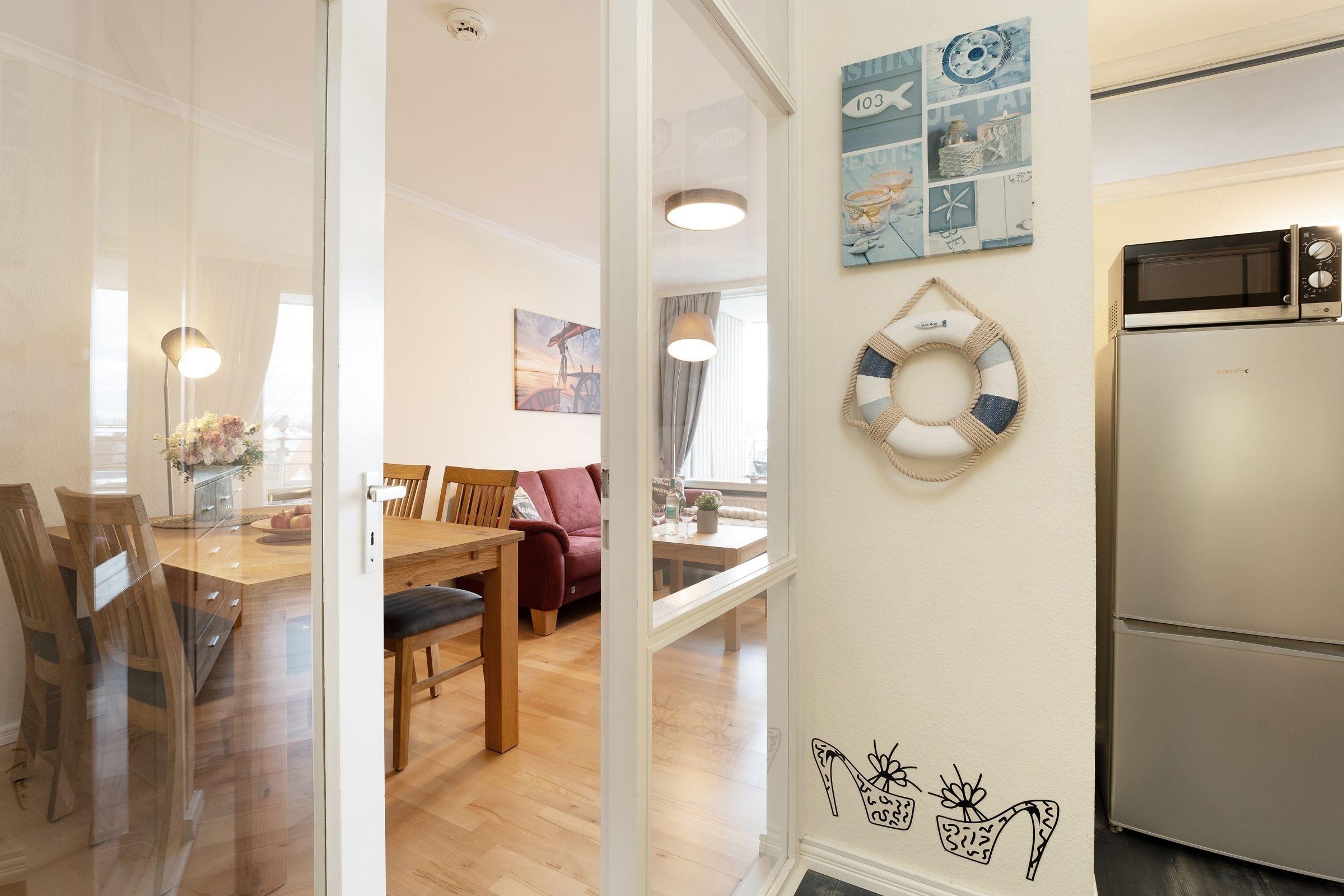 Haben Sie Lust auf Meer? Nur rund 100 Meter vom Ostseestrand entfernt wartet diese schöne Wohnung in den Strandappartements am Leuchtturmweg auf Sie. Machen Sie es sich im geschmackvoll eingerichteten Wohnbereich vor dem TV-Gerät gemütlich. Oder genießen Sie die gute Seeluft auf dem möblierten Balkon. Wie wäre es mit einem Willkommens-Drink? In der separaten Küche mit Geschirrspüler finden Sie sämtliche Annehmlichkeiten, die Sie für Ihre Selbstversorgung im Urlaub brauchen. Nach einem wunderbaren Tag an der Ostsee verspricht das Doppel-Boxspringbett (160x200 cm) im hinteren Bereich des Wohnzimmers angenehme Nachtruhe. Im separaten Schlafzimmer steht ein Boxspringbett (90x200 cm). Verdunkelt wird jeweils mit Gardinen. Das innenliegend Duschbad verspricht einen guten Start in den Tag.