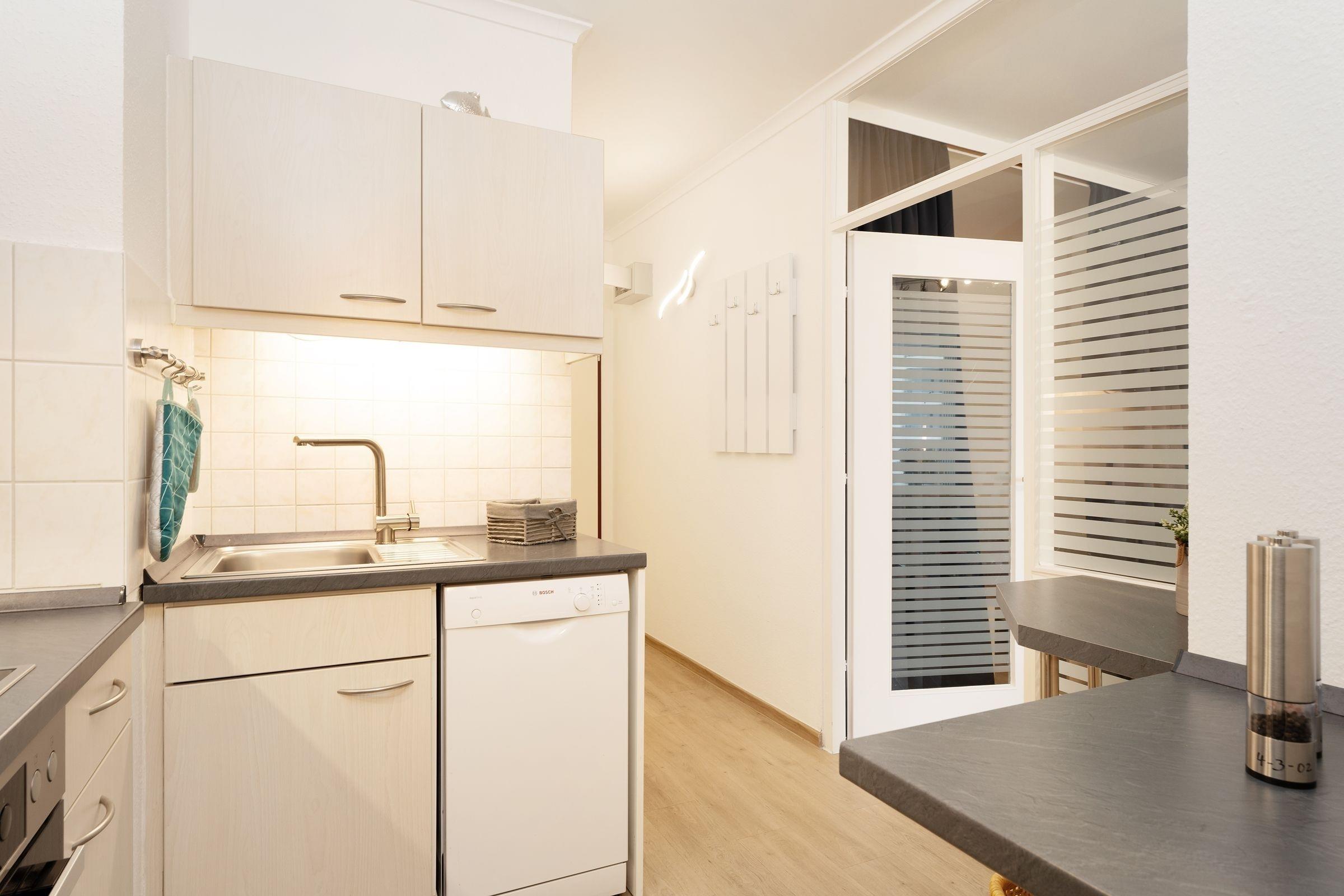 Zu dieser Ferienwohnung gehört kein zugewiesener Stellplatz. Zur gemeinschaftlichen Nutzung stehen Ihnen Waschmaschine und Trockner (gegen Gebühr) in der Anlage zur Verfügung. WLAN ist inklusive.