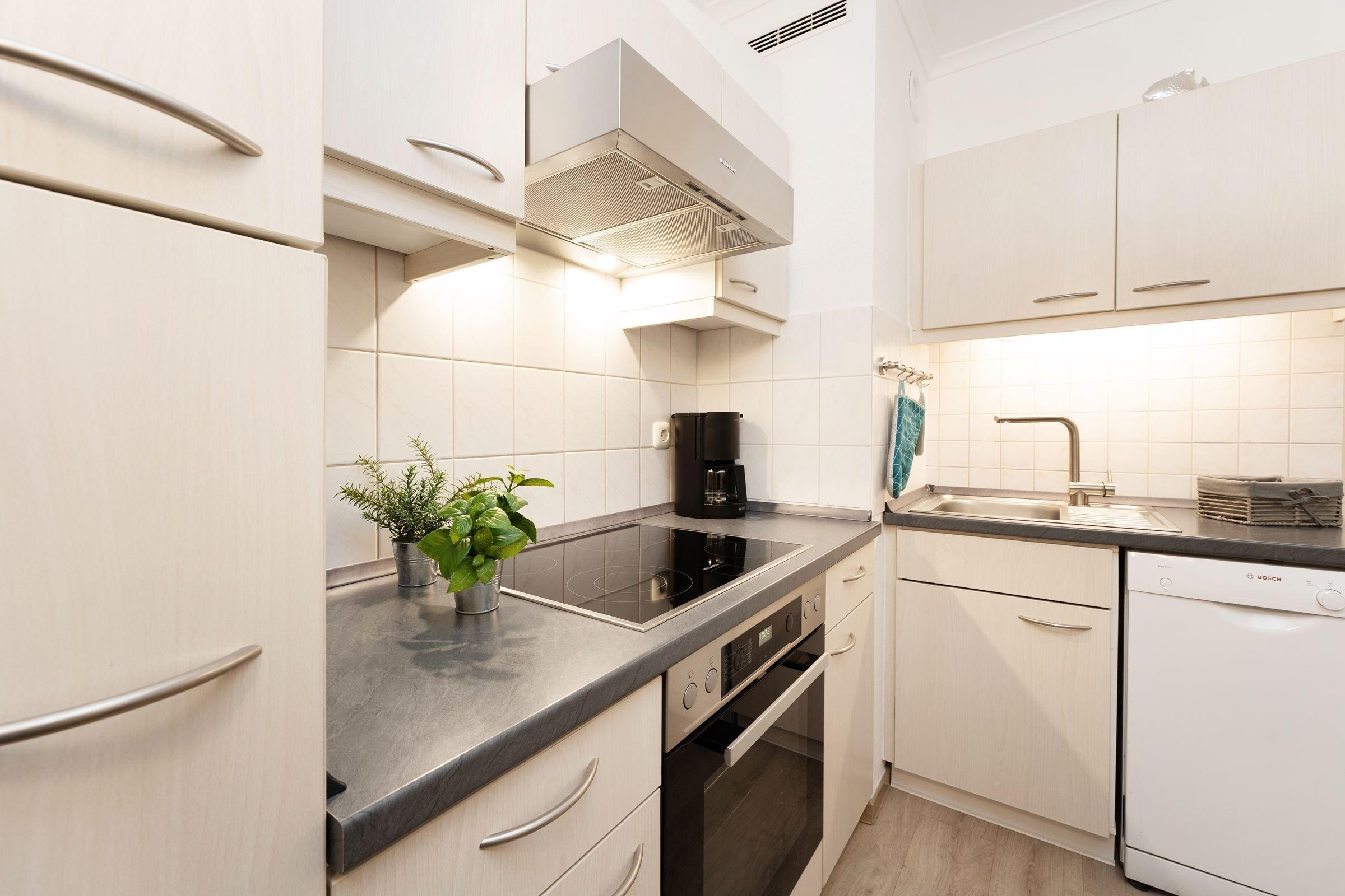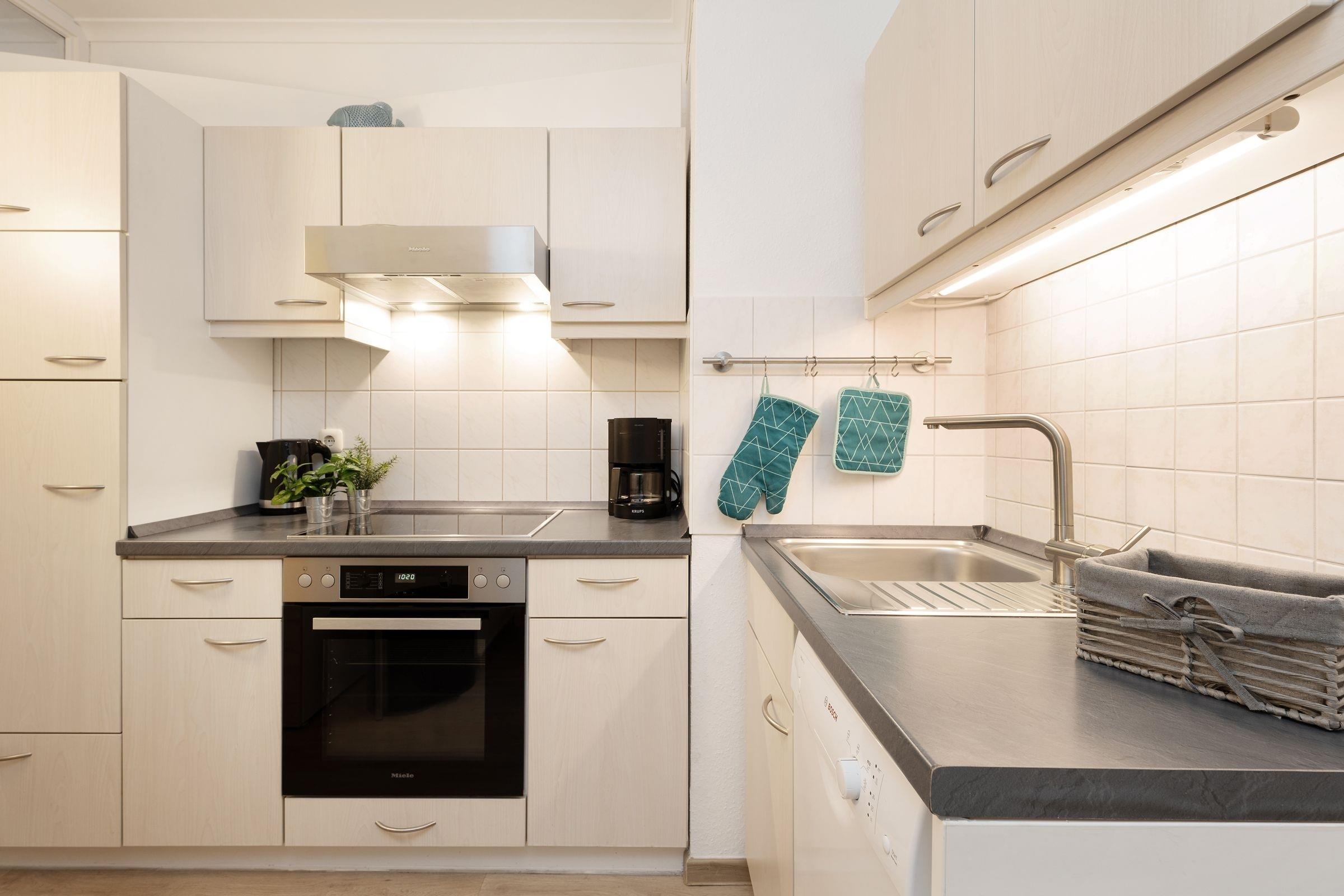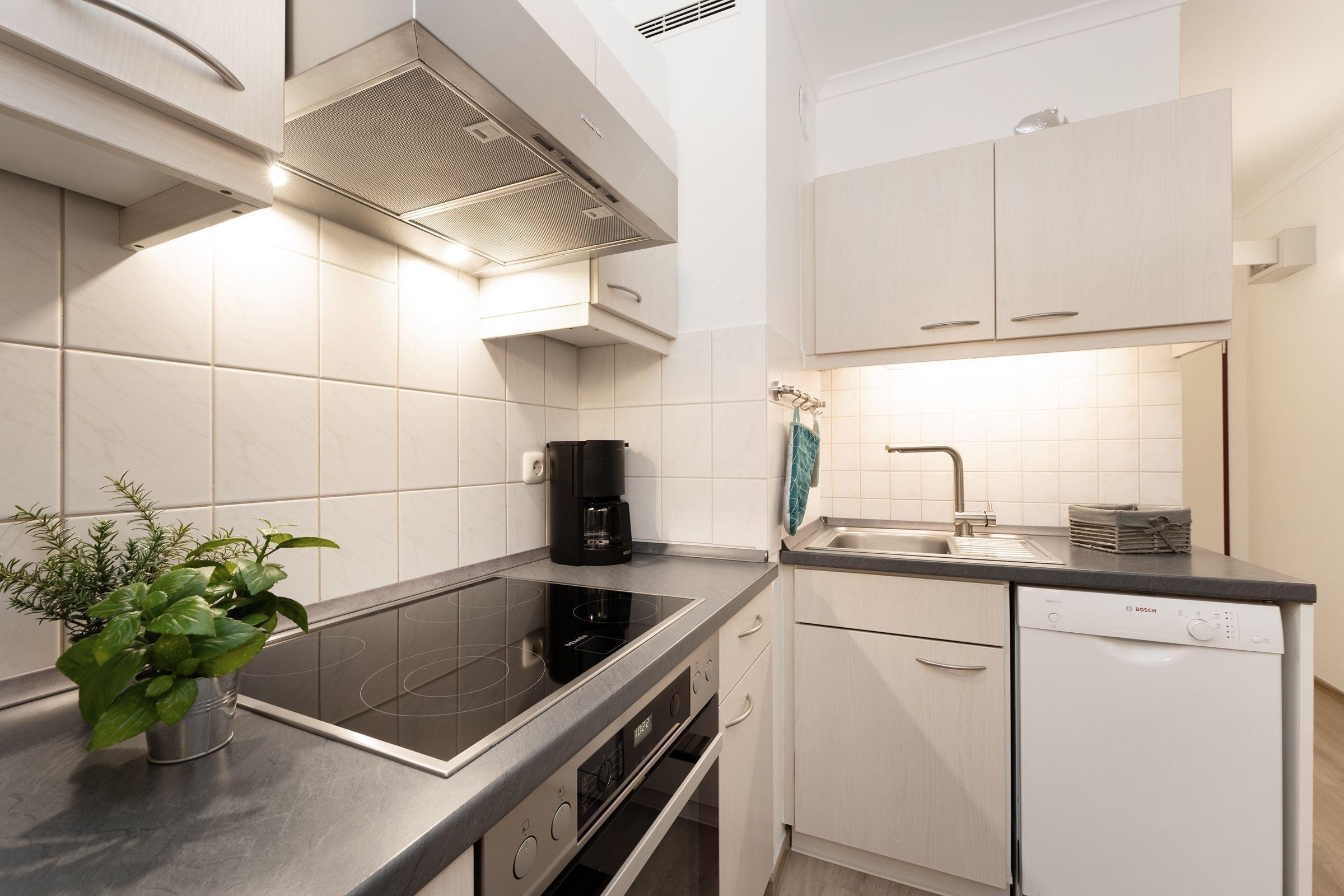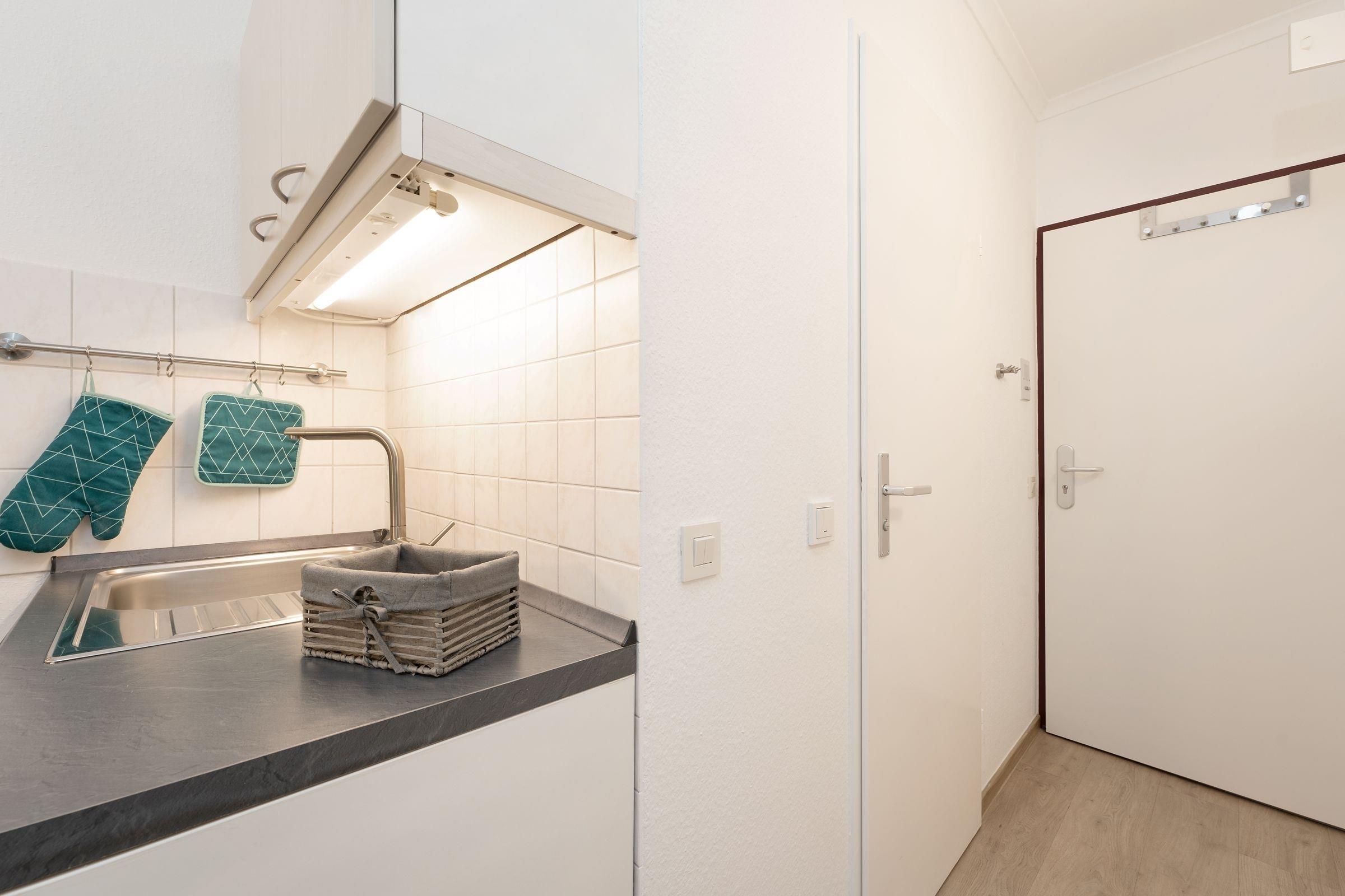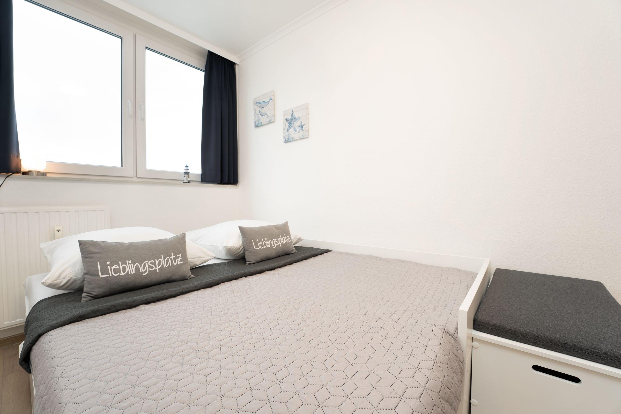 Diese schöne Ferienwohnung liegt nur rund 100 Meter vom Ostseestrand entfernt und befindet sich in den Strandappartements am Leuchtturmweg. Wenn Sie den Wohnbereich betreten, werden Sie von der geschmackvollen Einrichtung sowie der durchdachten Aufteilung begeistert sein: Hier finden Sie eine bequeme Sitzecke zum Entspannen sowie eine schicke Essecke. Die gute Seeluft können Sie auf dem möblierten Balkon genießen. Im hinteren Bereich des Zimmers stehen zwei Einzelbetten (je 90x200 cm), die mit einer Gardine abgetrennt werden können. Im separaten Schlafzimmer befindet sich ein Einzelbett (80x200 cm). Die separate Küche ist gut ausgestattet und dürfte jedem Hobby-Koch ein Lächeln ins Gesicht zaubern. Das innenliegende Duschbad ist hell gefliest.