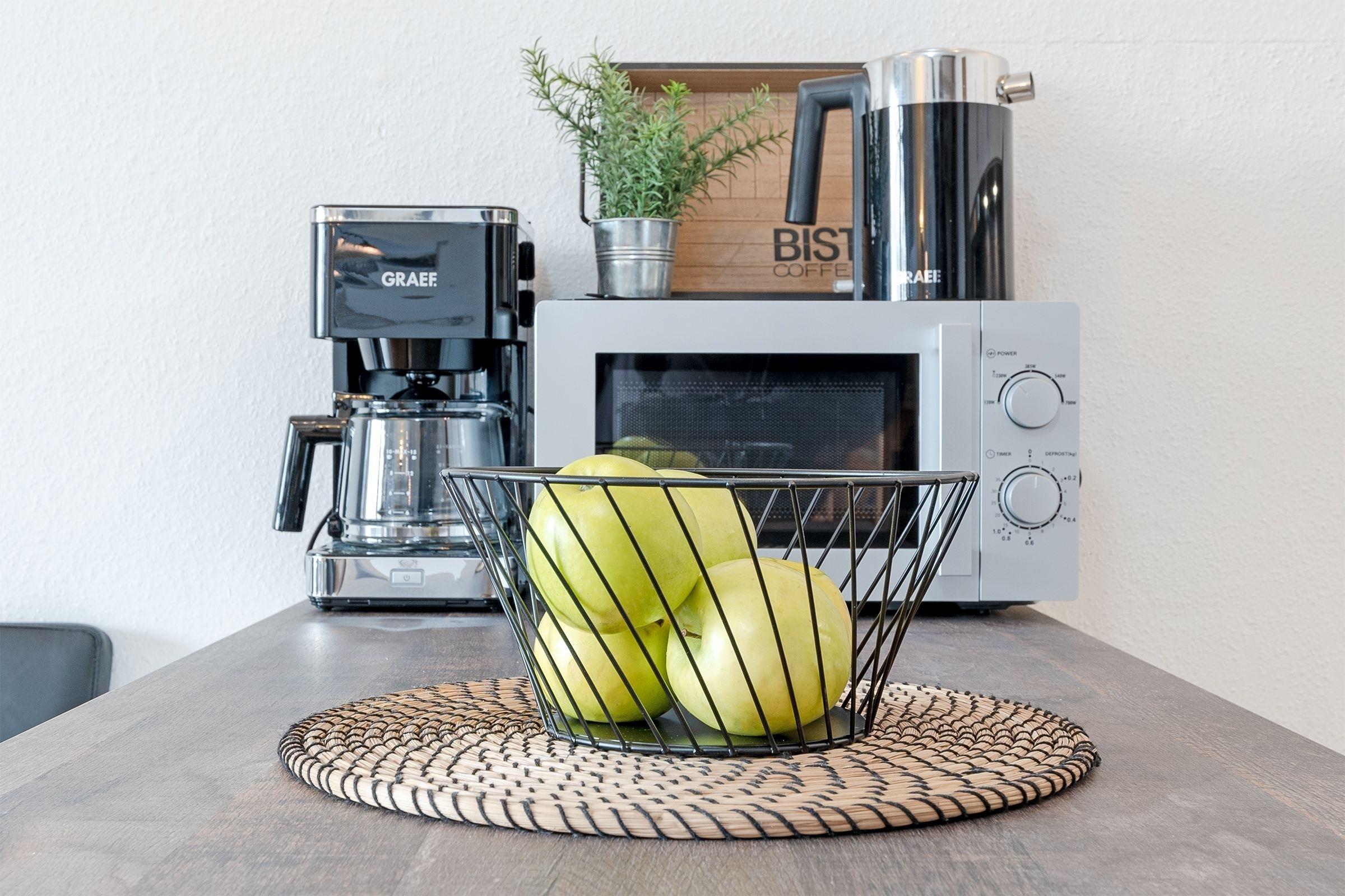 Zwischen Wald und Wellen – die Ferienwohnung Walblick in der Wohnanlage im Schützenweg ist rund 200 Meter von den Ostseewellen entfern. Die liebevoll ausgesuchte Einrichtung sorgt für Behaglichkeit. Das kuschelige Sofa lädt zum Entspannen ein – genauso der möblierte Balkon. Auch im Gemeinschaftsgarten können Sie Ihre Auszeit genießen. Die gute Ausstattung der offenen Küche mit Senseo-Maschine wird Sie erfreuen. Ein Tresen fungiert als Raumteiler, sodass Sie gemütlich am Esstisch speisen können. Nach einem schönen Urlaubstag nächtigen Sie im bequemen Doppelbett (140x190 cm) im Schlafzimmer. Zudem lässt sich die Couch im Wohnzimmer in ein Bett (120x195 cm) verwandeln. Das Bad verfügt über eine Wanne.