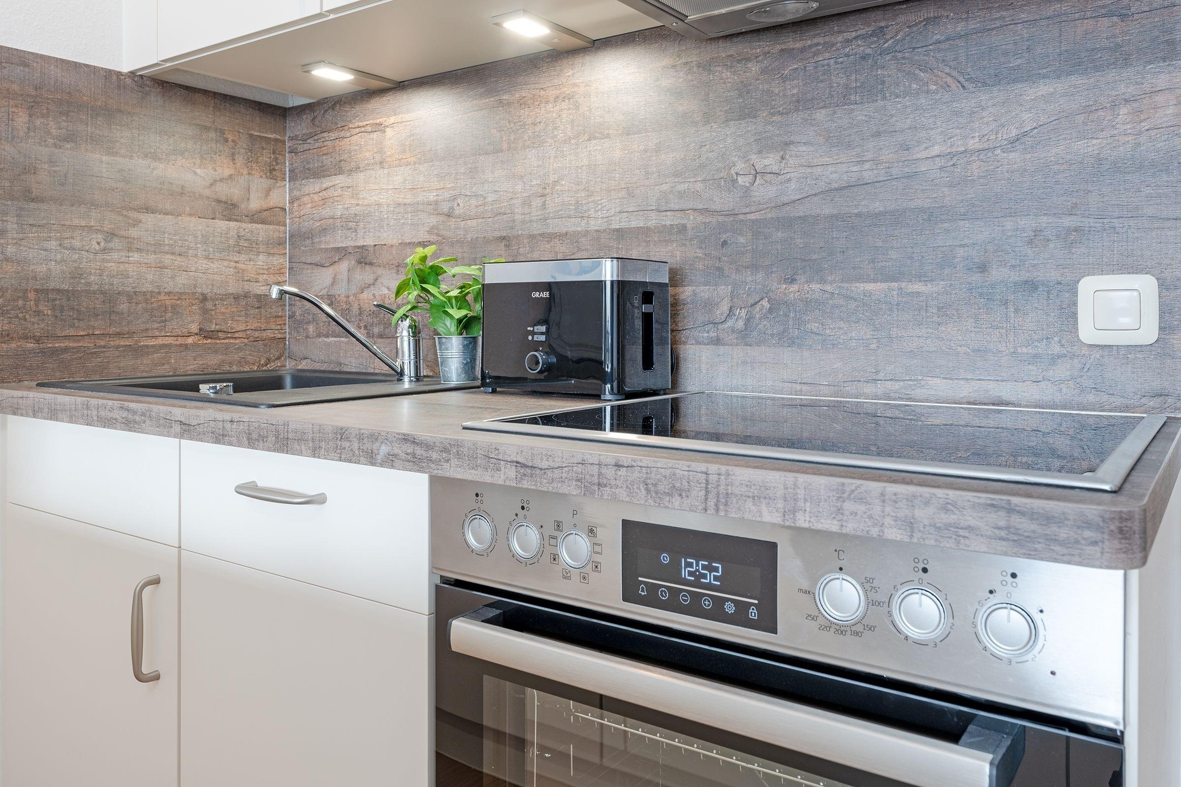 Bitte beachten Sie: Die Wohnung verfügt über eine Ebene. Der obere Bereich (Treppe im Wohnzimmer) ist nicht zugänglich.